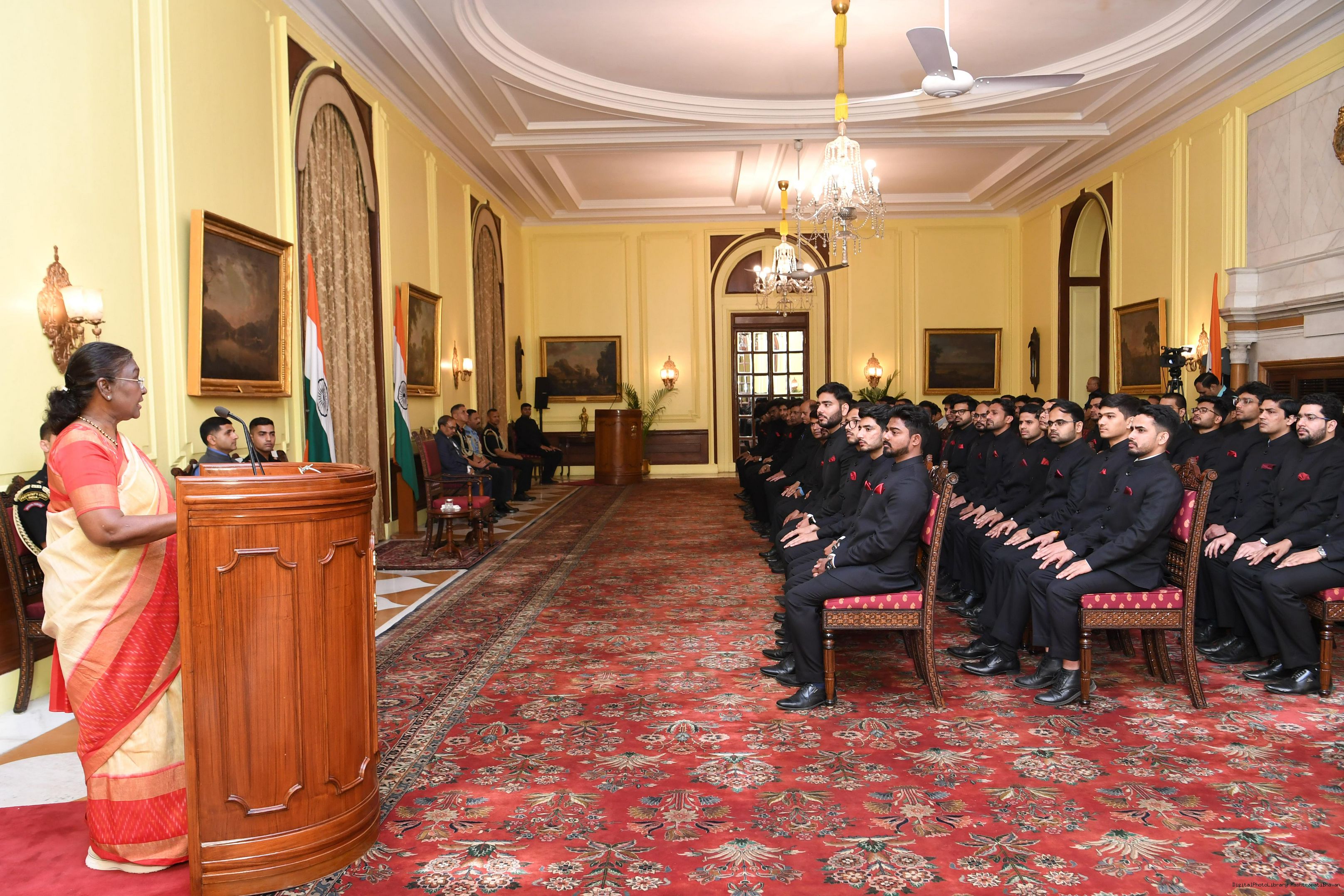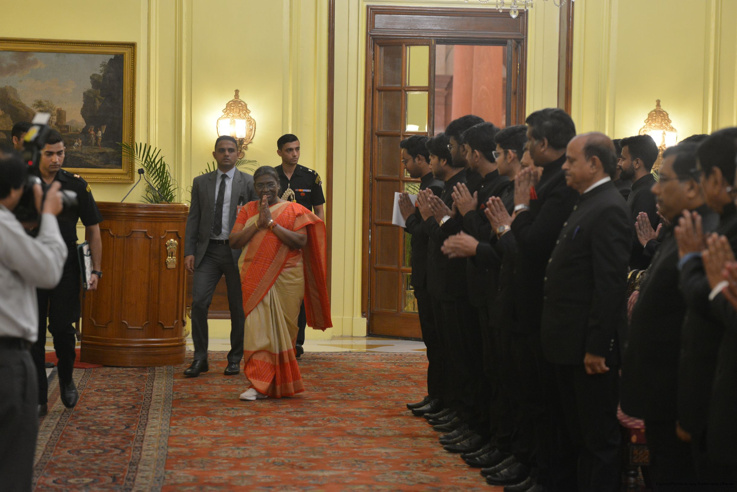 | Caption: | A group of Assistant Executive Engineers of CPWD (2022 and 2023 batches) called on the President of India, Smt Droupadi Murmu at Rashtrapati Bhavan on March 28, 2024. |