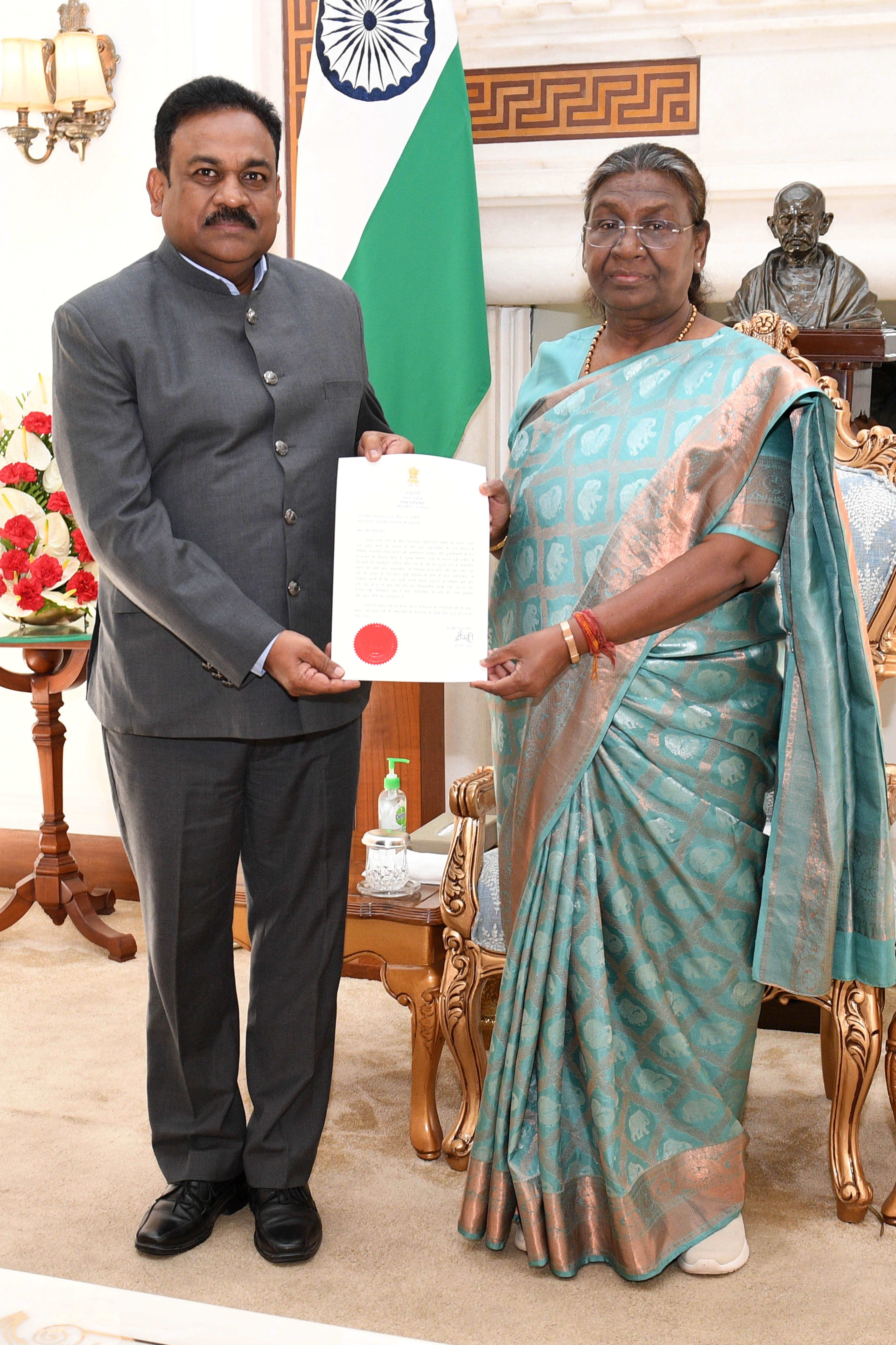 | Caption: | The Ambassador-desginate of India to the Islamic Republic of Mauritania, Shri Naresh Kumar meeting with the President of India Smt Droupadi Murmu at Rashtrapati Bhavan on April 2, 2024. |
