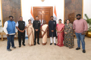| Caption: | Shri Chirag Chandrashekhar Shetty, Shri Satwik Sairaj Rankireddy (Badminton Players Major Dhyan Chand Khel Ratna Awardees, 2023) along with others meeting with the President of India Smt Droupadi Murmu at Rashtrapati Bhavan on April 3, 2024. |