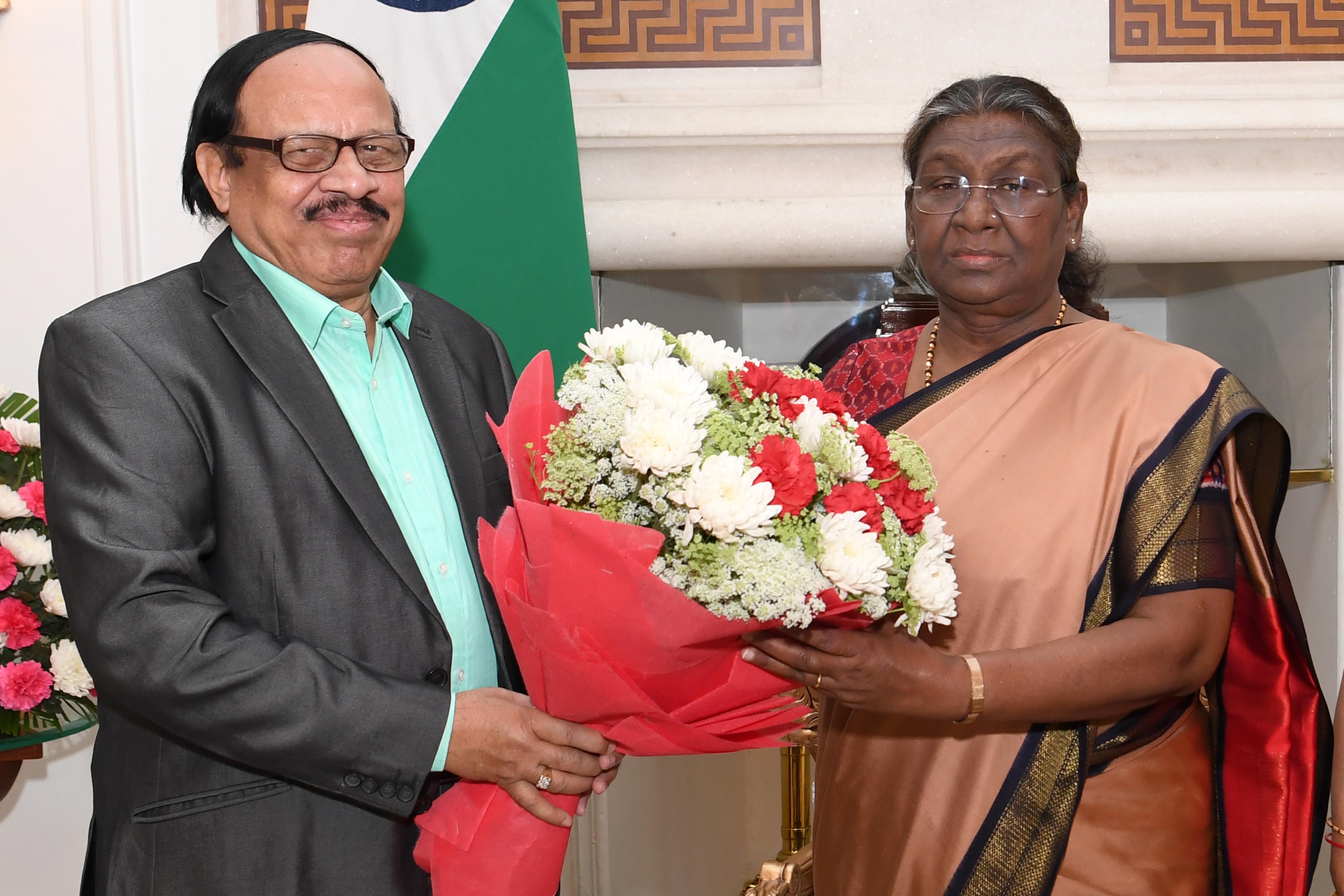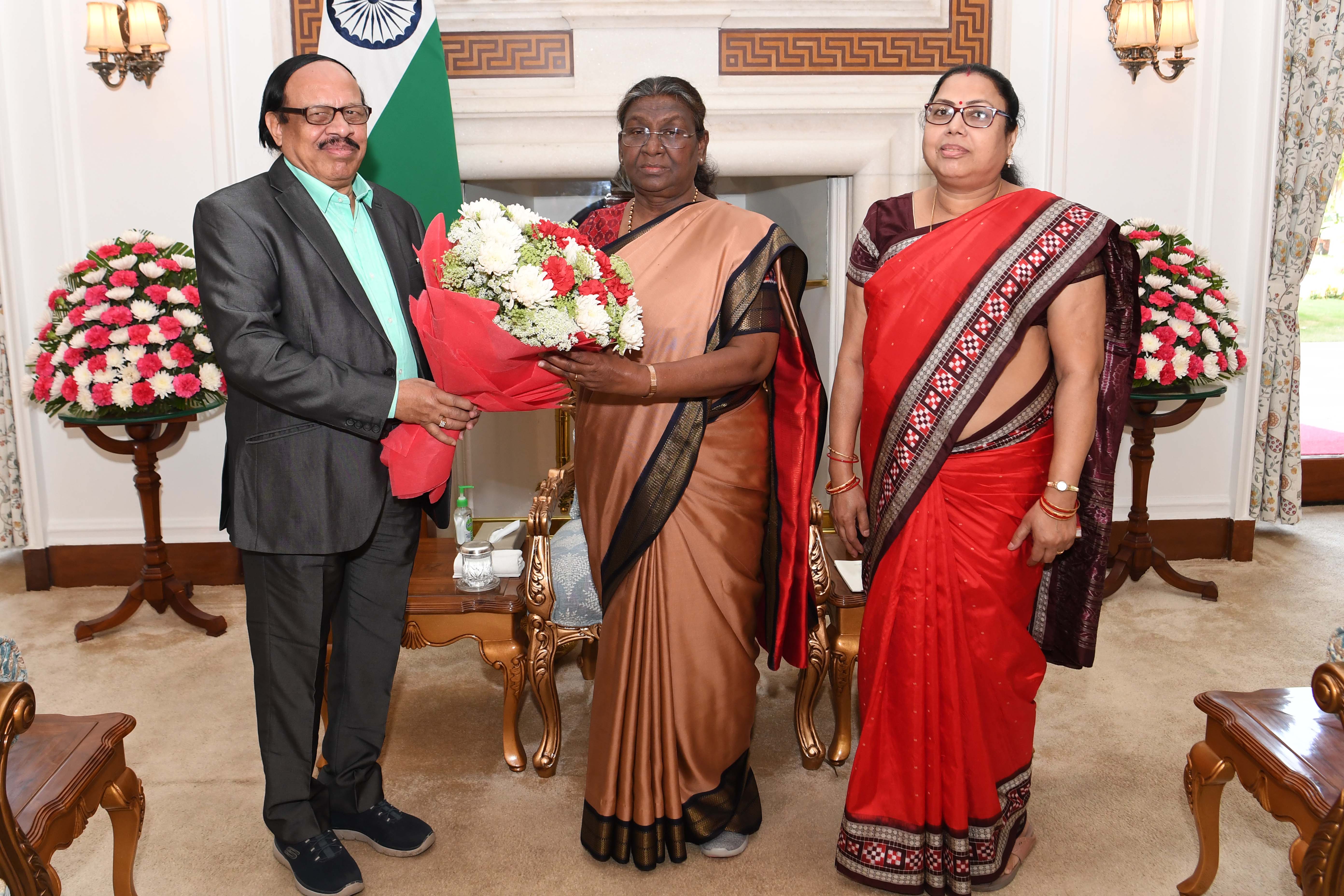| Caption: | Prof. Udayanath Sahoo, Chairprofessor of Adikabi Sarala Das Chair of Odia Studies, Centre of Indian Languages, School of Language, Literature and Culture Studies, Jawaharlal Nahru University, New Delhi along with his wife Smt Sakuntala Sahoo meeting with the President of India Smt Droupadi Murmu at Rashtrapati Bhavan on April 8, 2024. |