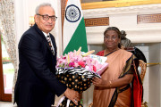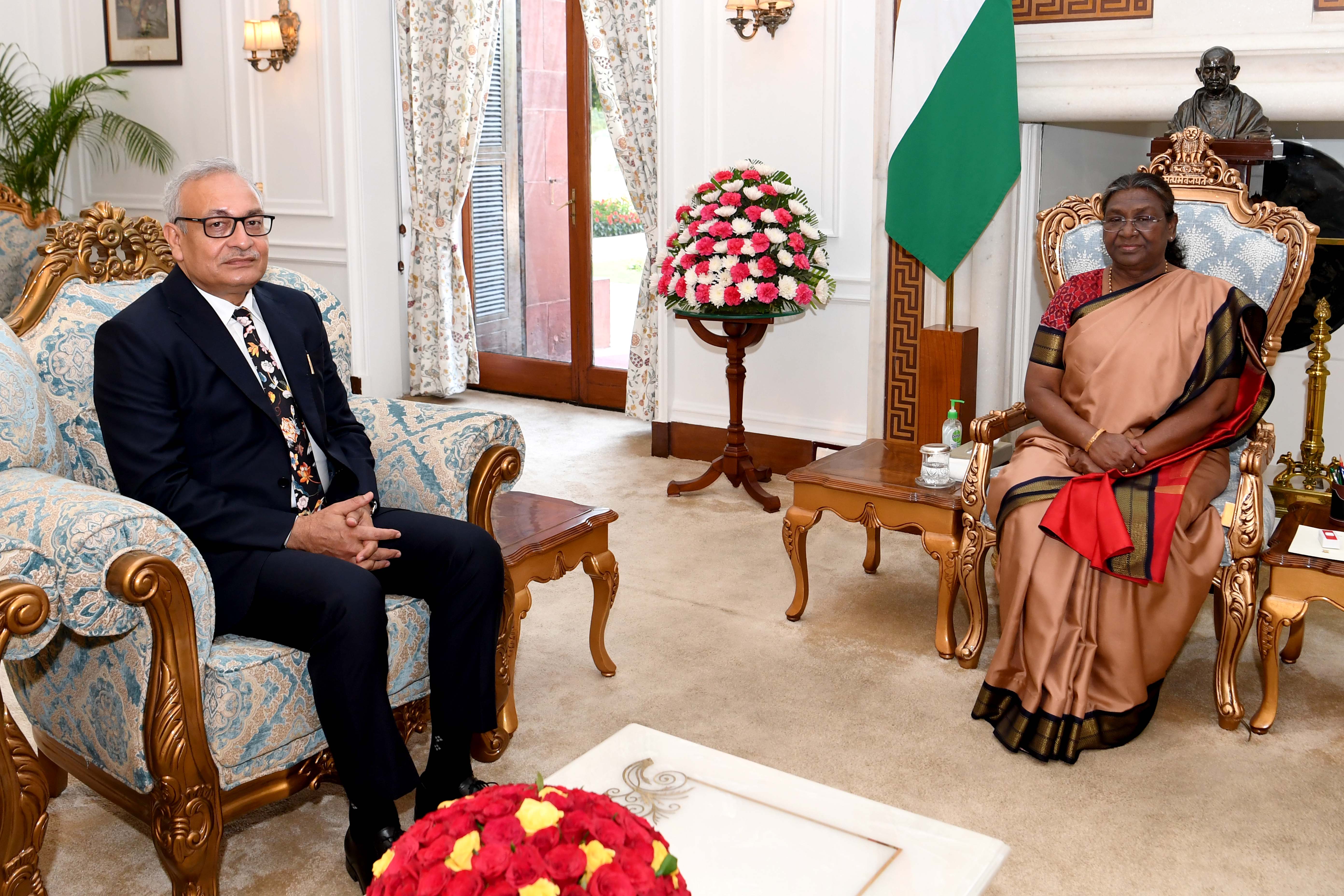 | Caption: | Shri Dependra Pathak, IPS(1990 Batch), Special Commissioner of Police, Protective Security Division meeting with the President of India Smt Droupadi Murmu at Rashtrapati Bhavan on April 8, 2024. |