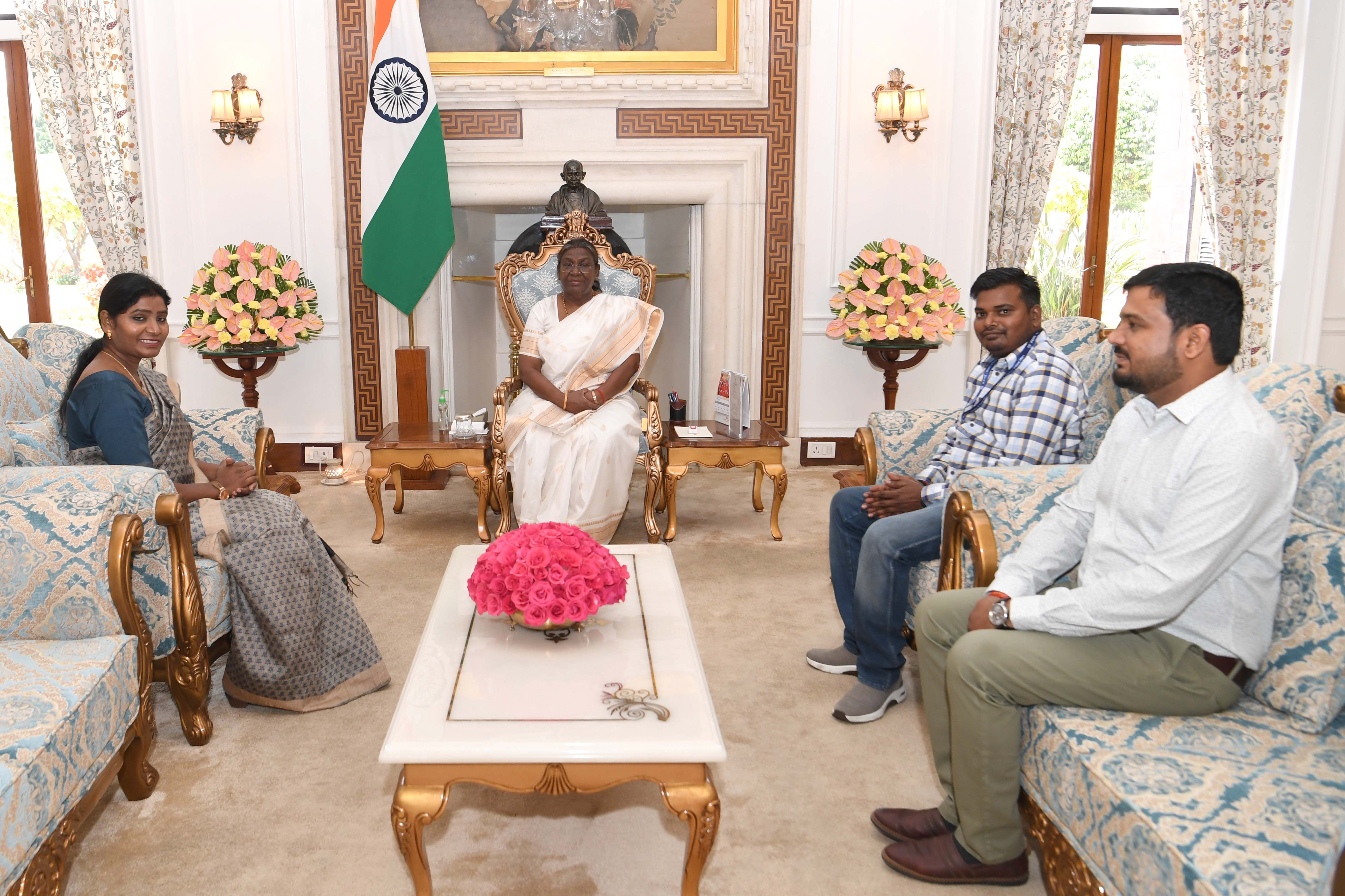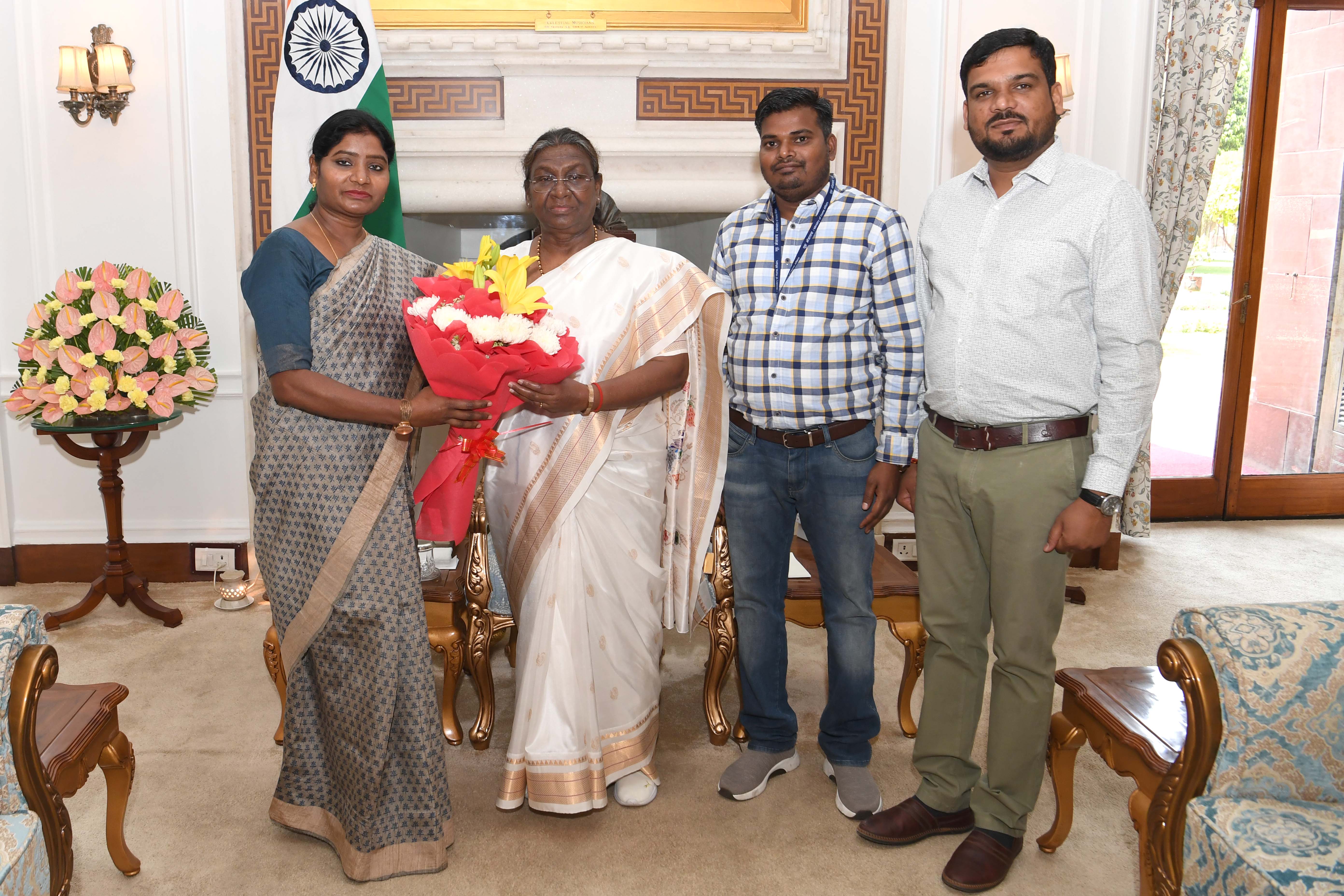 | Caption: | Dr. Asha Lakra, Member, National Commission for Scheduled Tribes along with others meeting with the President of India Smt Droupadi Murmu at Rashtrapati Bhavan on April 10, 2024. |