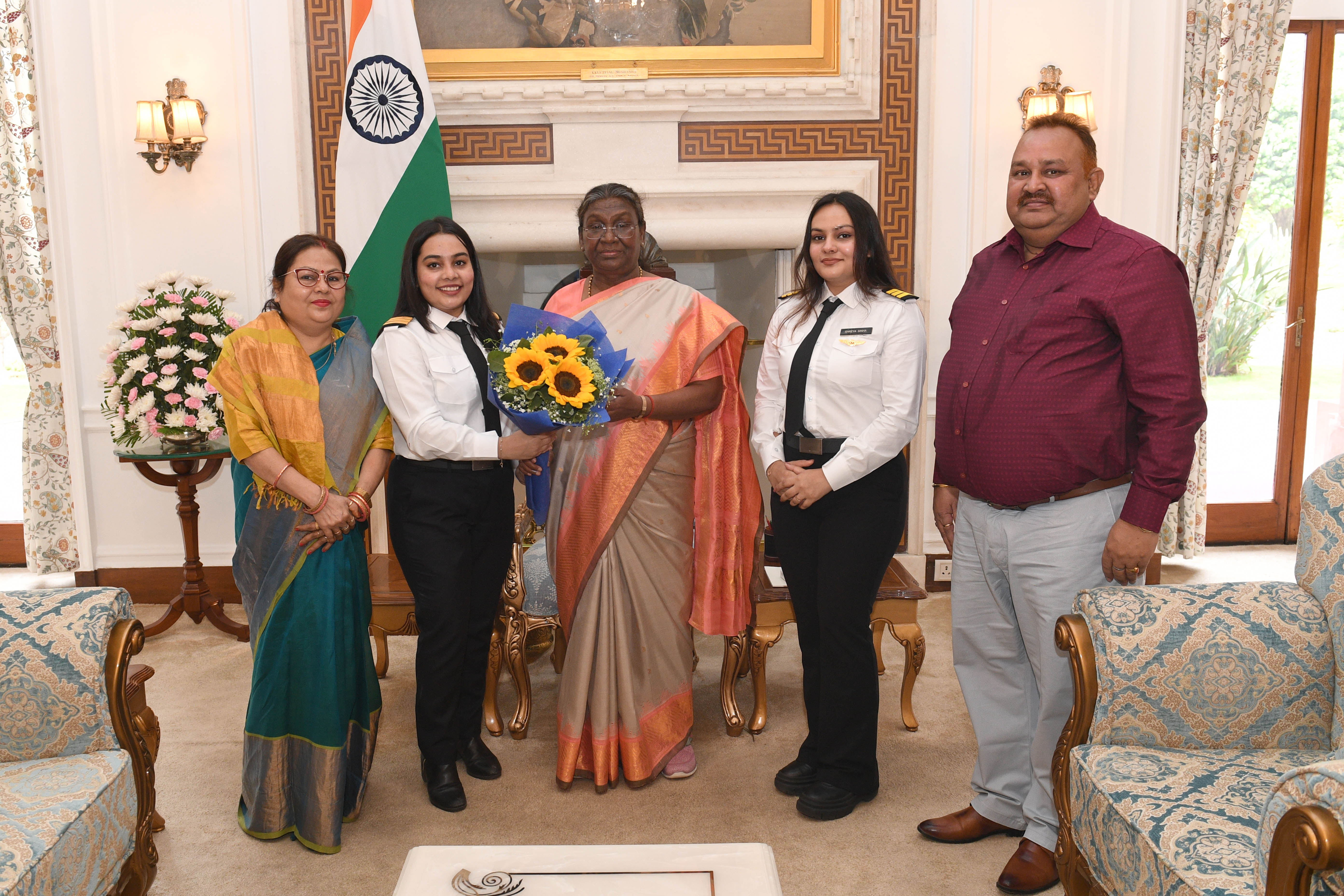 | Caption: | Captain Surendra Prasad Sinha, Director Operations, Civil Aviation Department, Govt. of Jharkhand along with others meeting with the President of India Smt Droupadi Murmu at Rashtrapati Bhavan on April 15, 2024. |