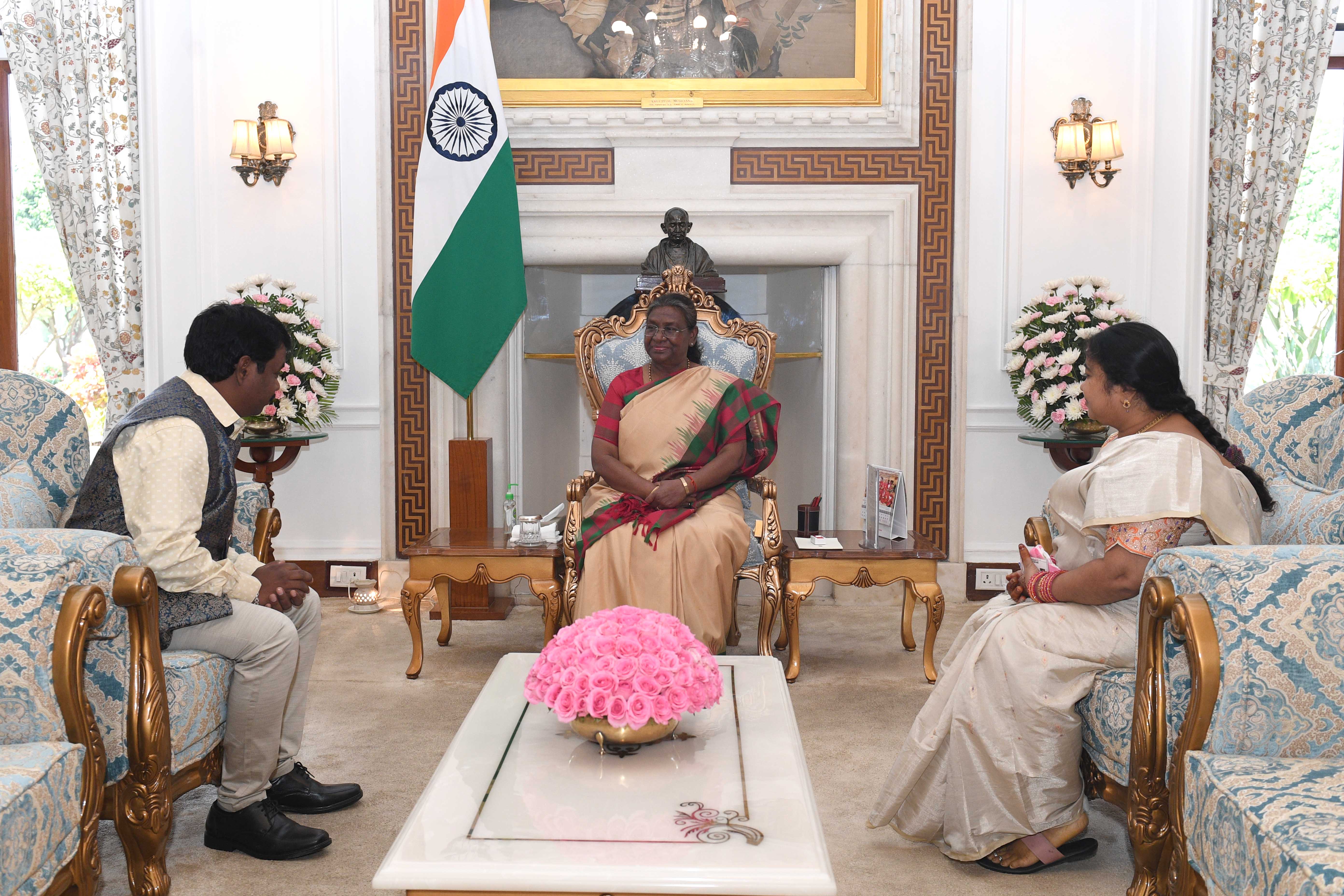 | Caption: | Shri Chenna Sarat Babu, Advocate, Supreme Court of India along with his wife Smt. Chenna Karuna meeting with the President of India Smt Droupadi Murmu at Rashtrapati Bhavan on April 16, 2024. |