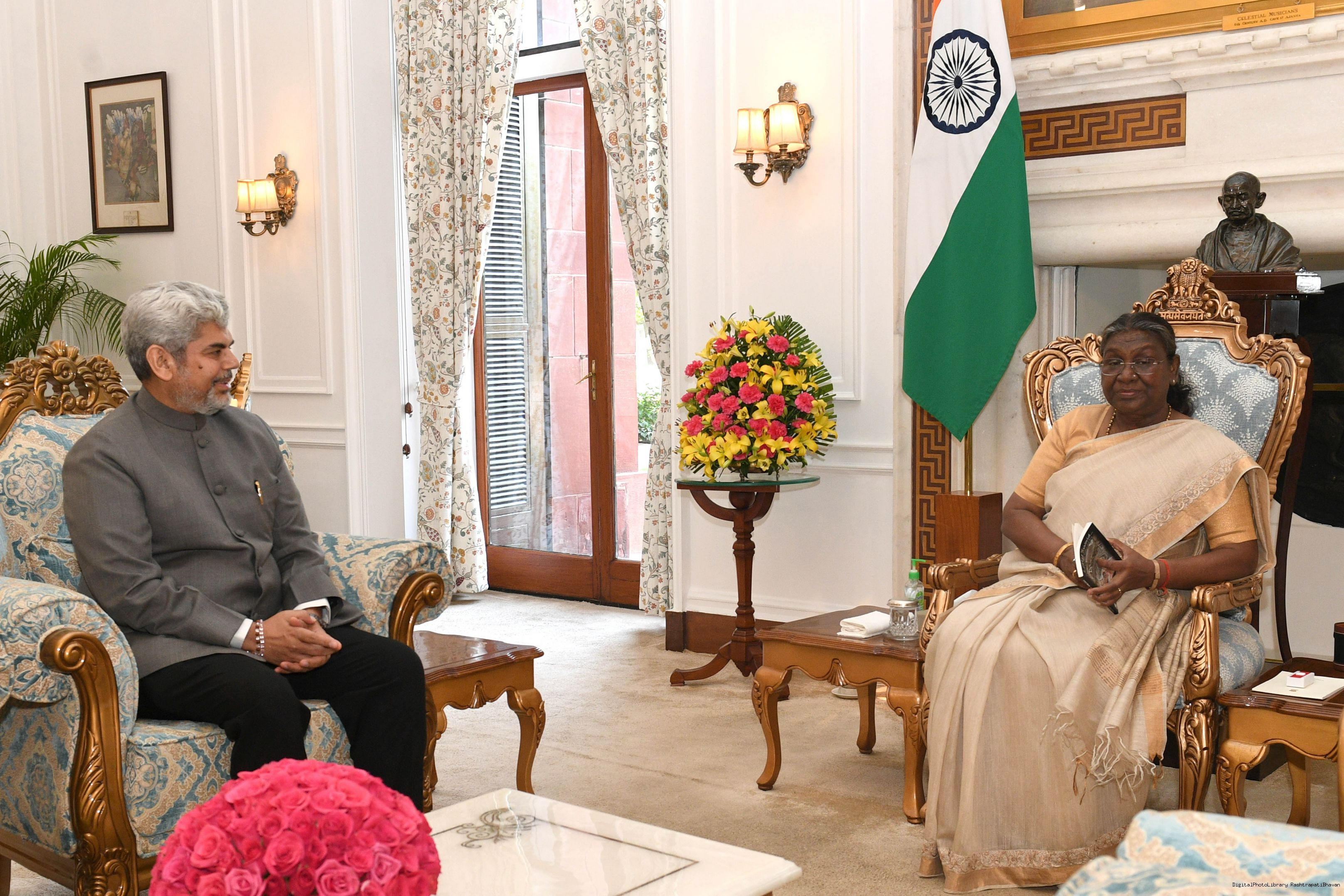 | Caption: | Shri Sheel Vardhan Singh, Member, Union Public Service Commission (UPSC) meeting with the President of India Smt Droupadi Murmu at Rashtrapati Bhavan on April 19, 2024. |