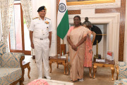 | Caption: | Admiral R Hari Kumar, Chief of the Naval Staff meeting with the President of India Smt Droupadi Murmu at Rashtrapati Bhavan on April 29, 2024. |