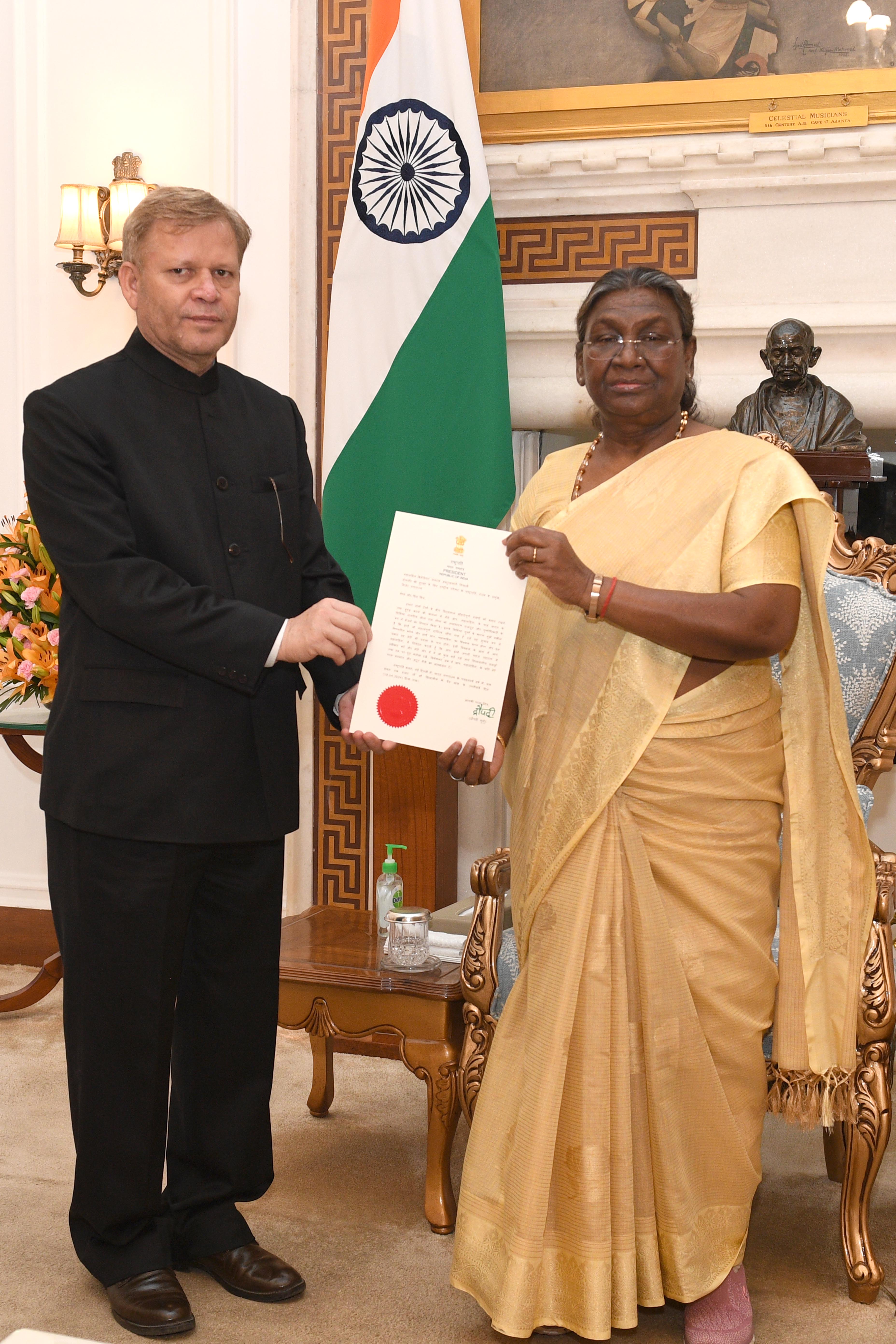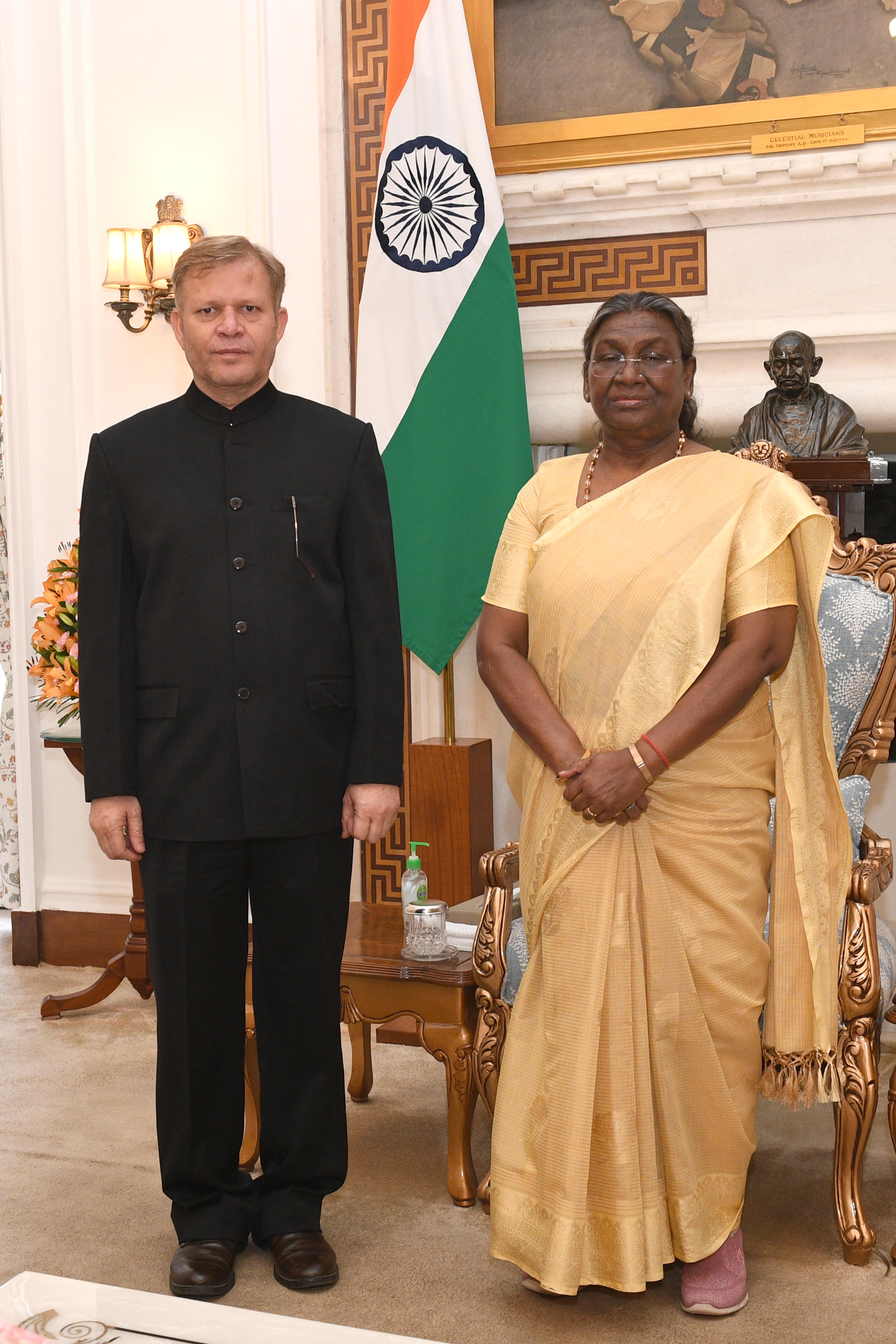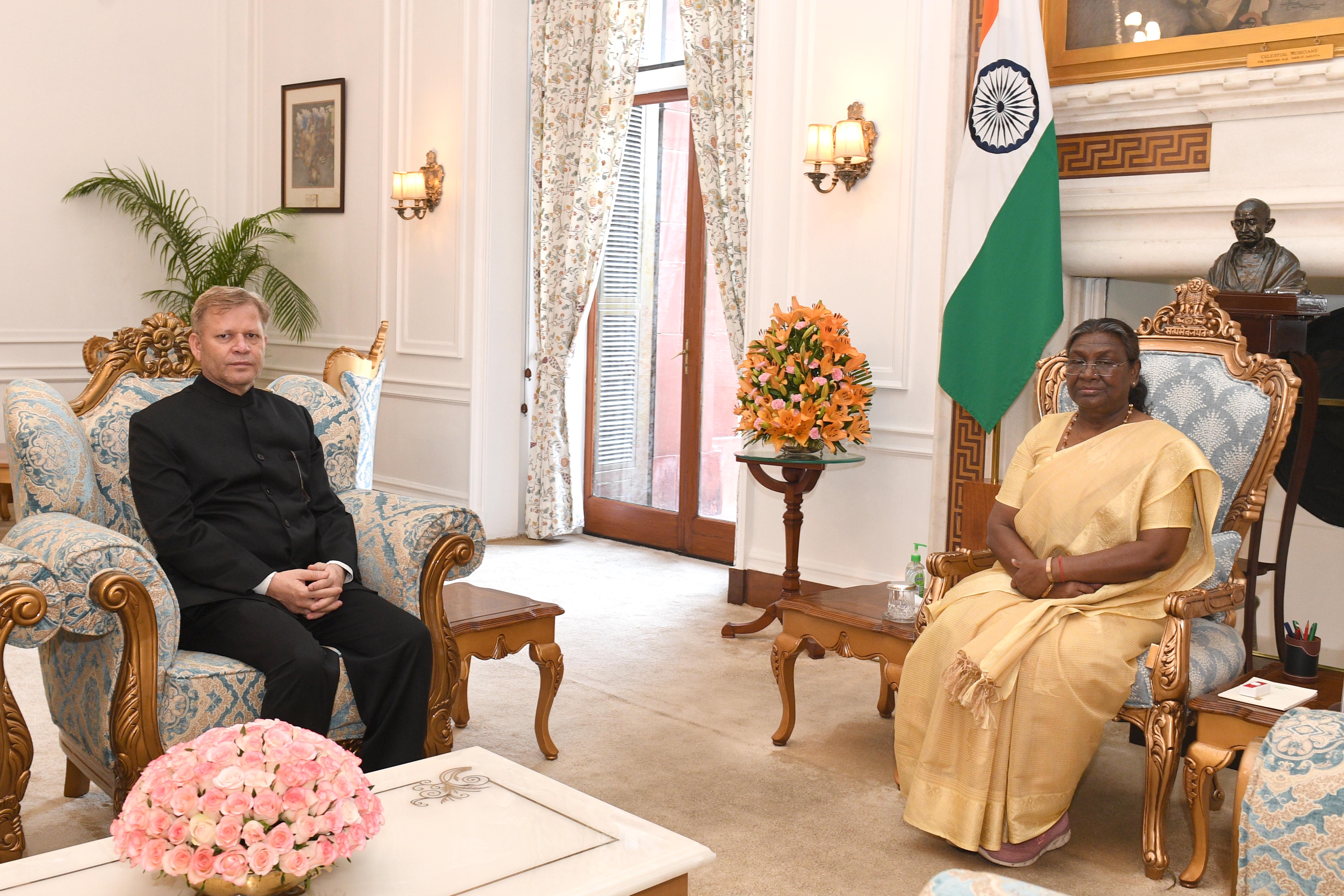 | Caption: | The Ambassador-designate of India to the Republic of Niger, Shri Sita Ram Meena meeting with the President of India Smt Droupadi Murmu at Rashtrapati Bhavan on April 30, 2024. |
