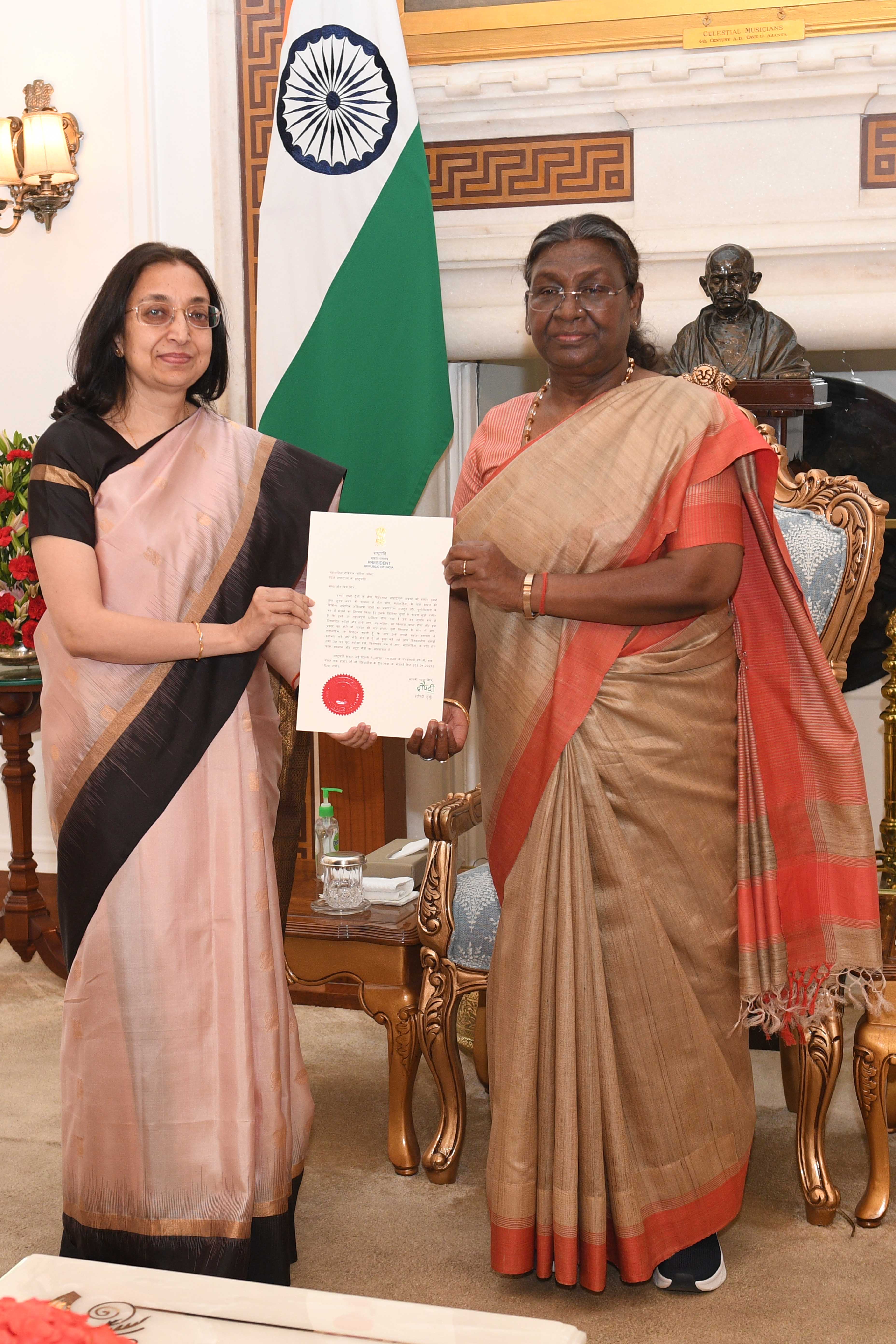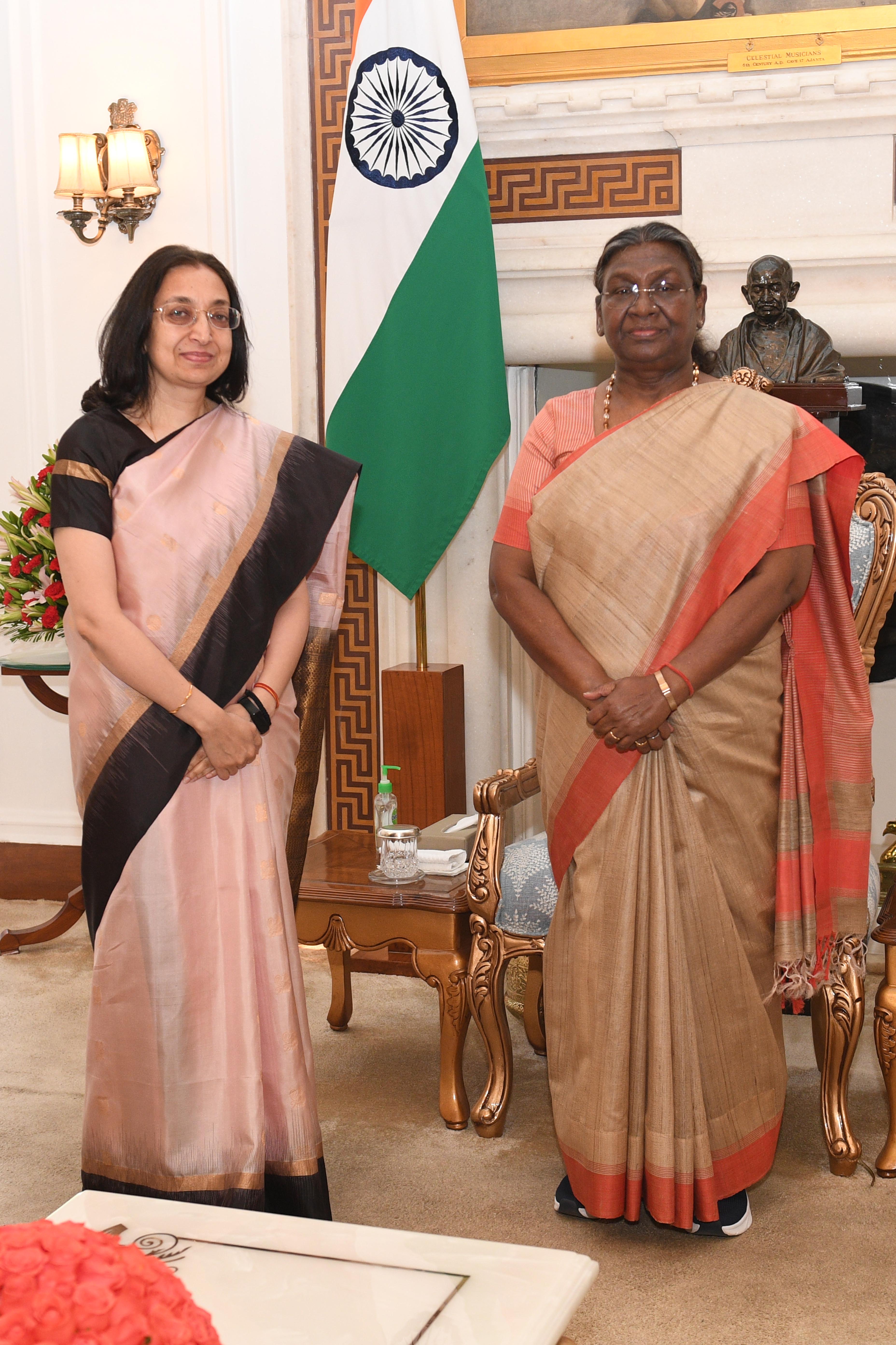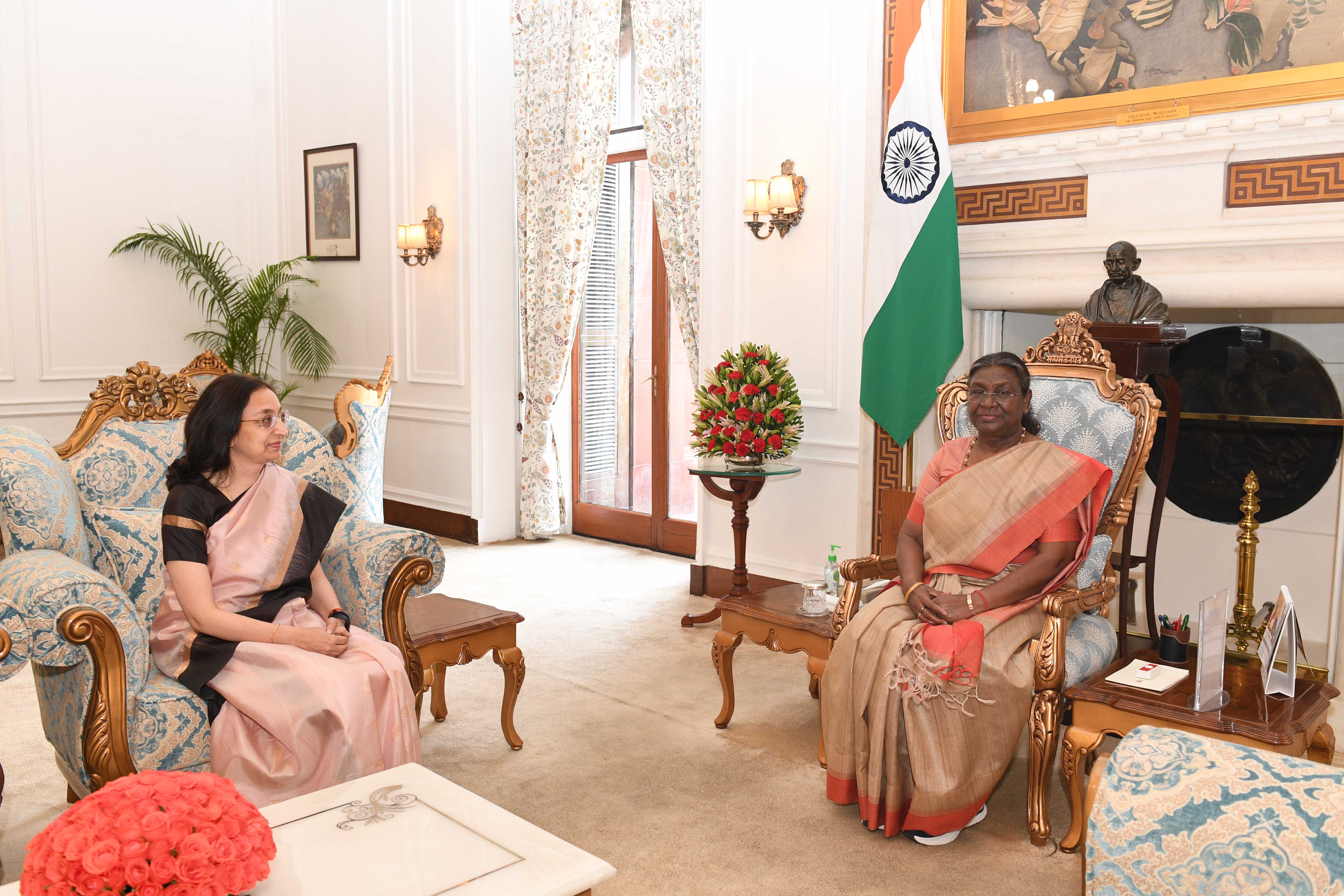 | Caption: | The Ambassador-designate of India to the Republic of Chile, Smt. Abhilasha Joshi meeting with the President of India Smt Droupadi Murmu at Rashtrapati Bhavan on May 03, 2024. |