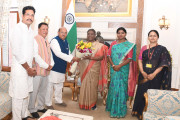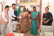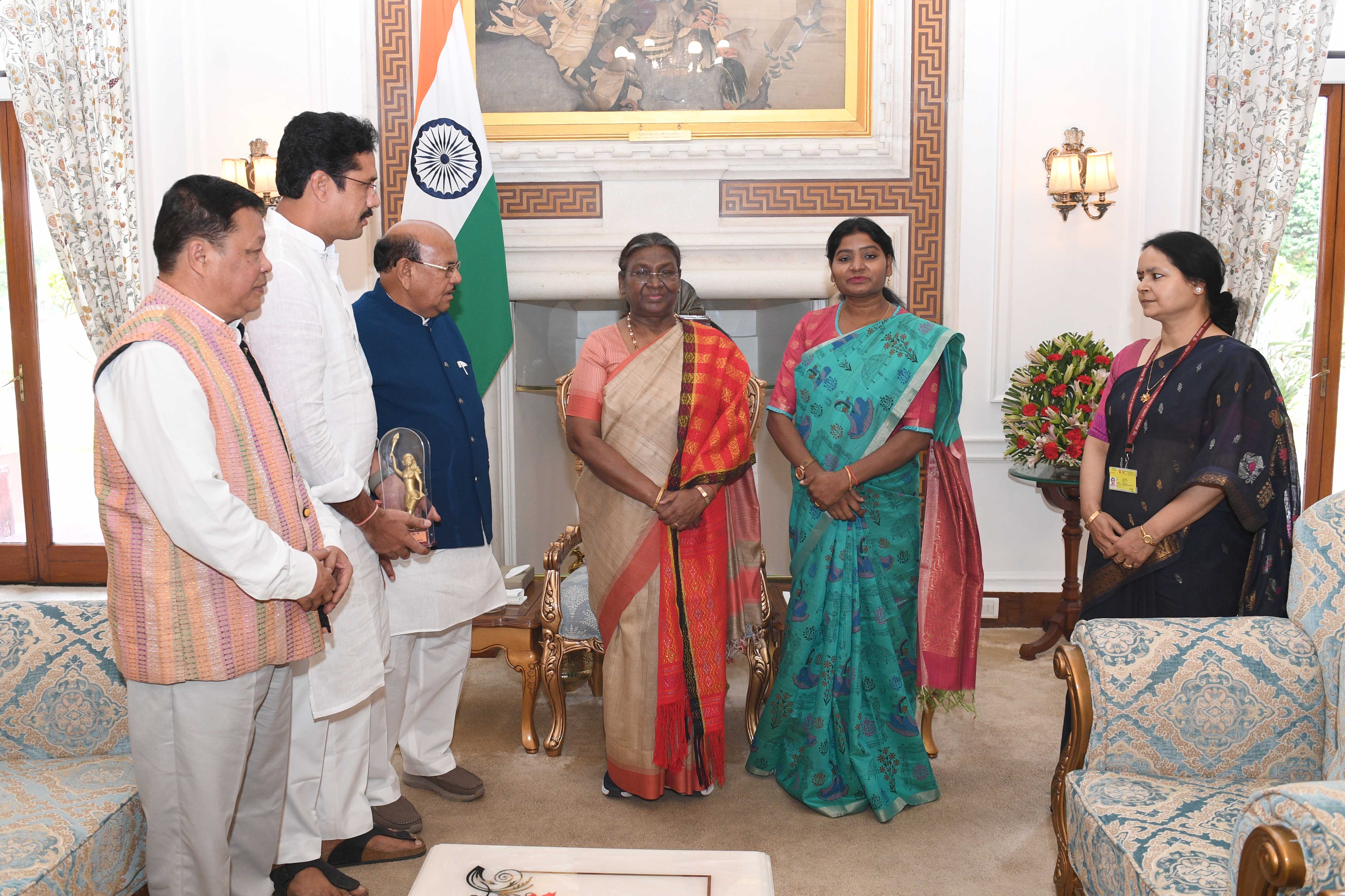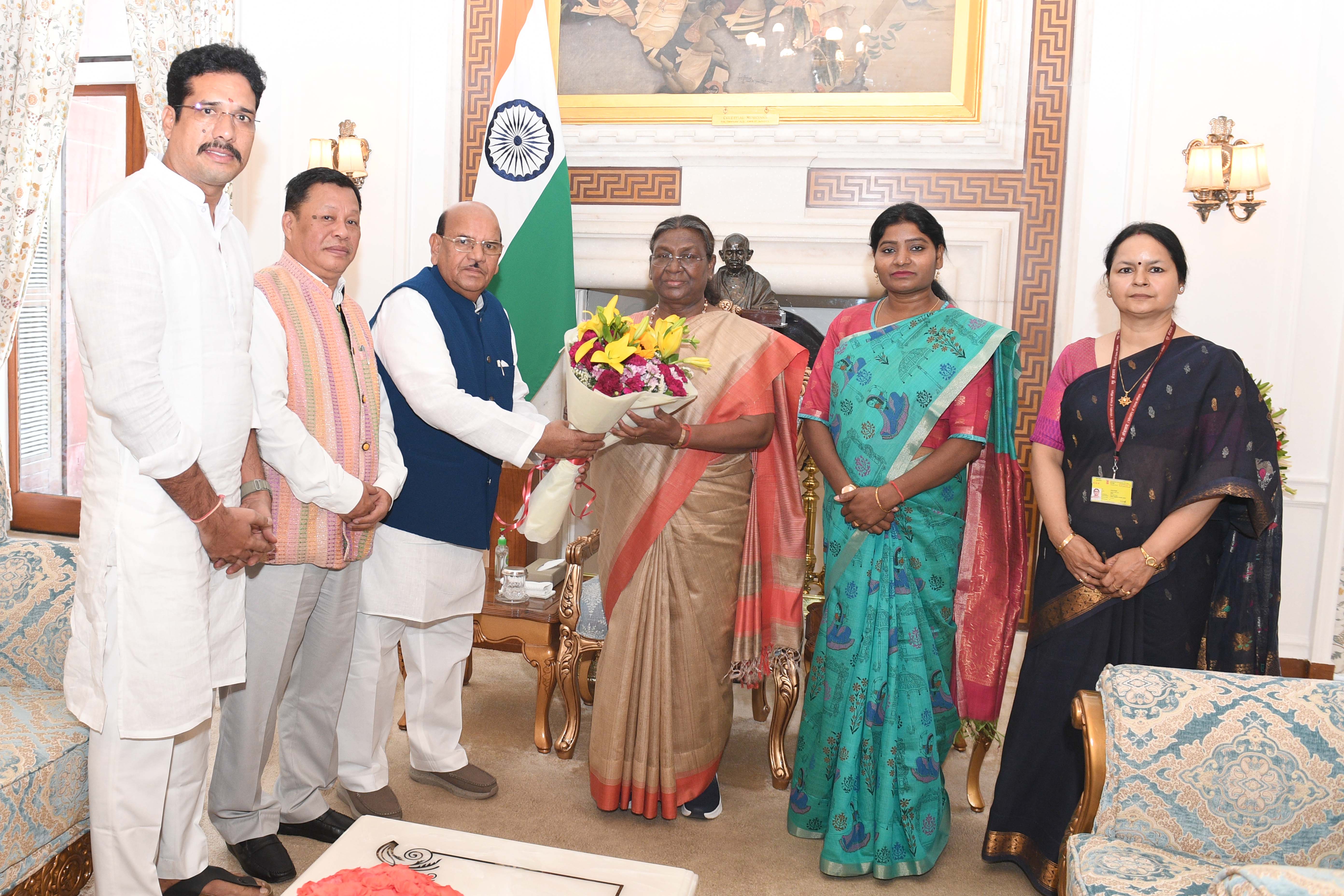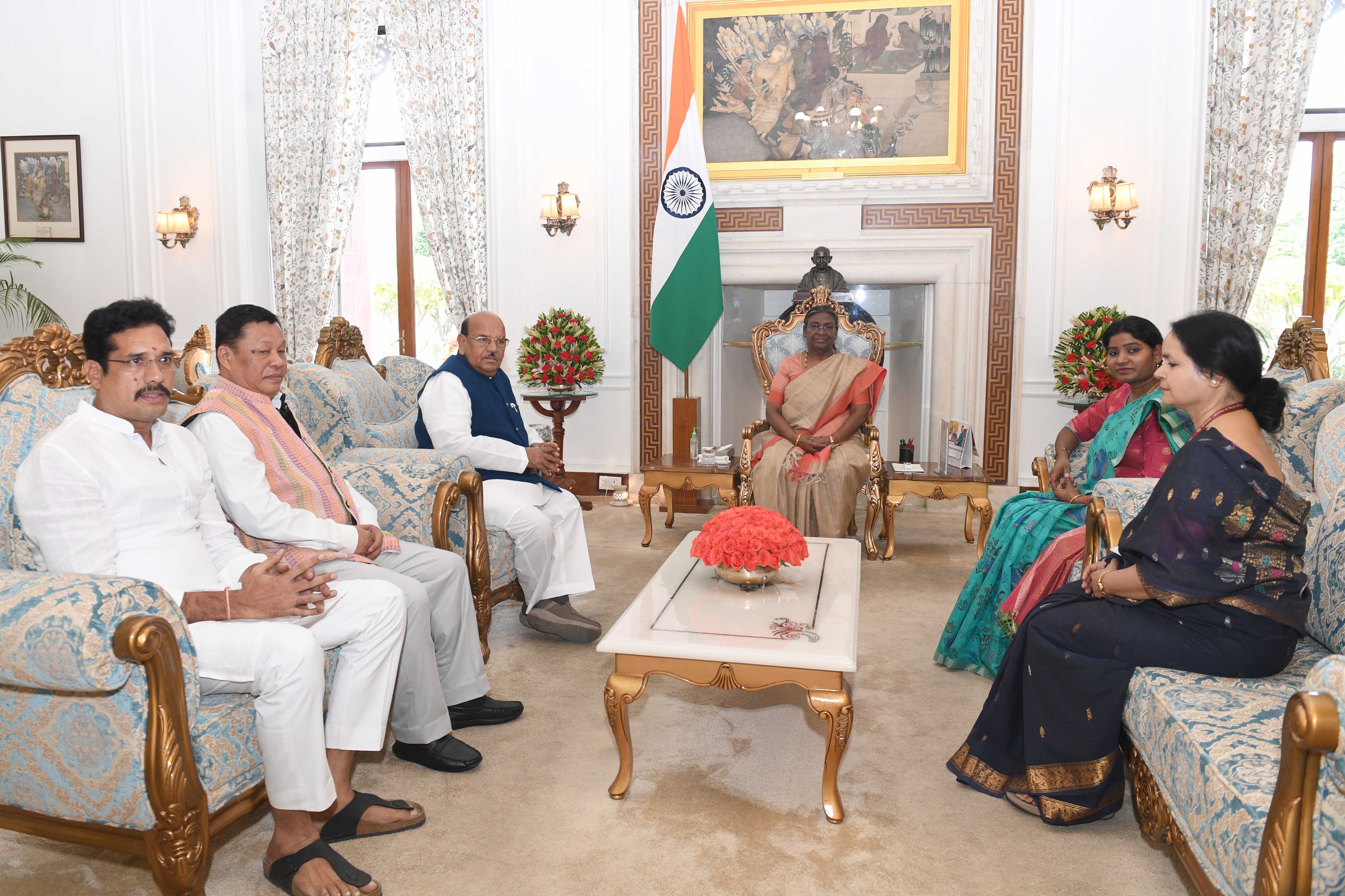 | Caption: | Shri Antar Singh Arya, Chairperson, National Commission for Scheduted Tribes (NCST) along with others meeting with the President of India Smt Droupadi Murmu at Rashtrapati Bhavan on May 03, 2024. |