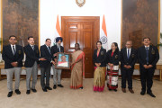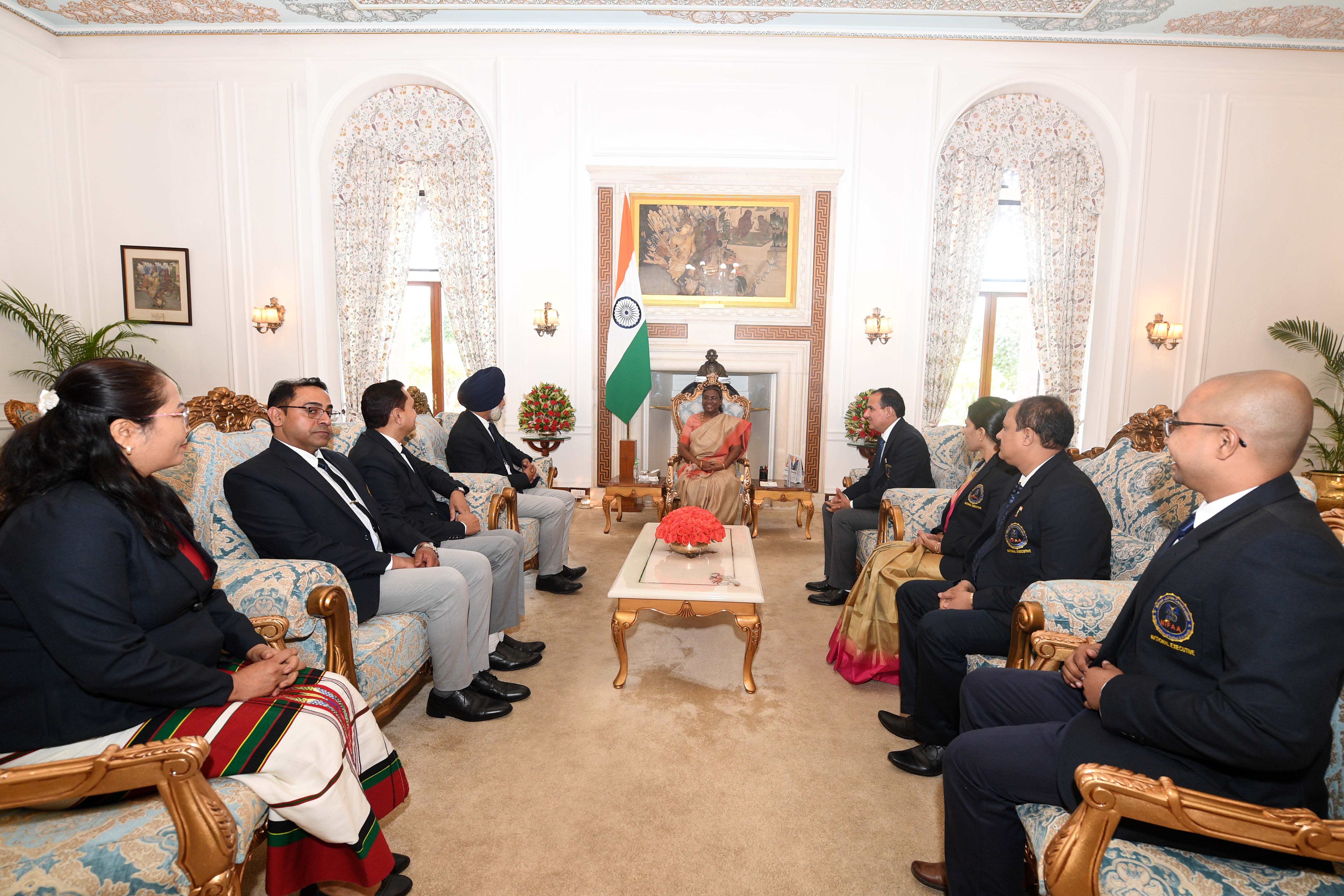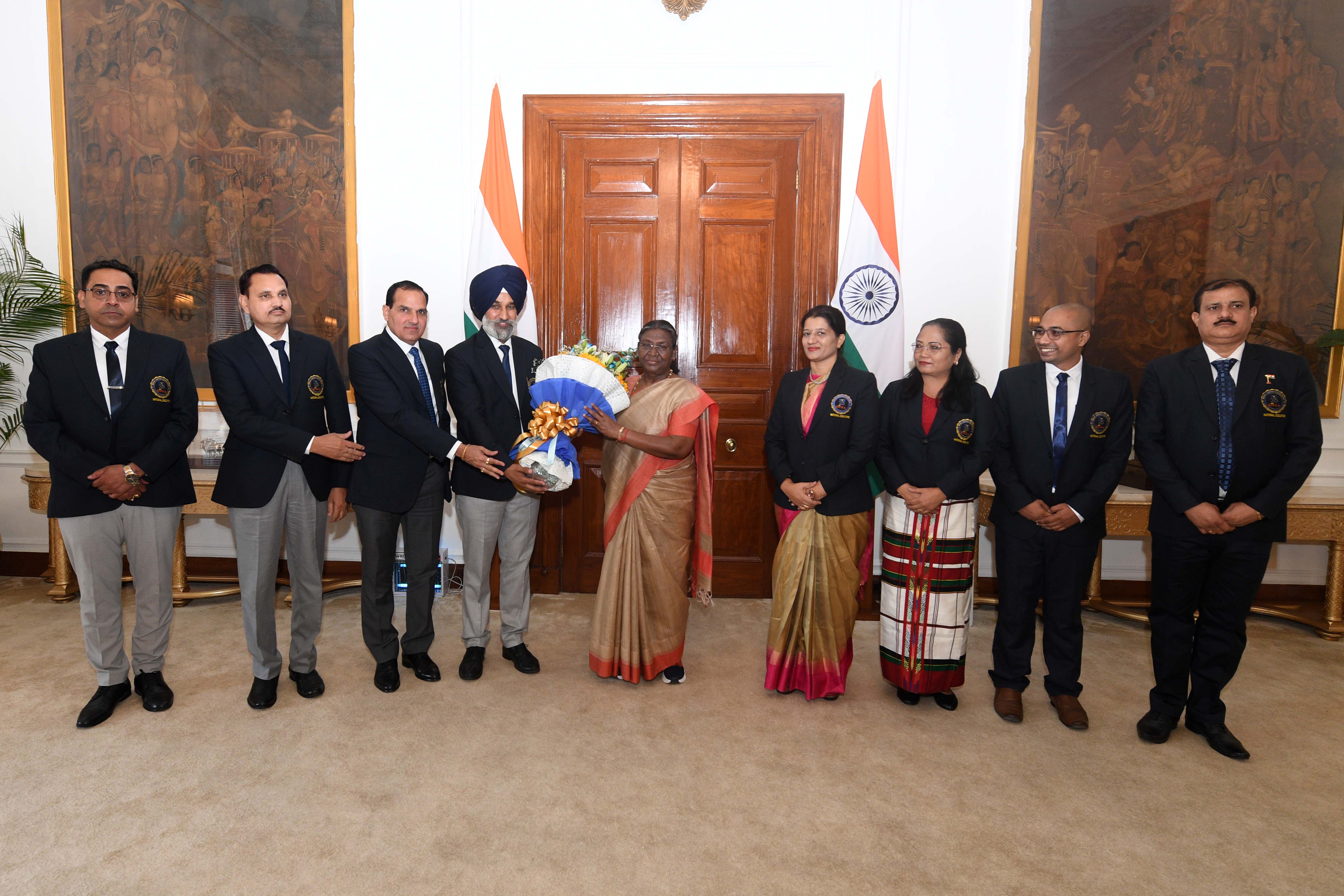 | Caption: | Dr. Pritpal Singh Pannu, Founder Chairman, National Integrated Forum of Artists and Activists and Shri Naresh Barana along with others meeting with the President of India Smt Droupadi Murmu at Rashtrapati Bhavan on May 03, 2024. |