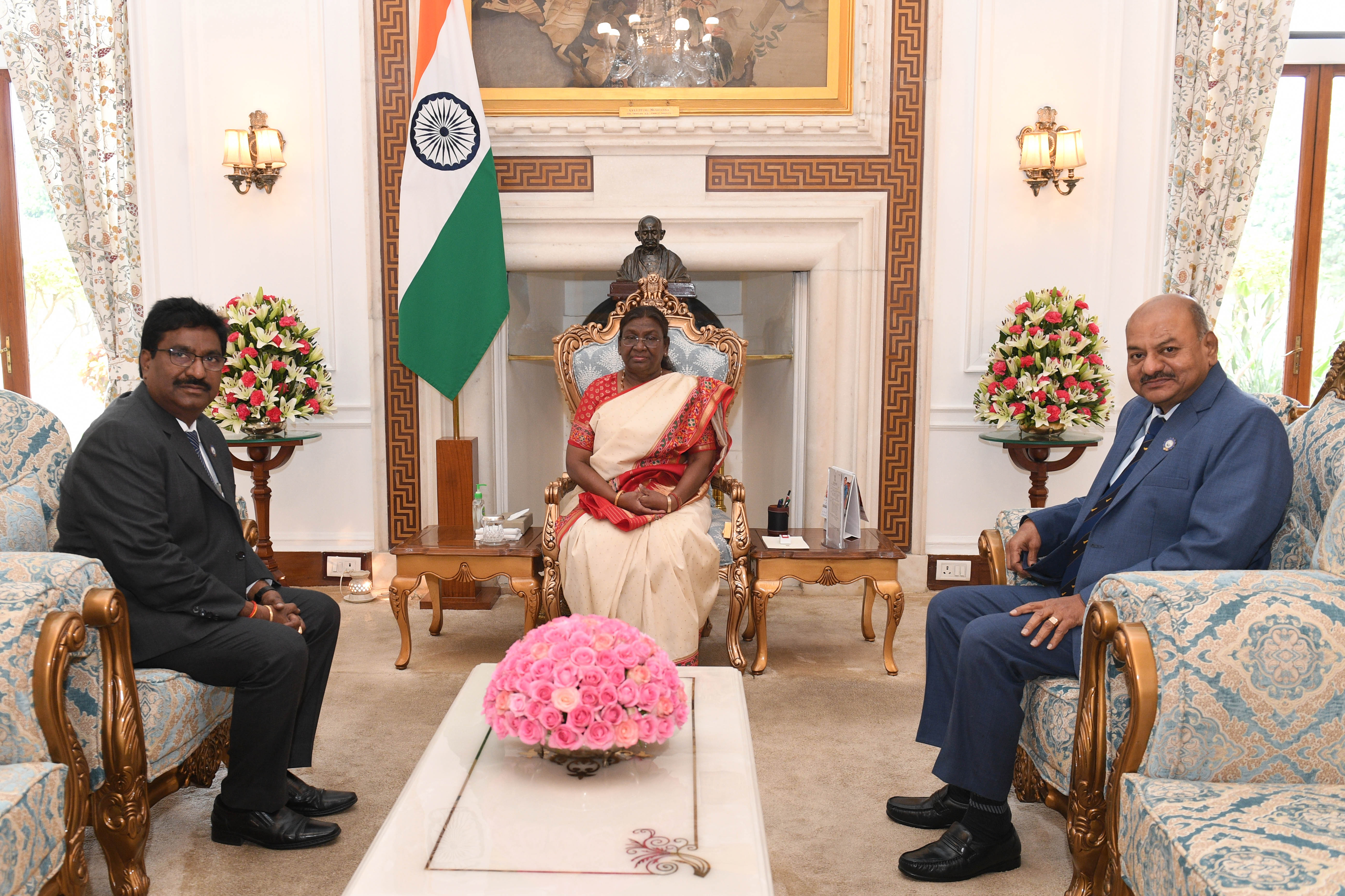 | Caption: | Dr. G. Rameshwar Rao, Director, Engineering Staff College of India (ESCI), Hyderabad along with others meeting with the President of India Smt Droupadi Murmu at Rashtrapati Bhavan on May 13, 2024. |