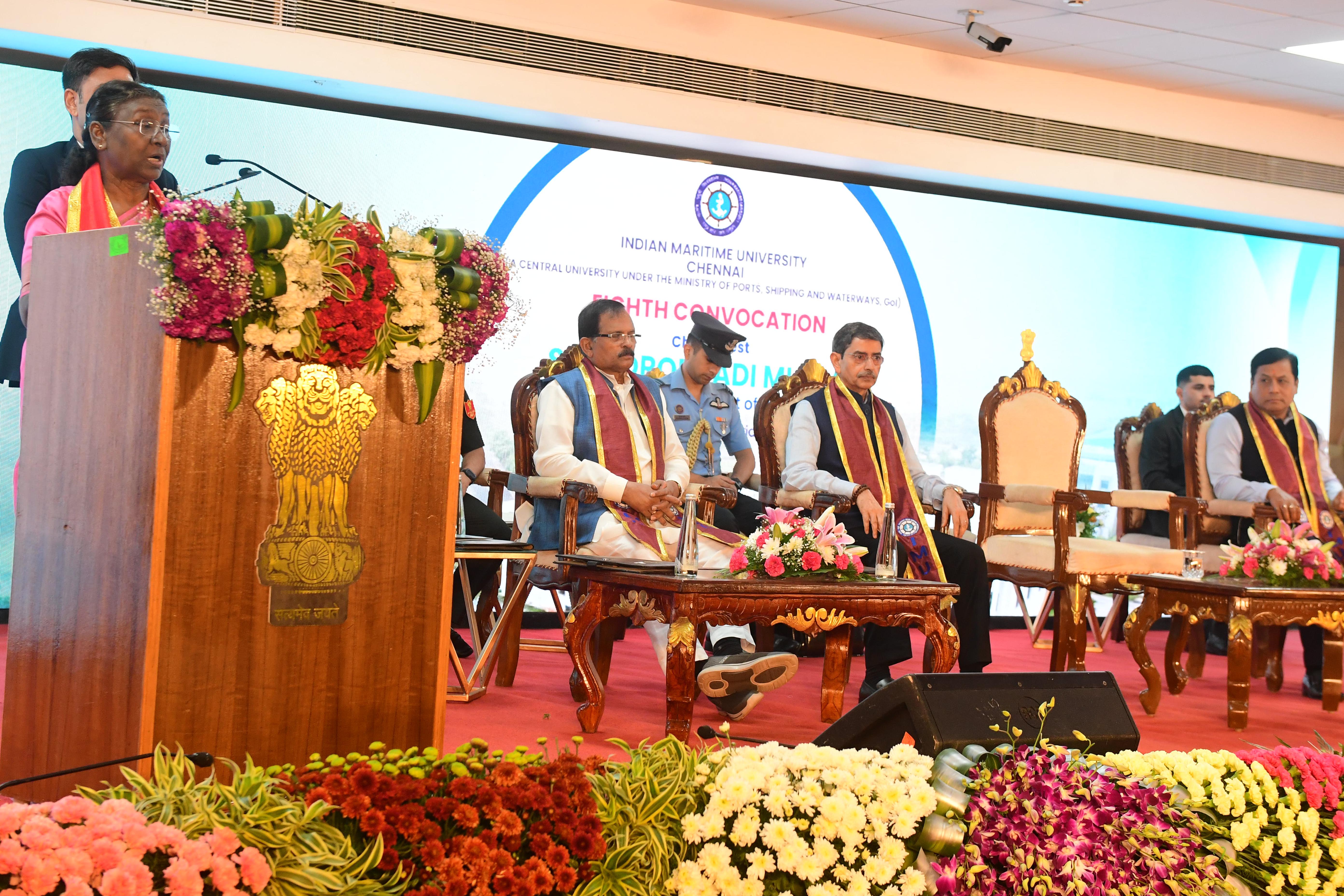 | Caption: | The President of India, Smt Droupadi Murmu graced and addressed the 8th convocation of Indian Maritime University at Chennai, Tamil Nadu on October 27, 2023. |