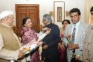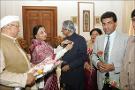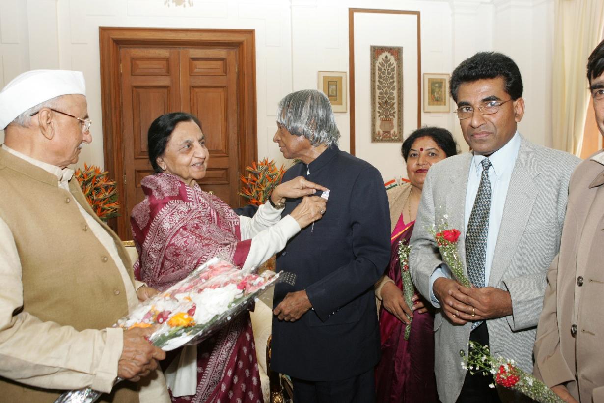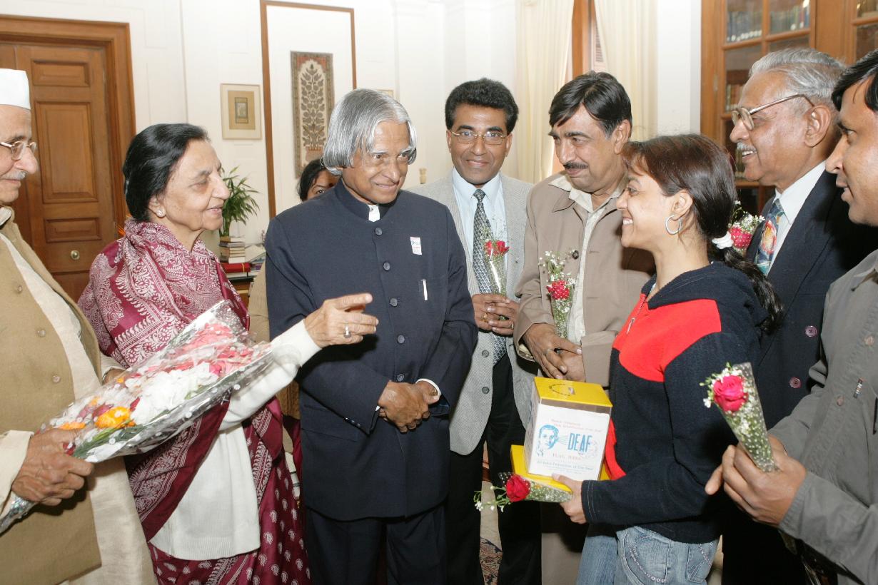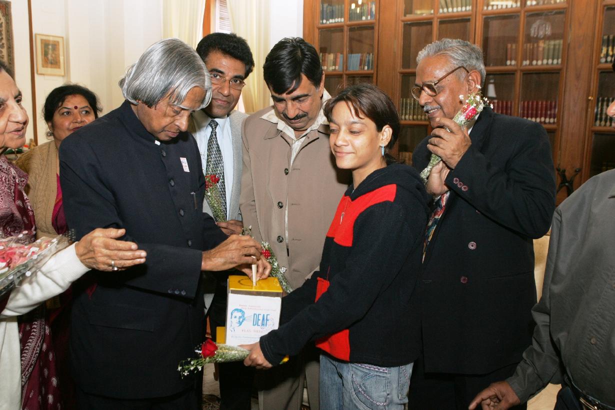 | Caption: | The President of India, Dr A P J Abdul Kalam with the Members and Children from All India Federation of Deaf to Pinning a Flag on the occasion of their Flag Week at Rashtrapati Bhavan in New Delhi on Feb 05, 2007 |