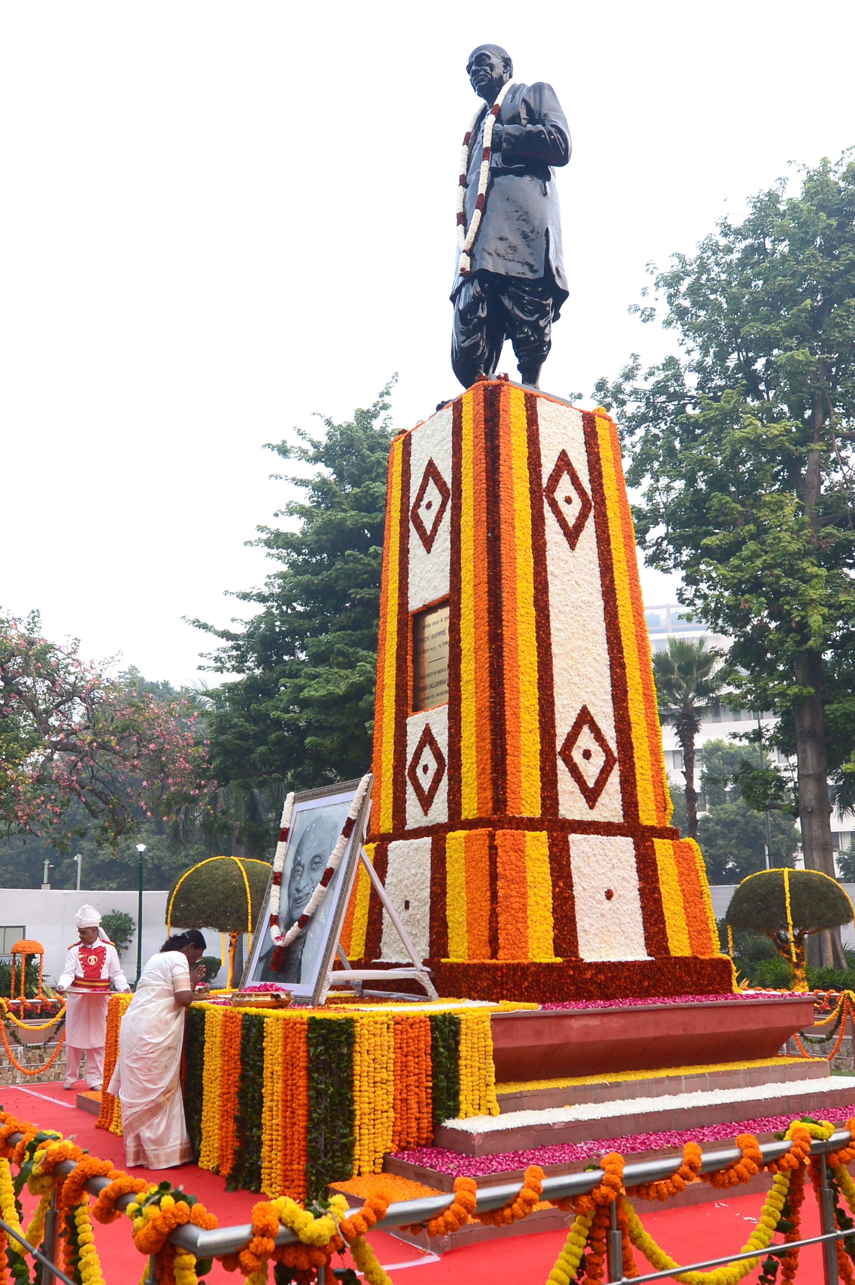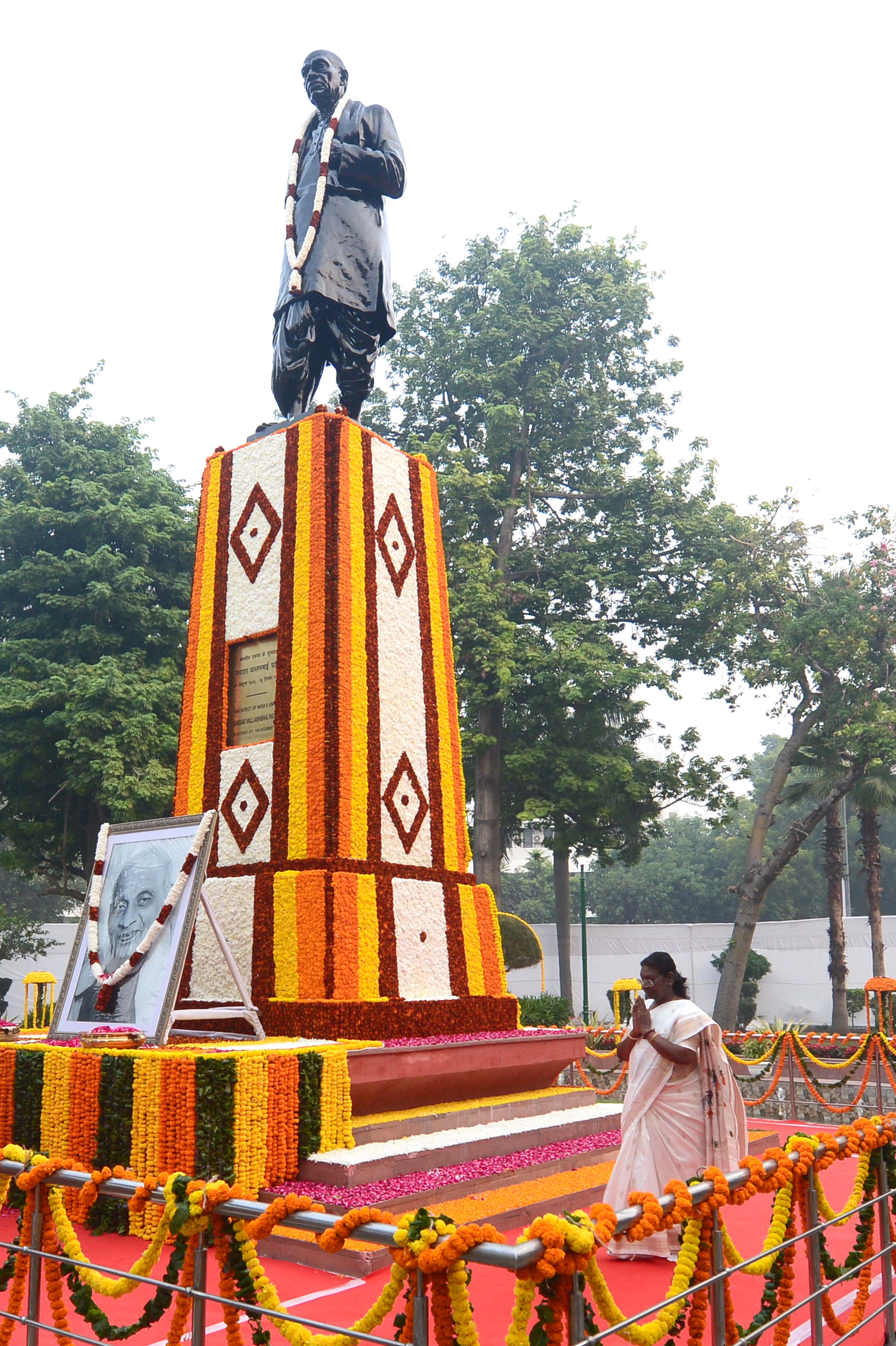 | Caption: | The President of India, Smt. Droupadi Murmu paid floral tributes to Sardar Vallabhbhai Patel on his birth anniversary, at Patel Chowk, in New Delhi on October 31, 2023. |