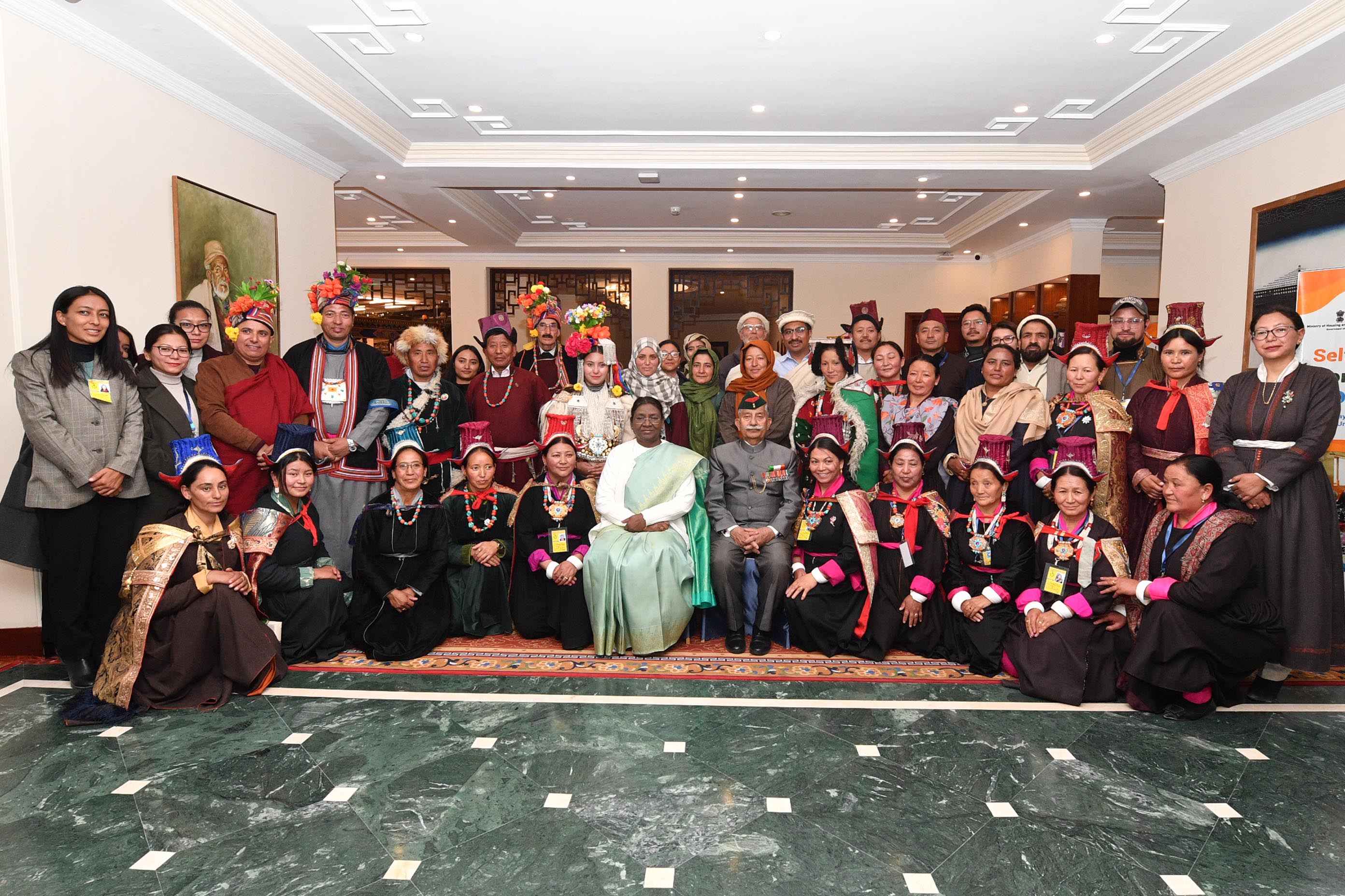 | Caption: | The President of India, Smt Droupadi Murmu interacted with members of local tribal groups and Self Help Groups of Ladakh on November 1, 2023. |