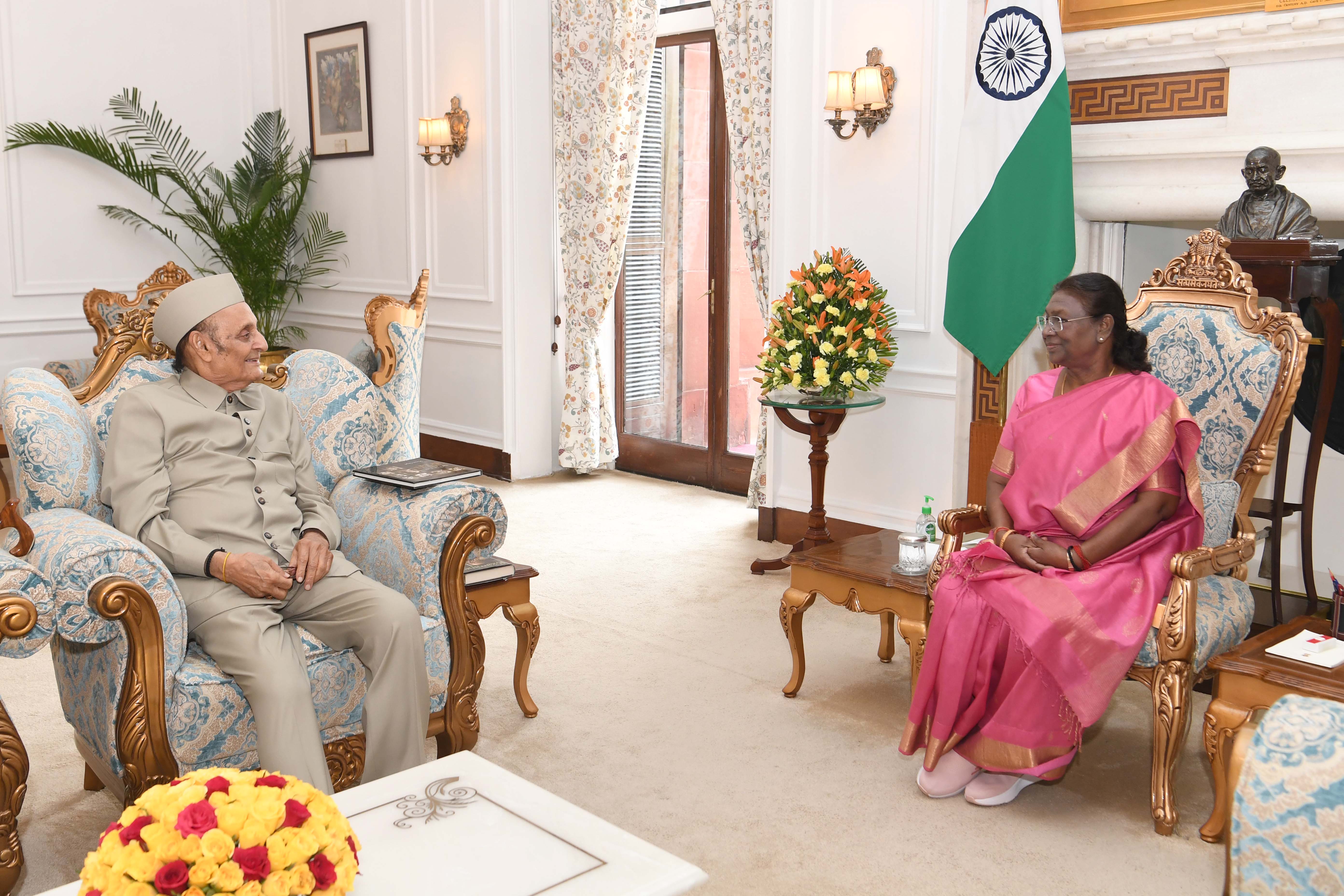 | Caption: | Dr. Karan Singh, Former Union Cabinet Minister and Former Member of Parliament meeting with the President of India, Smt. Droupadi Murmu at Rashtrapati Bhavan on November 13, 2023. |