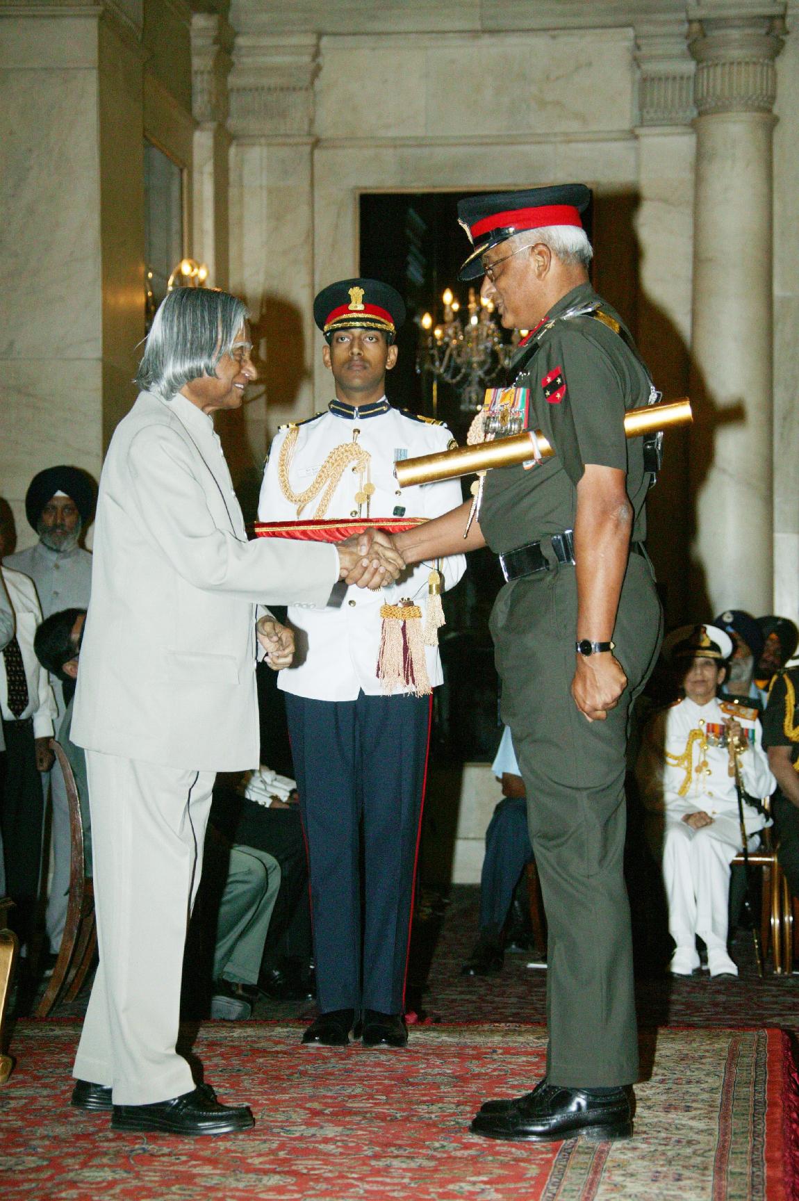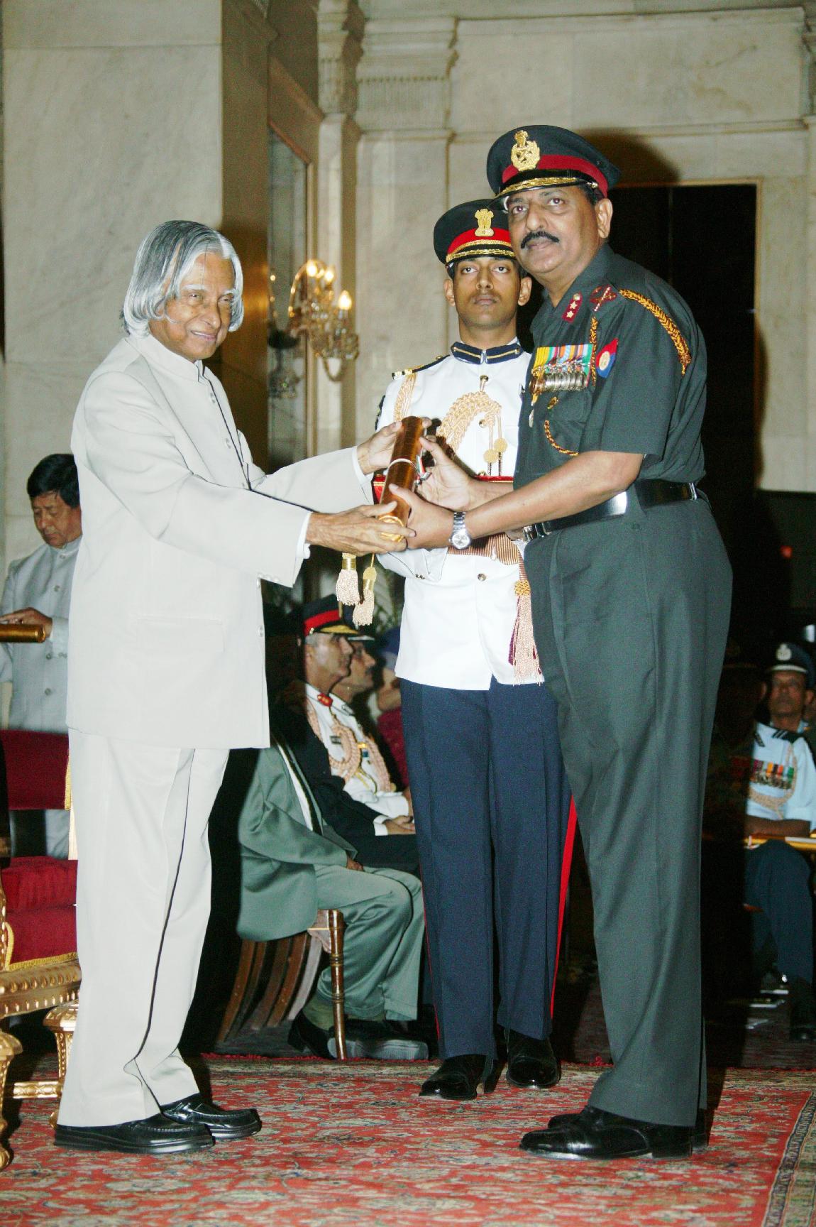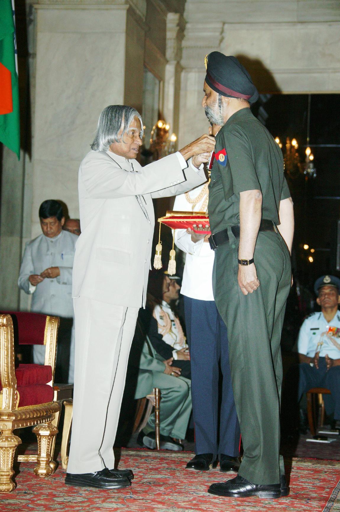 | Caption: | The President of India, Dr A P J Abdul Kalam presenting the Defence Investiture - II at the Ashok Hall of Rashtrapati Bhavan in New Delhi on April 11, 2007 |