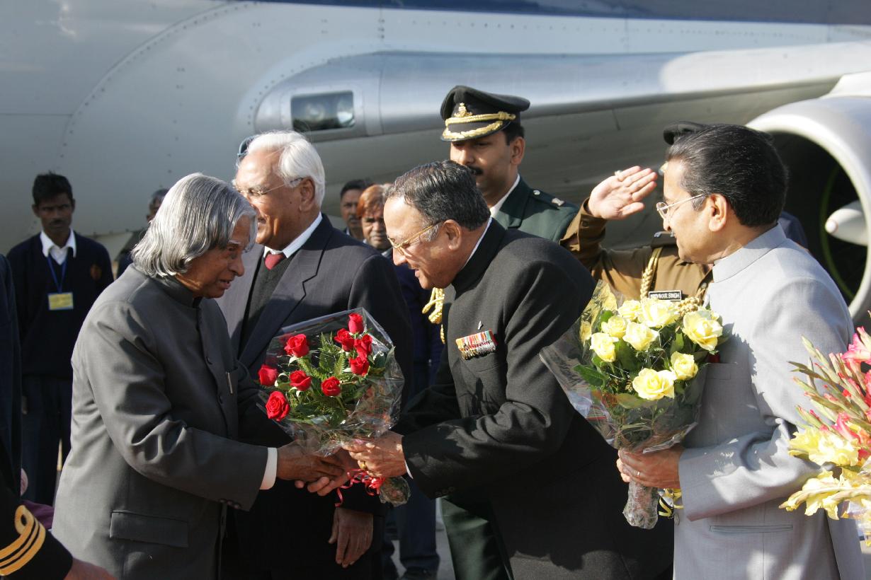 | Caption: | The President of India, Dr A P J Abdul Kalam arriving at Chandigarh Airport in Punjab on Dec 10, 2005 |