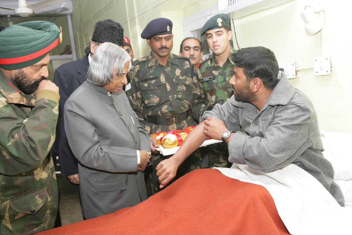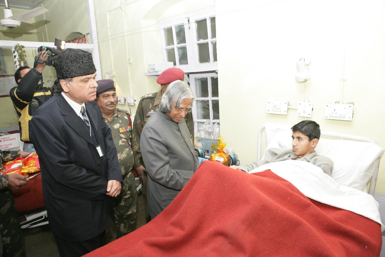 | Caption: | The President of India, Dr A P J Abdul Kalam visiting 92 Base Hospital and meeting with the Earthquake & Battle Casualties of Army in Jammu & Kashmir on Nov 26, 2005 |