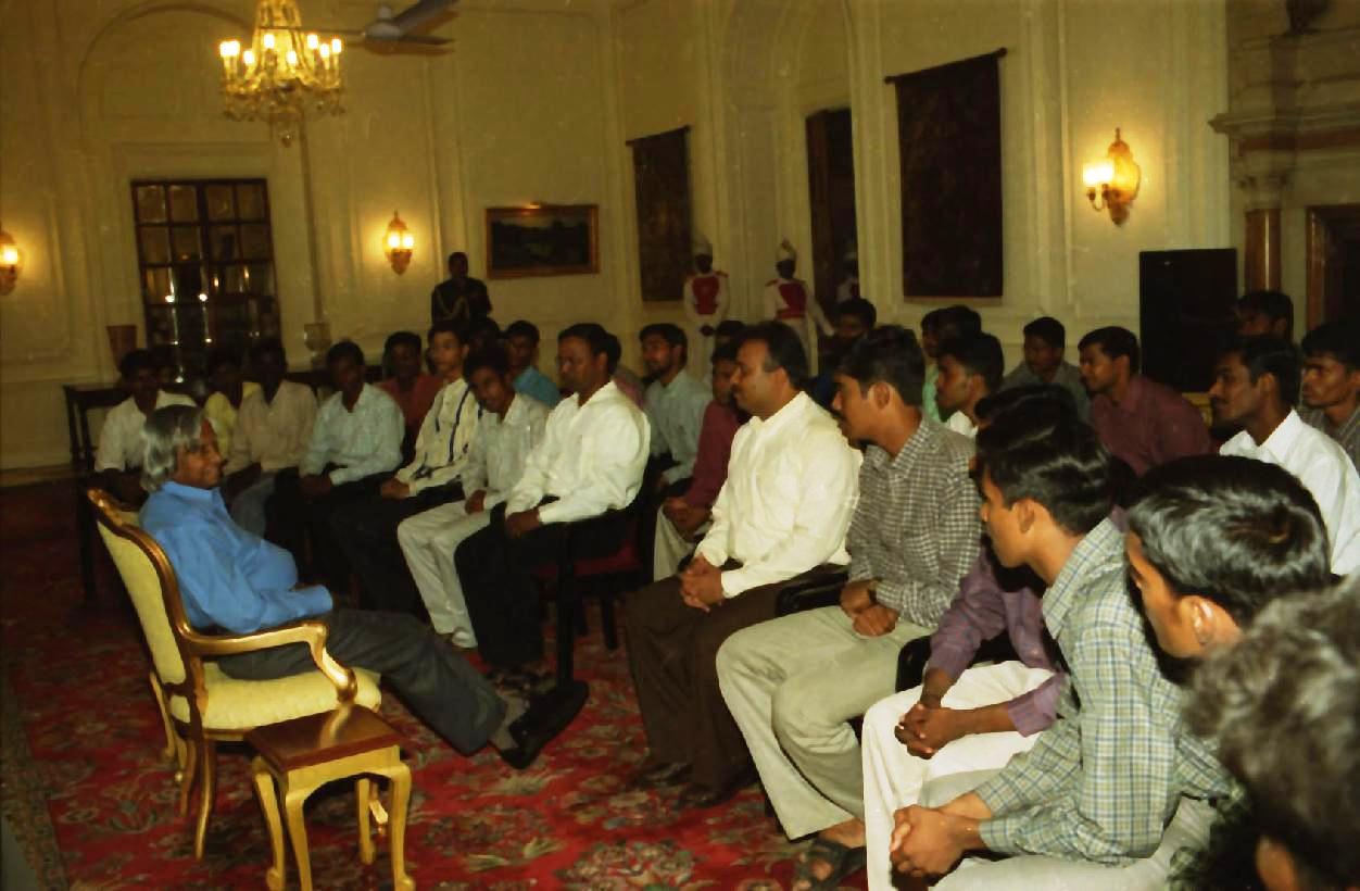 | Caption: | The President of India, Dr A P J Abdul Kalam meeting with the Students from Sacred Heart Collage, Tirupattur at the Yellow Drawing Room of Rashtrapati Bhavan in New Delhi on Aug 30, 2002 |