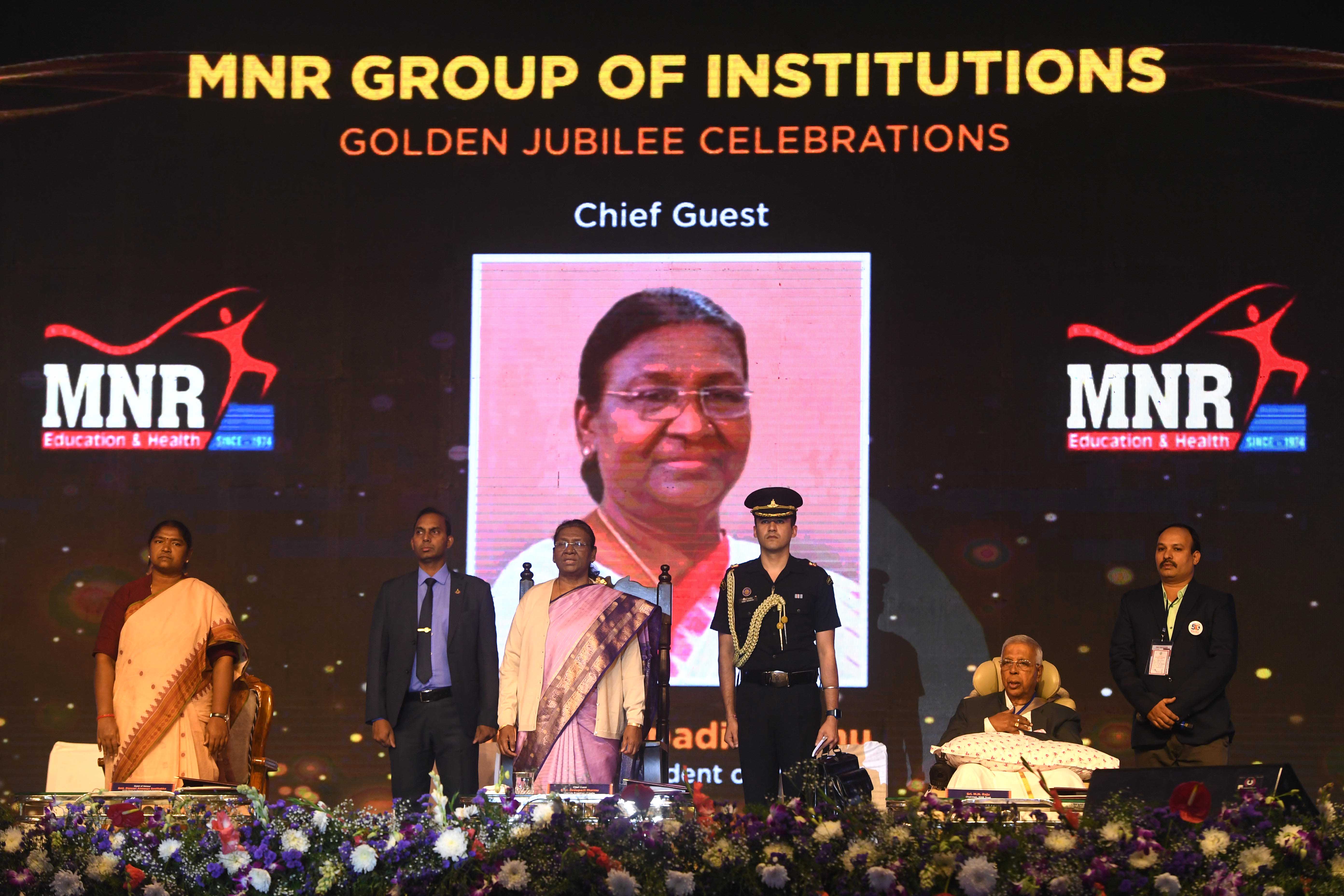 | Caption: | The President of India, Smt Droupadi Murmu graced the golden jubilee celebrations of MNR Educational Trust at Hyderabad on December 20, 2023. |