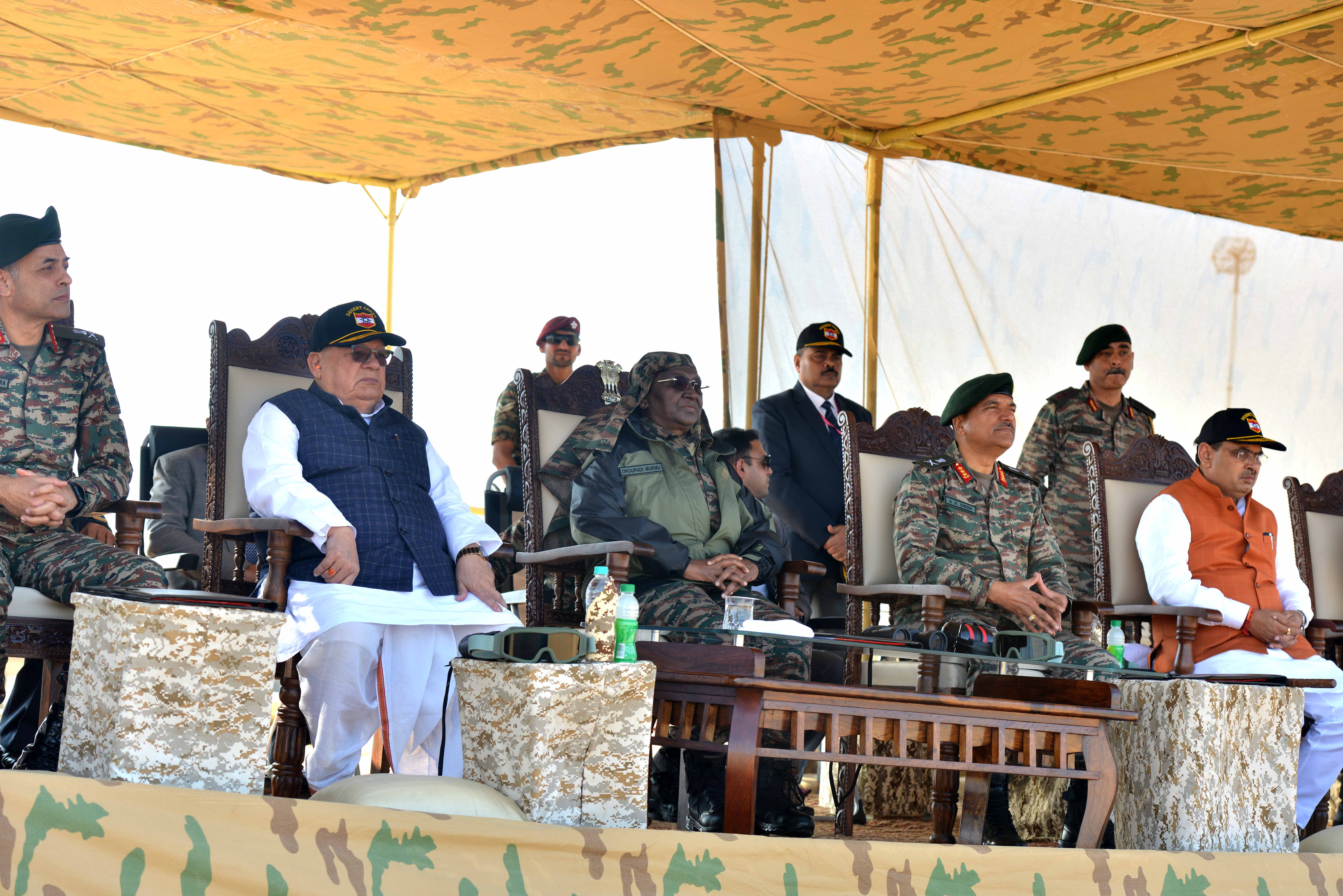 | Caption: | The President of India Smt. Droupadi Murmu witnessed the Integrated Fire Power exercise conducted by India Army at Pokhran in Rajasthan on December 23, 2023. |