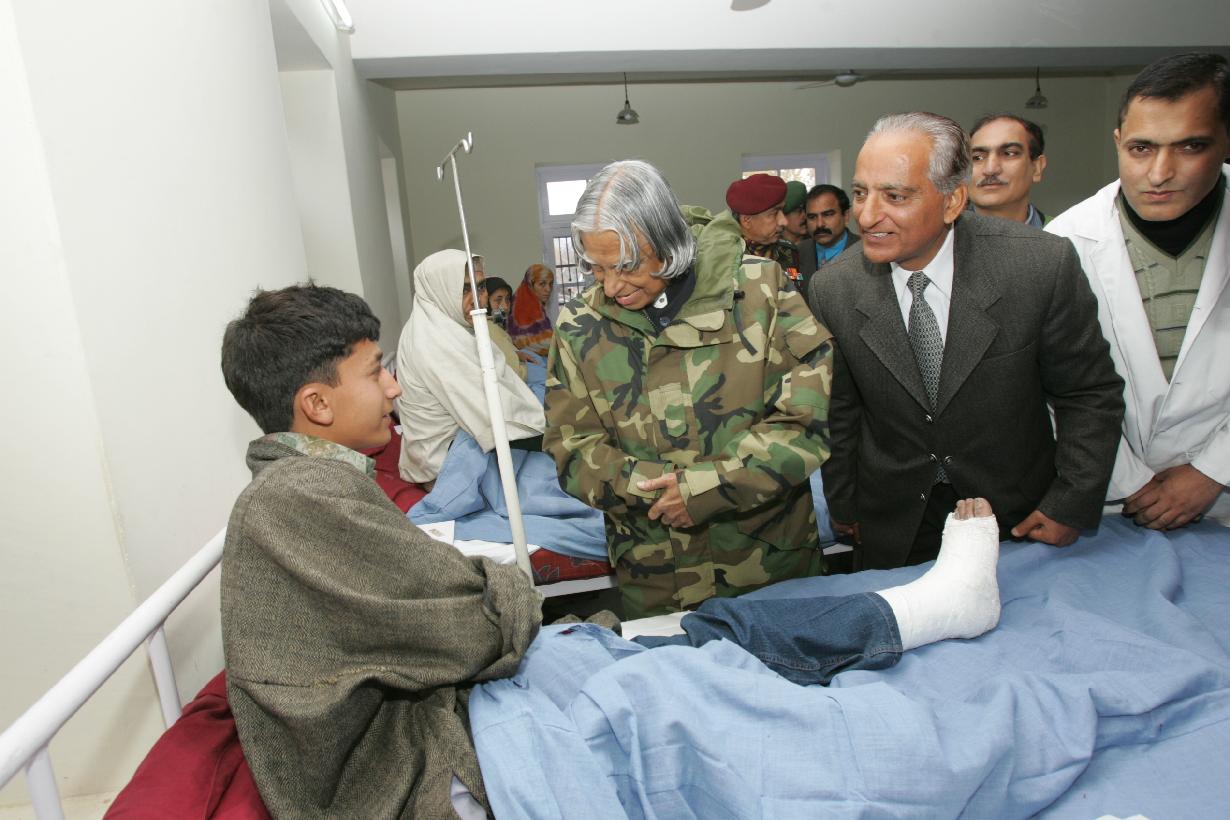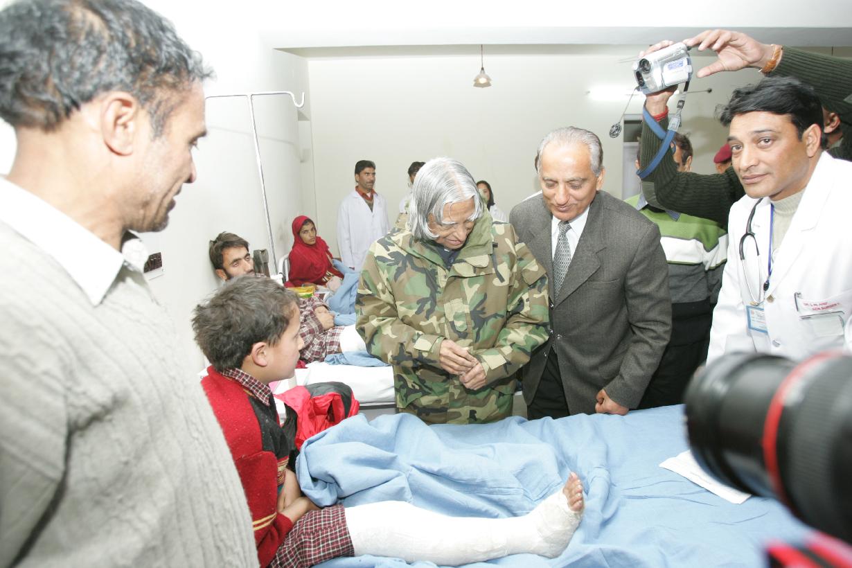 | Caption: | The President of India, Dr A P J Abdul Kalam visiting the Civil Hospital at Uri in Jammu & Kashmir on Nov 27, 2005 |