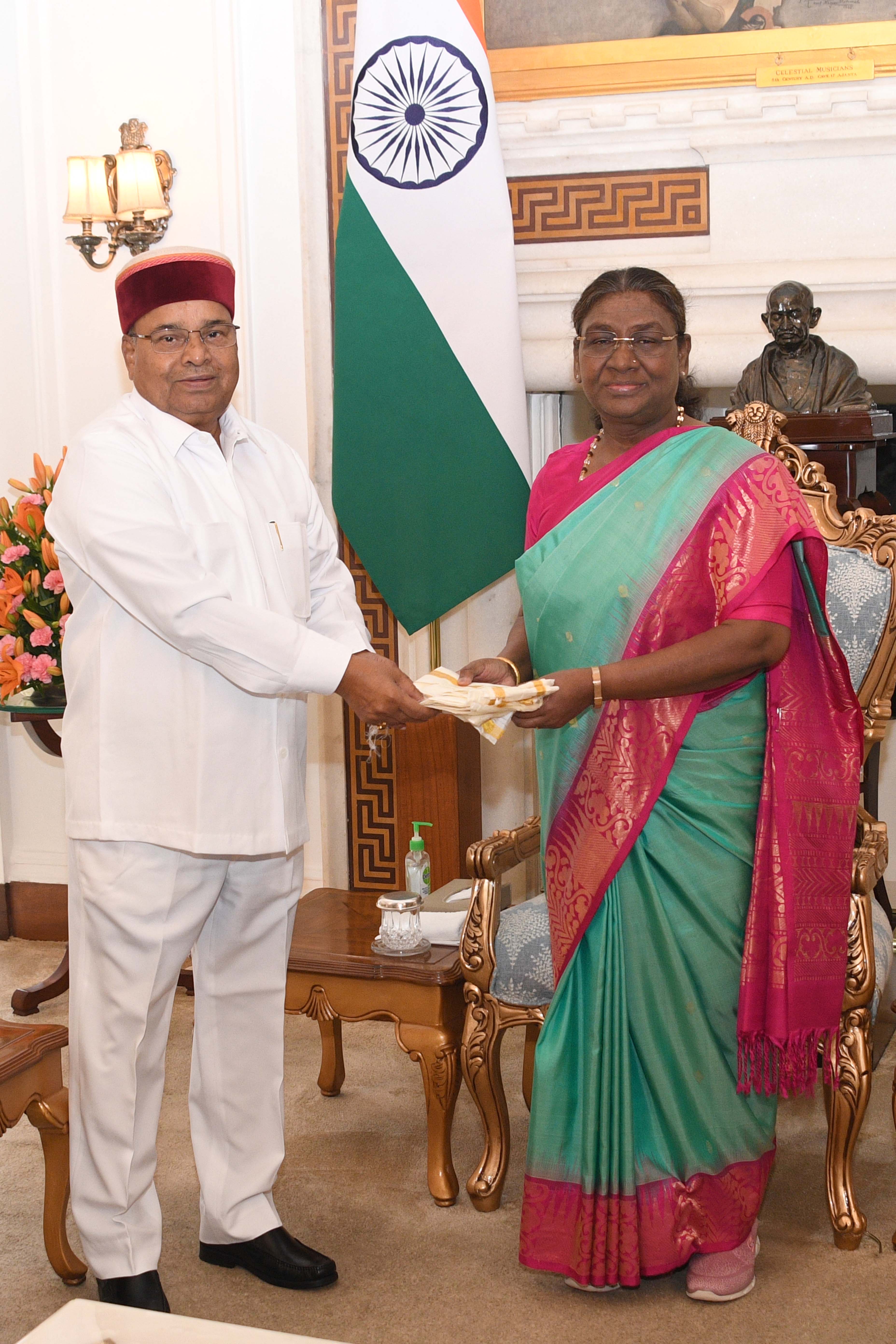 | Caption: | The Governor of Karnataka, Shri Thaawarchand Gehlot called on the President of India Smt. Droupadi Murmu at Rashtrapati Bhavan on July 12, 2024. |
