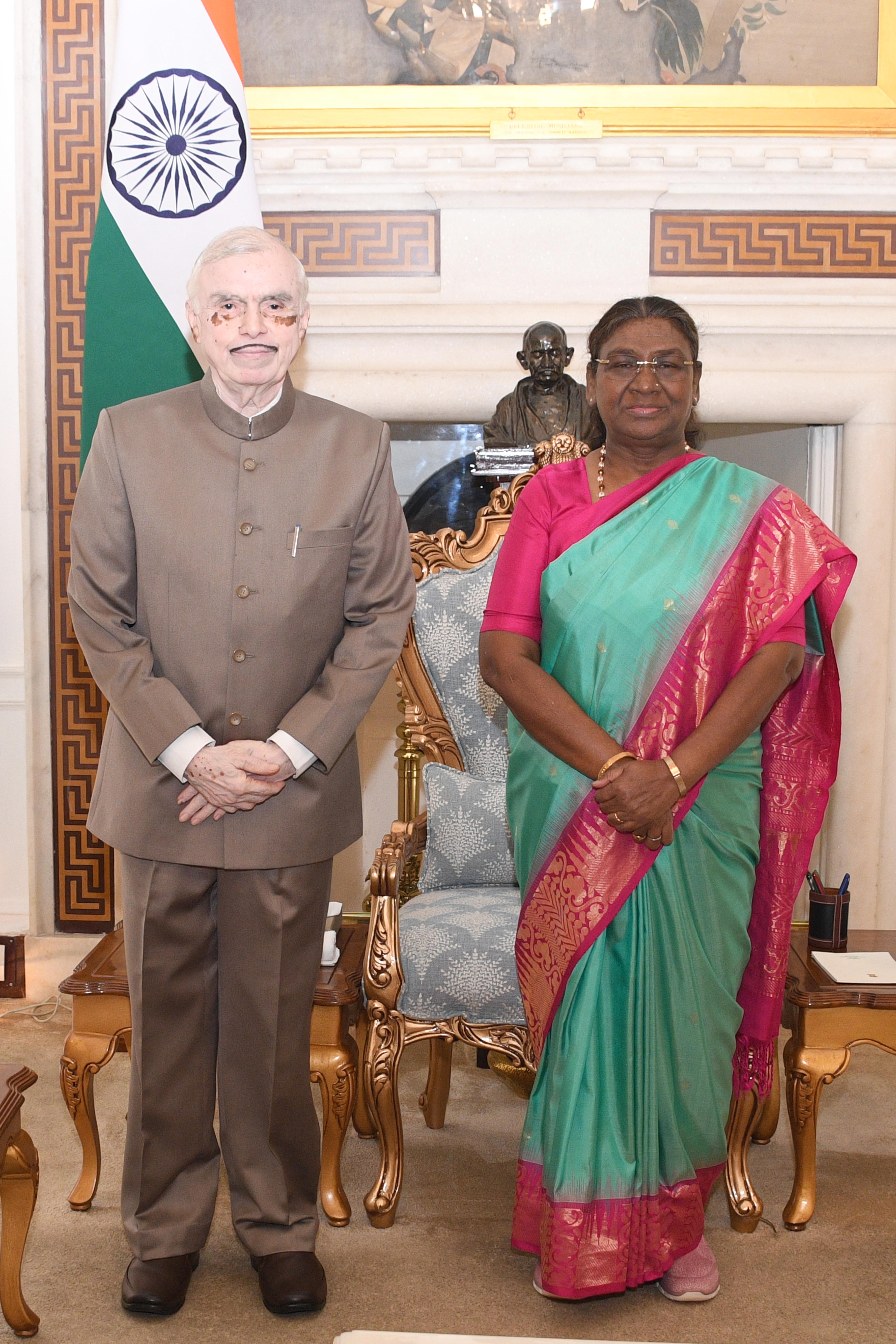 | Caption: | Shri Justice P. Sathasivam, former Chief Justice of India and former Governor of Kerala called on the President of India Smt. Droupadi Murmu at Rashtrapati Bhavan on July 12, 2024. |