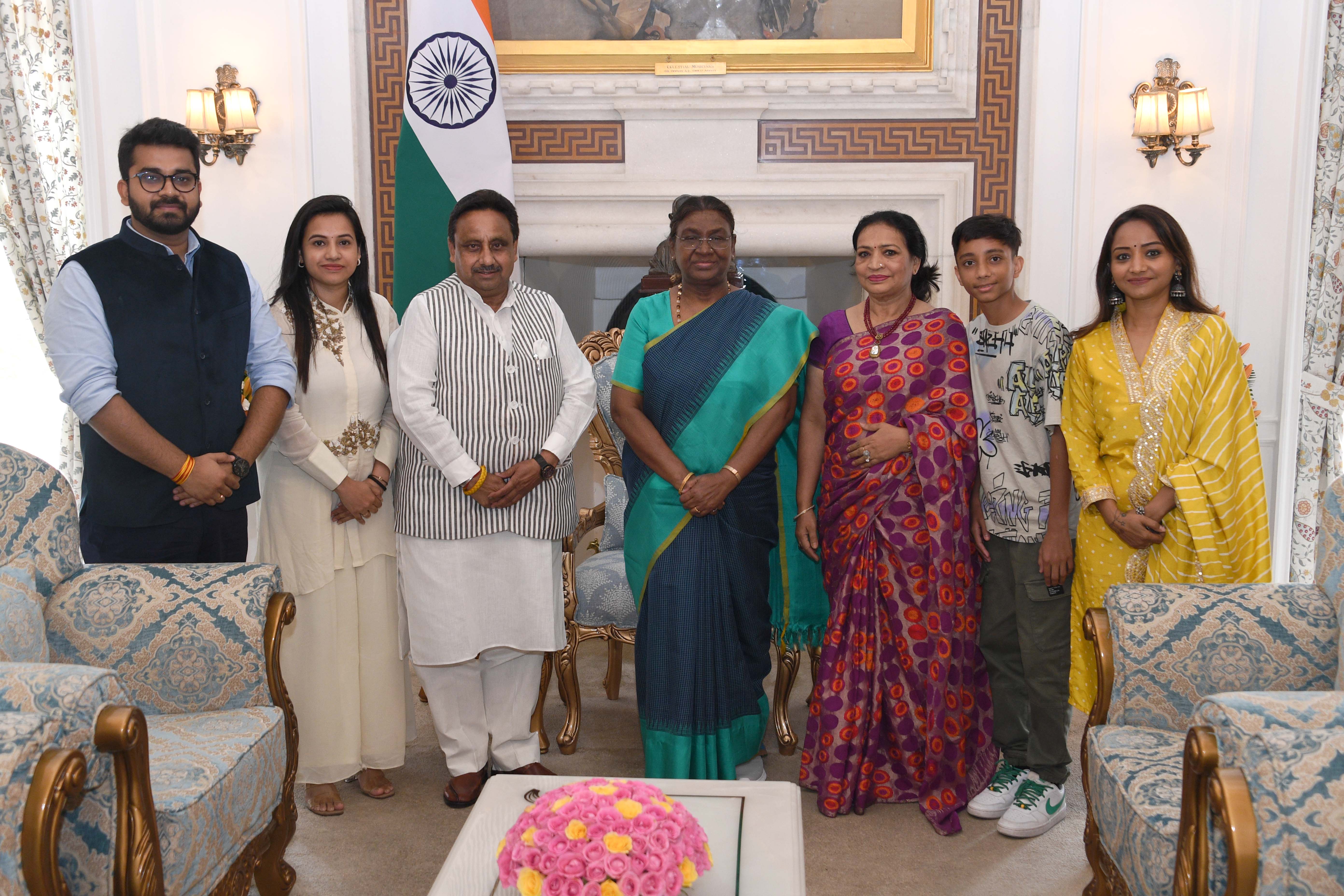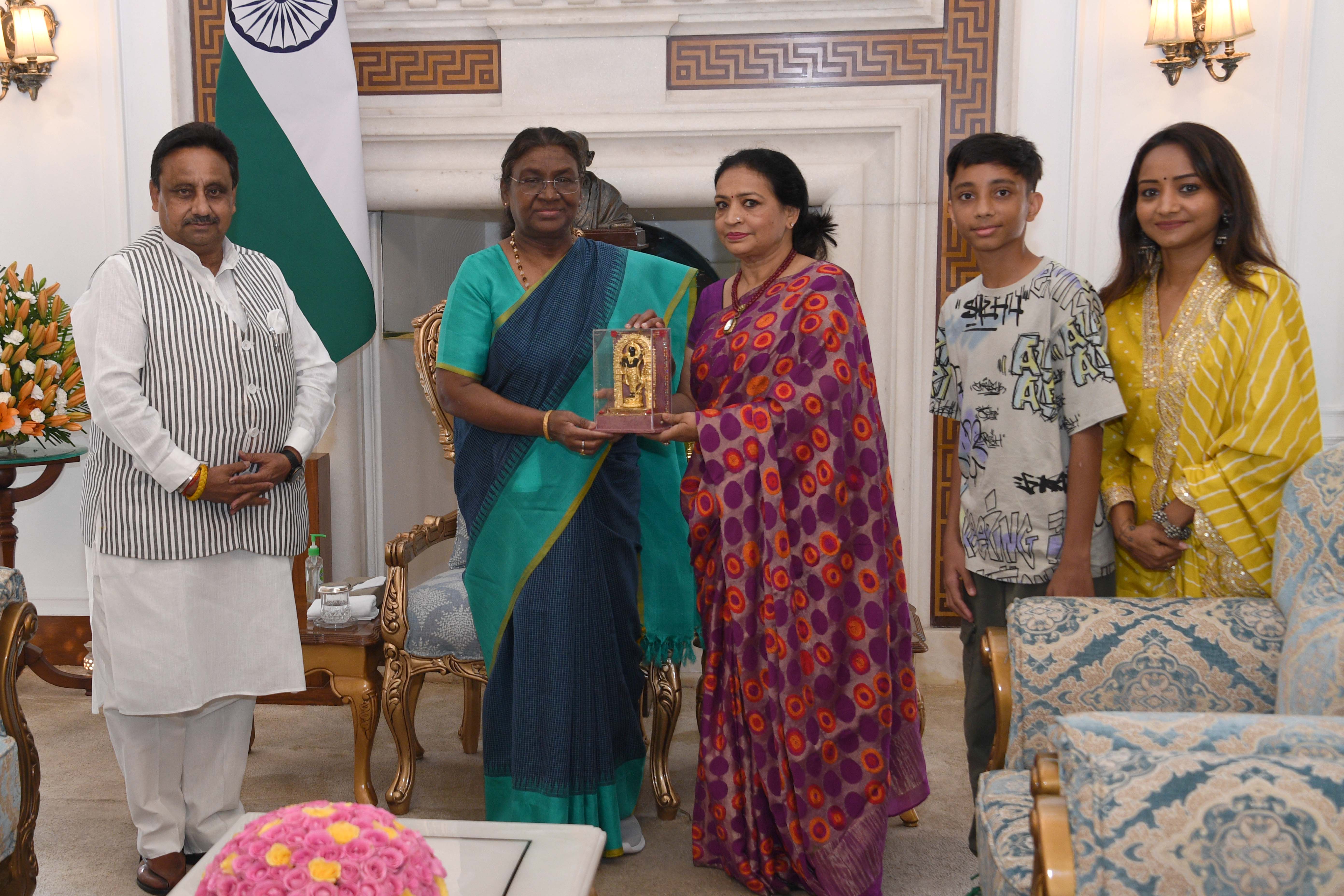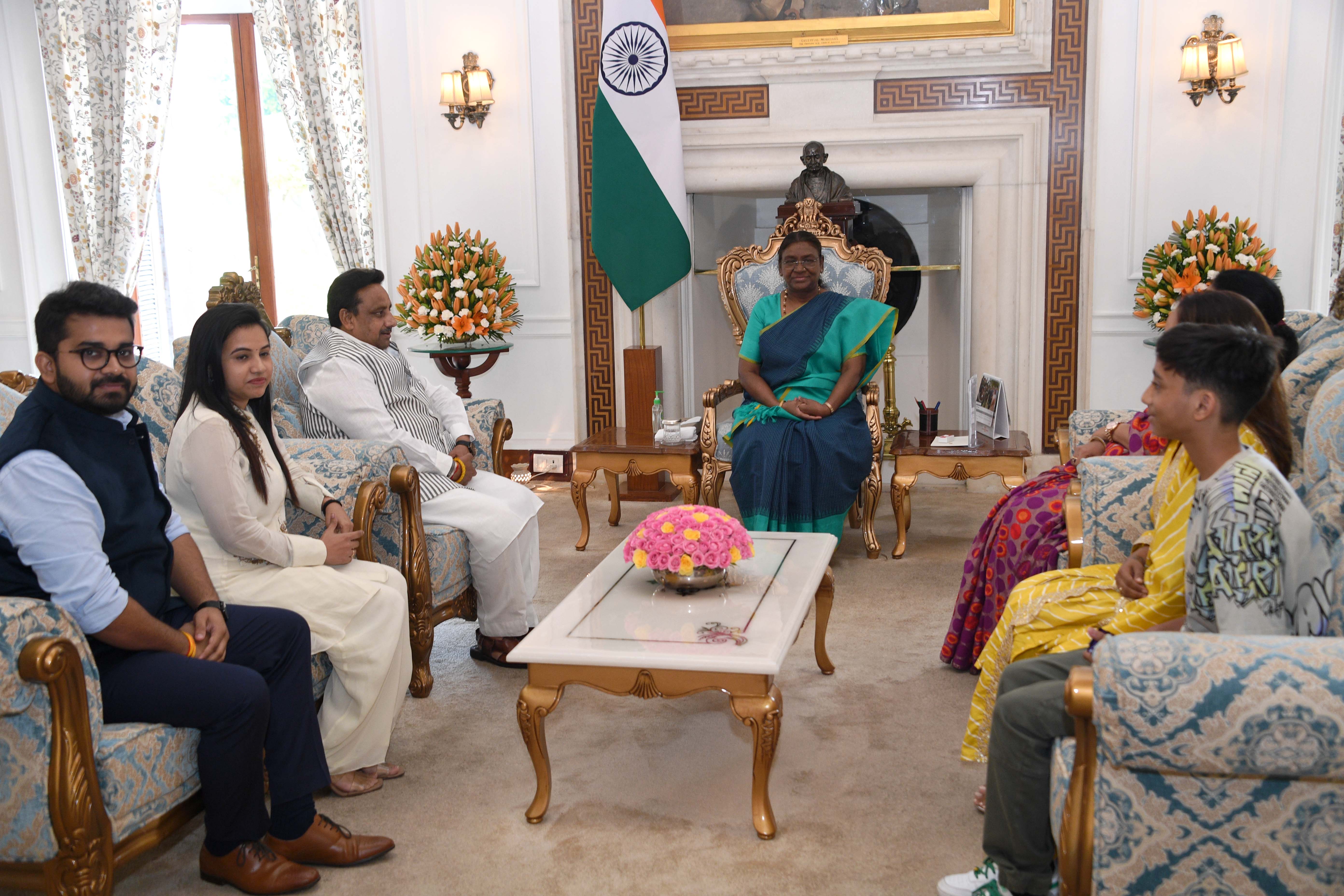 | Caption: | Shri Praveen Khandelwal, MP (Lok Sabha along with others meeting with the President of India Smt. Droupadi Murmu at Rashtrapati Bhavan on July 15, 2024. |