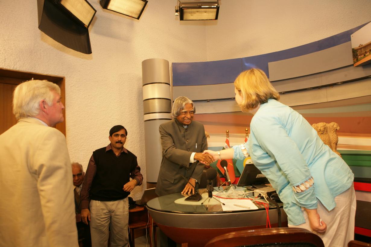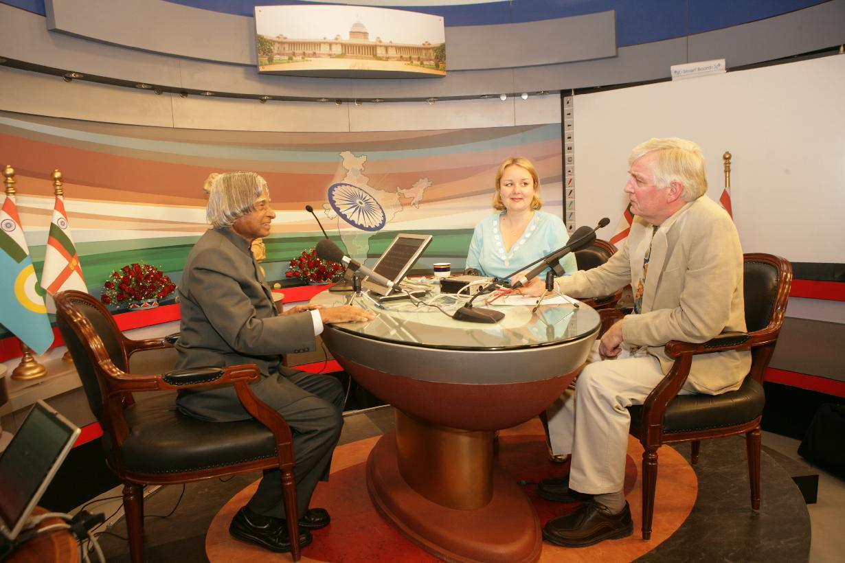 | Caption: | The President of India, Dr A P J Abdul Kalam interacting with Mr Alexandra Feachem and Dr Geoff Watts for British Broadcasting Corporation (BBC) World Service at the Multi Media Studio of Rashtrapati Bhavan in New Delhi on Jan 08, 2007 |