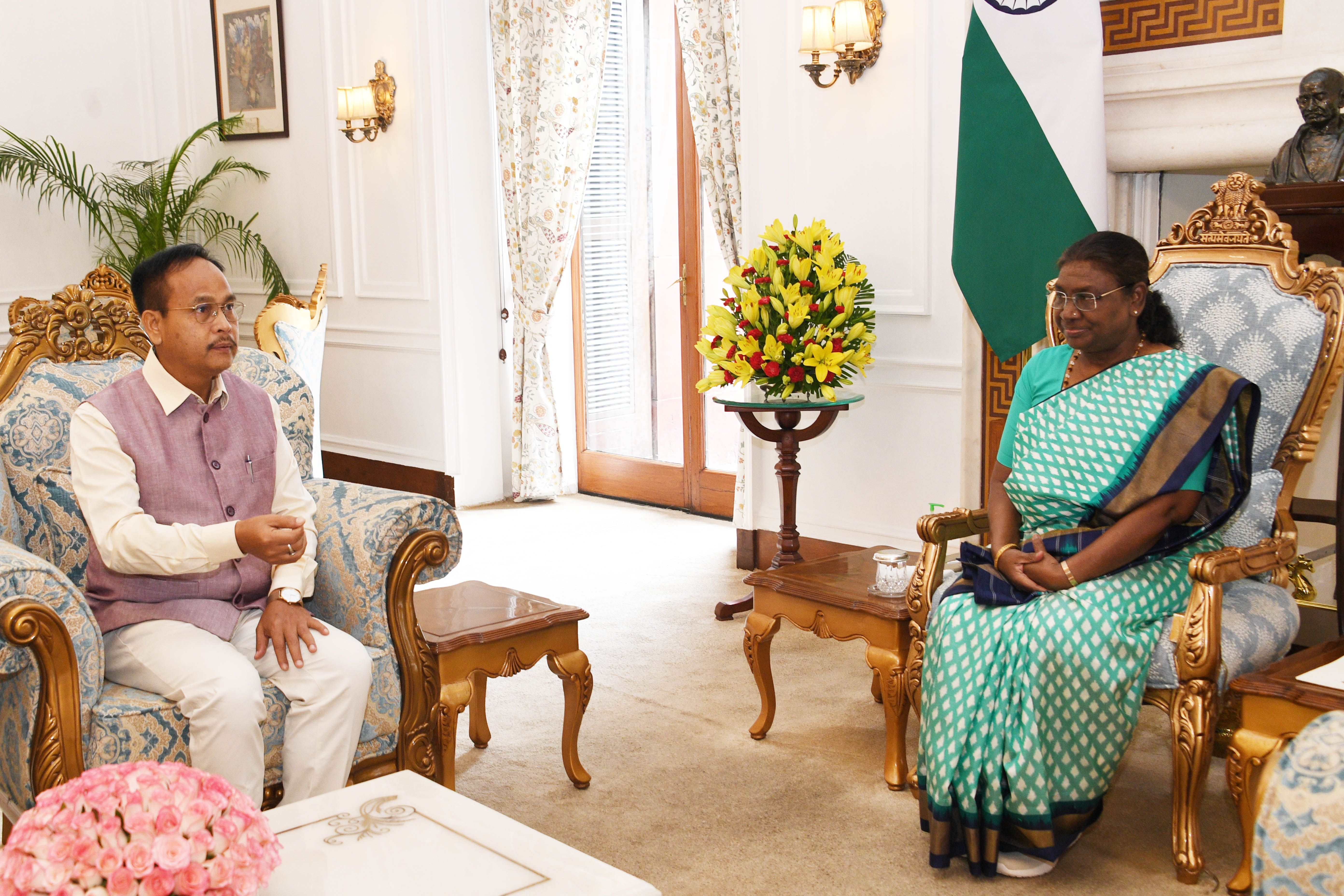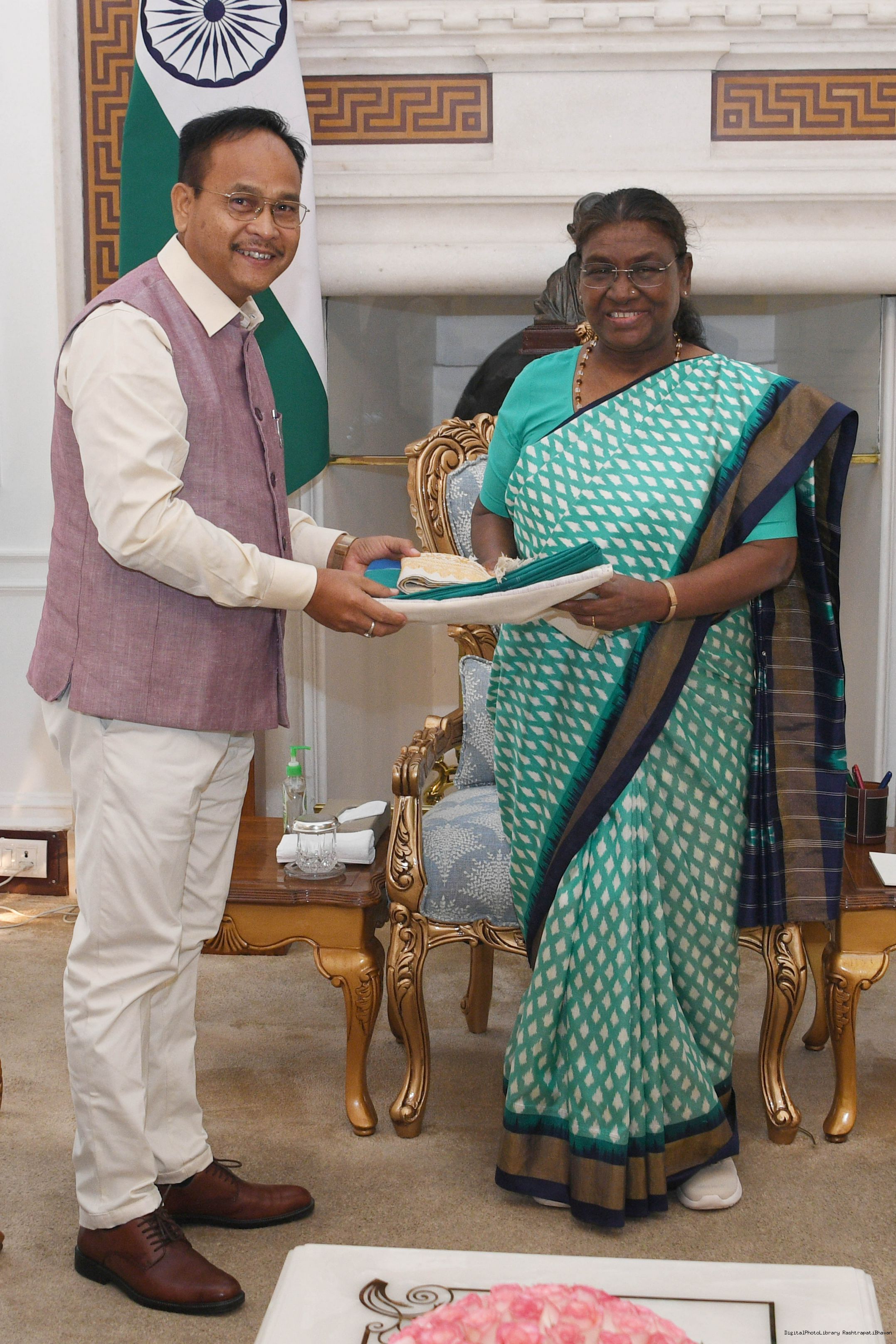 | Caption: | Shri Rwngwra Narzary, MP (Rajya Sabha) meeting with the President of India Smt. Droupadi Murmu at Rashtrapati Bhavan on July 18, 2024. |