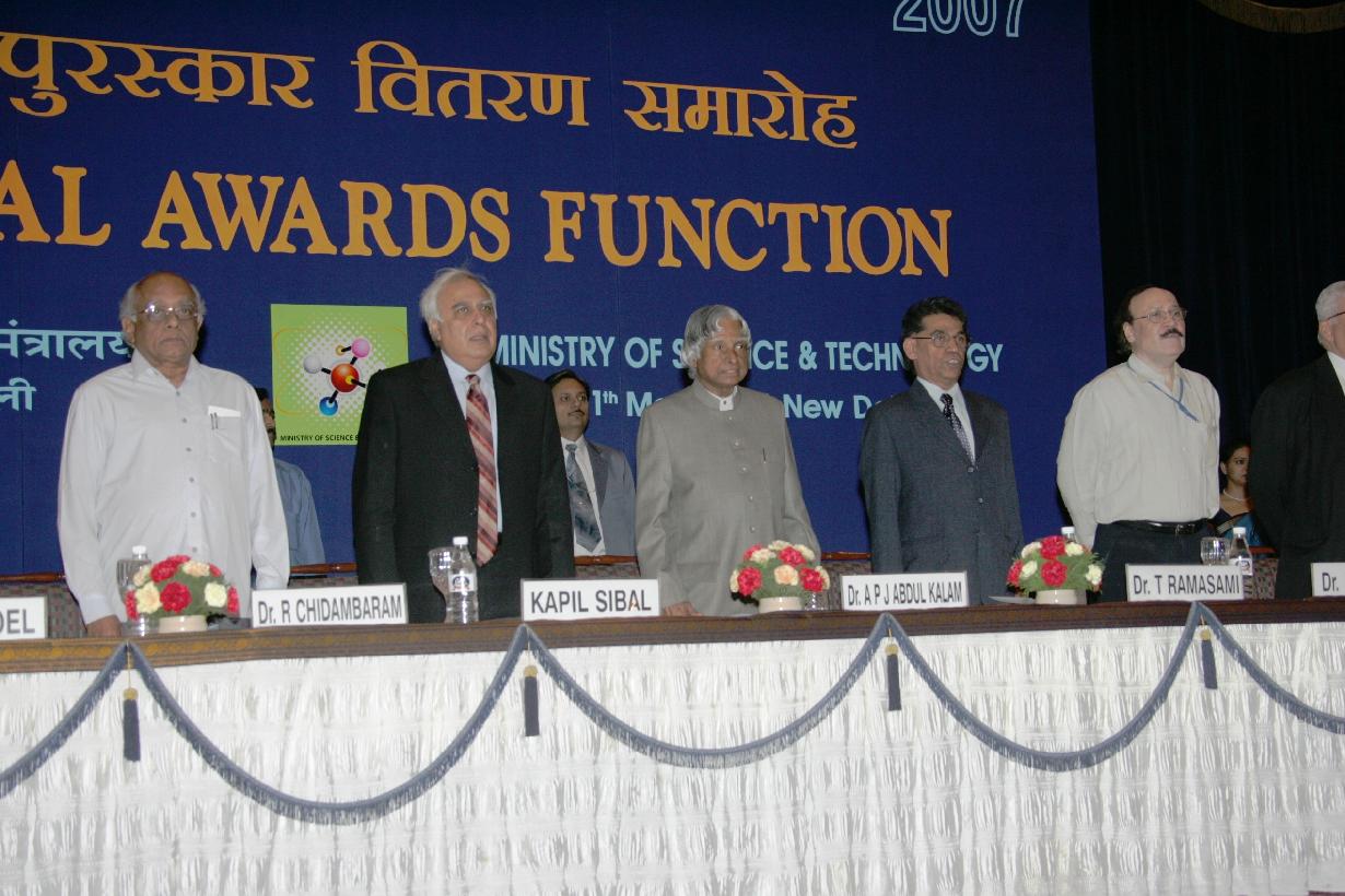| Caption: | The President of India, Dr A P J Abdul Kalam presenting the National Technology Day Awards at a Function at the Hotel Ashok, Chanakyapuri in New Delhi on May 11, 2007 |