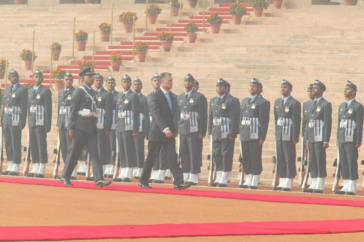 | Caption: | The President of India, Dr A P J Abdul Kalam at the Ceremonial Reception of the President of the Republic of Portugal, HE Prof Anibal Cavaco Silva and his wife Dr Maria Cavaco Silva at the Forecourt of Rashtrapati Bhavan in New Delhi on Jan 11, 2007 |
