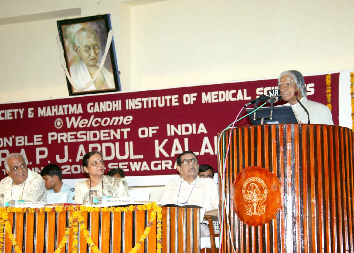 | Caption: | The President of India, Dr A P J Abdul Kalam at the Mahatma Gandhi Institute of Medical Sciences (MGIMS) at Wardha in Maharashtra on June 15, 2007 |