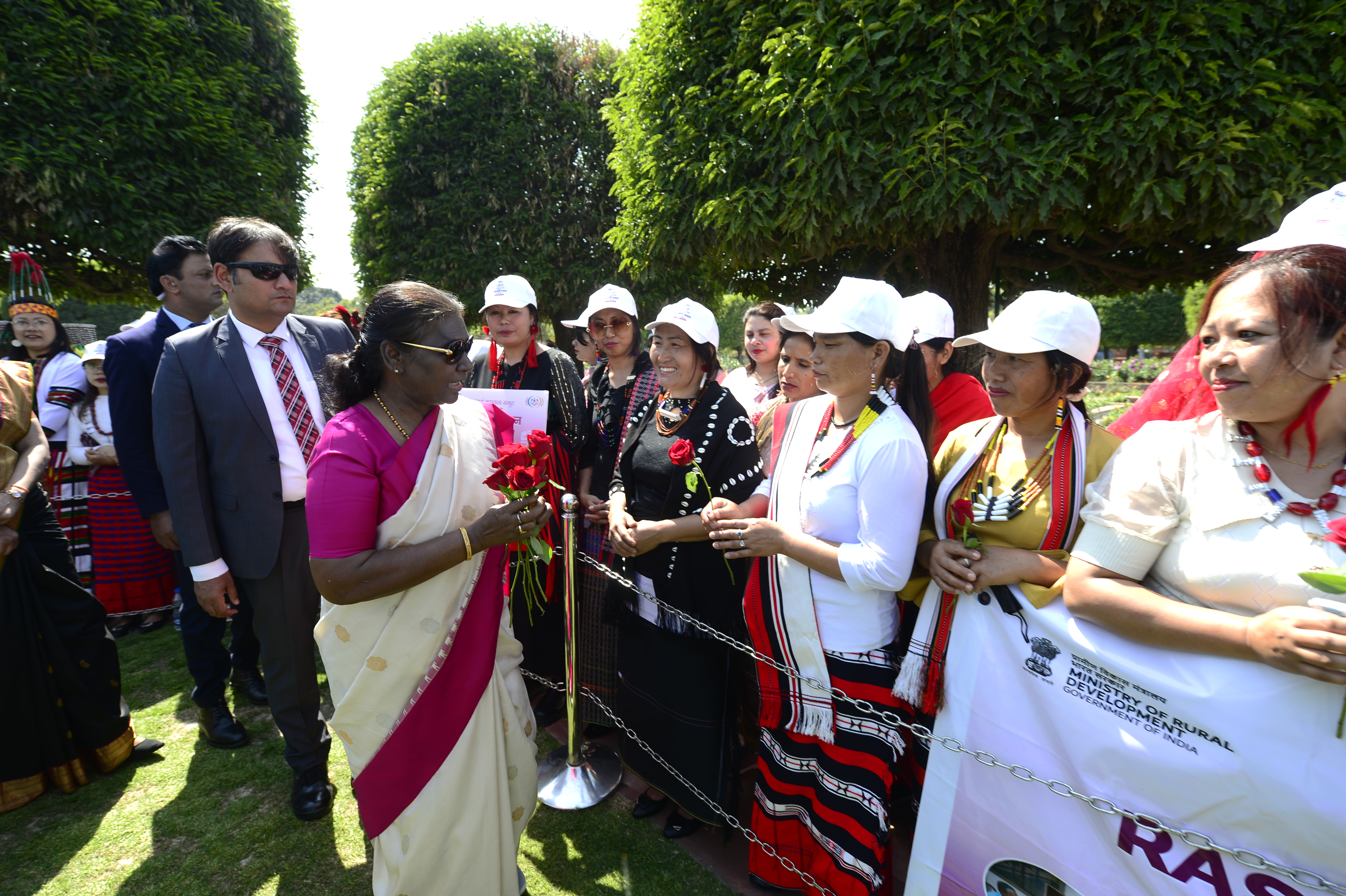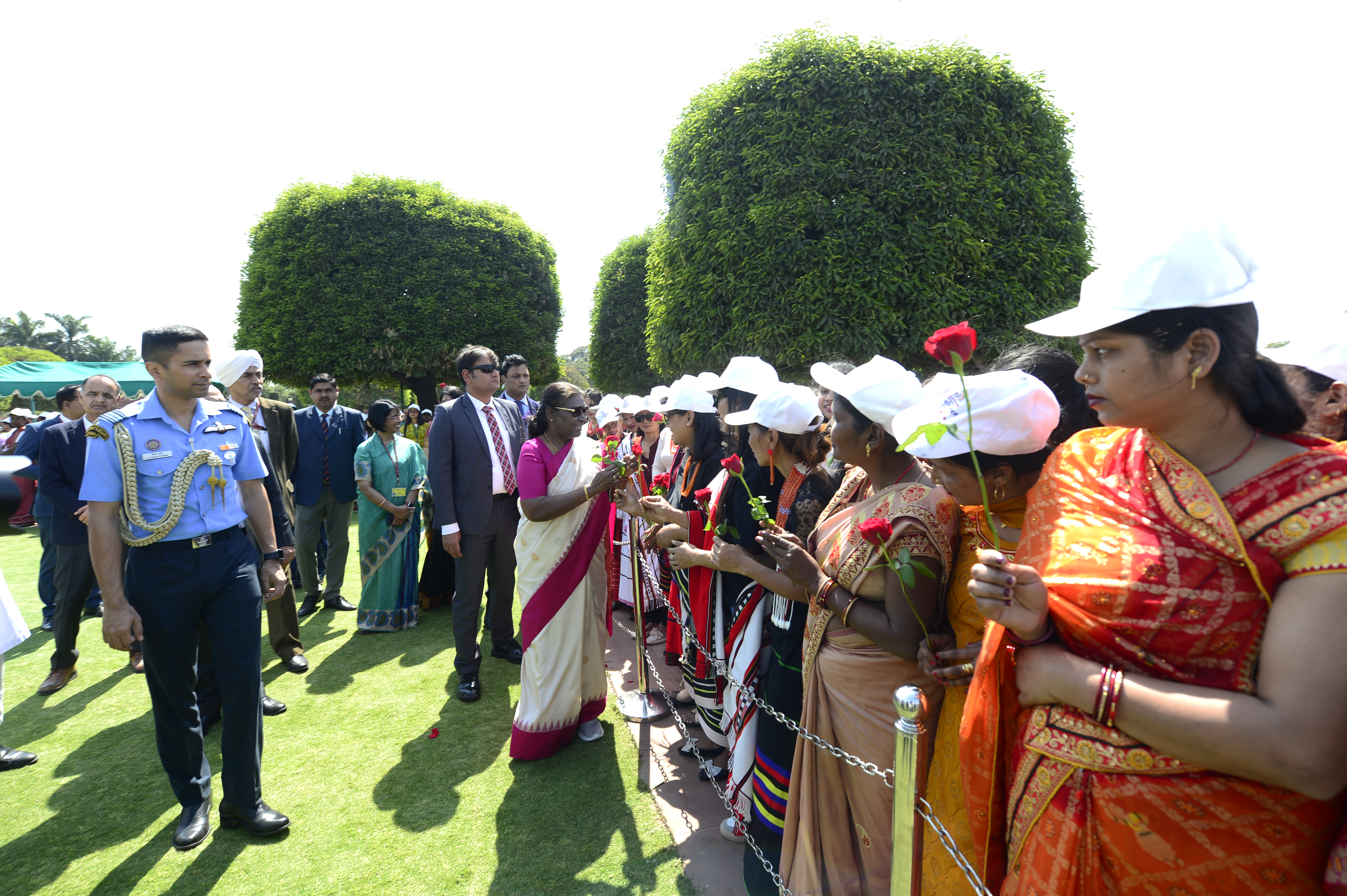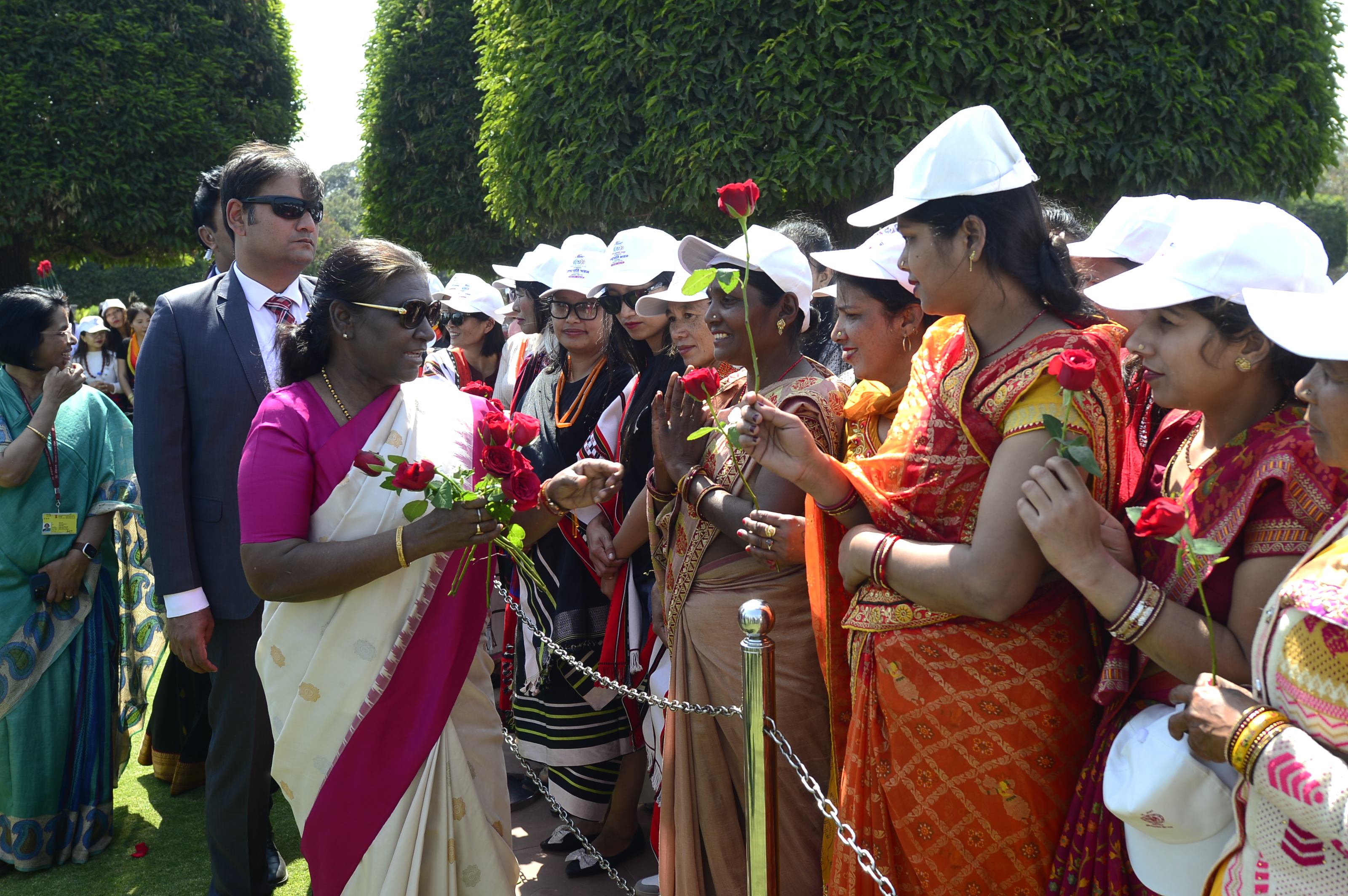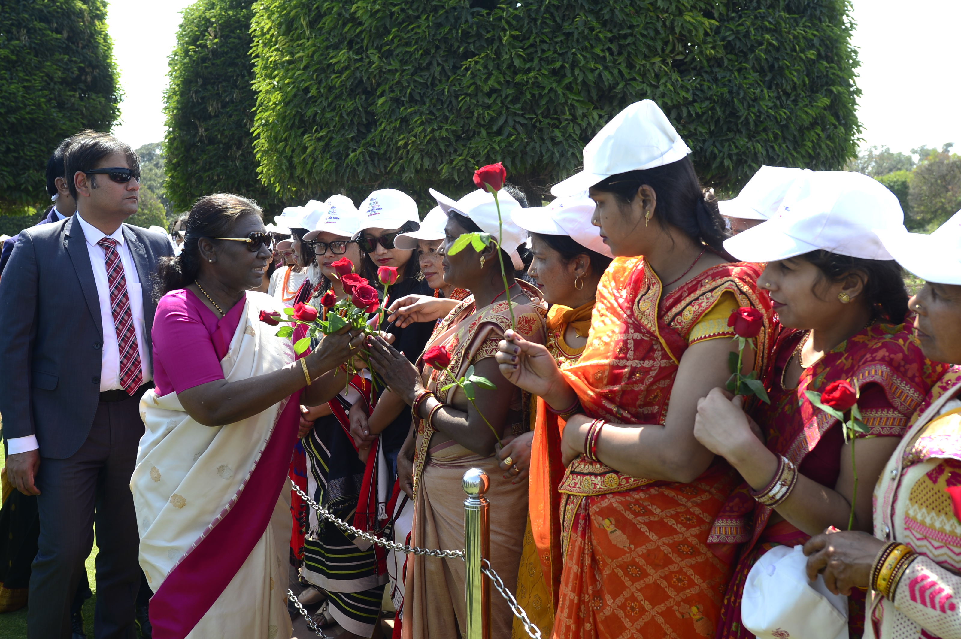 | Caption: | The President of India, Smt Droupadi Murmu met women visiting Amrit Udyan on the day reserved for the special category of Women Tribal Women SHGs-I 08-03-2024 |