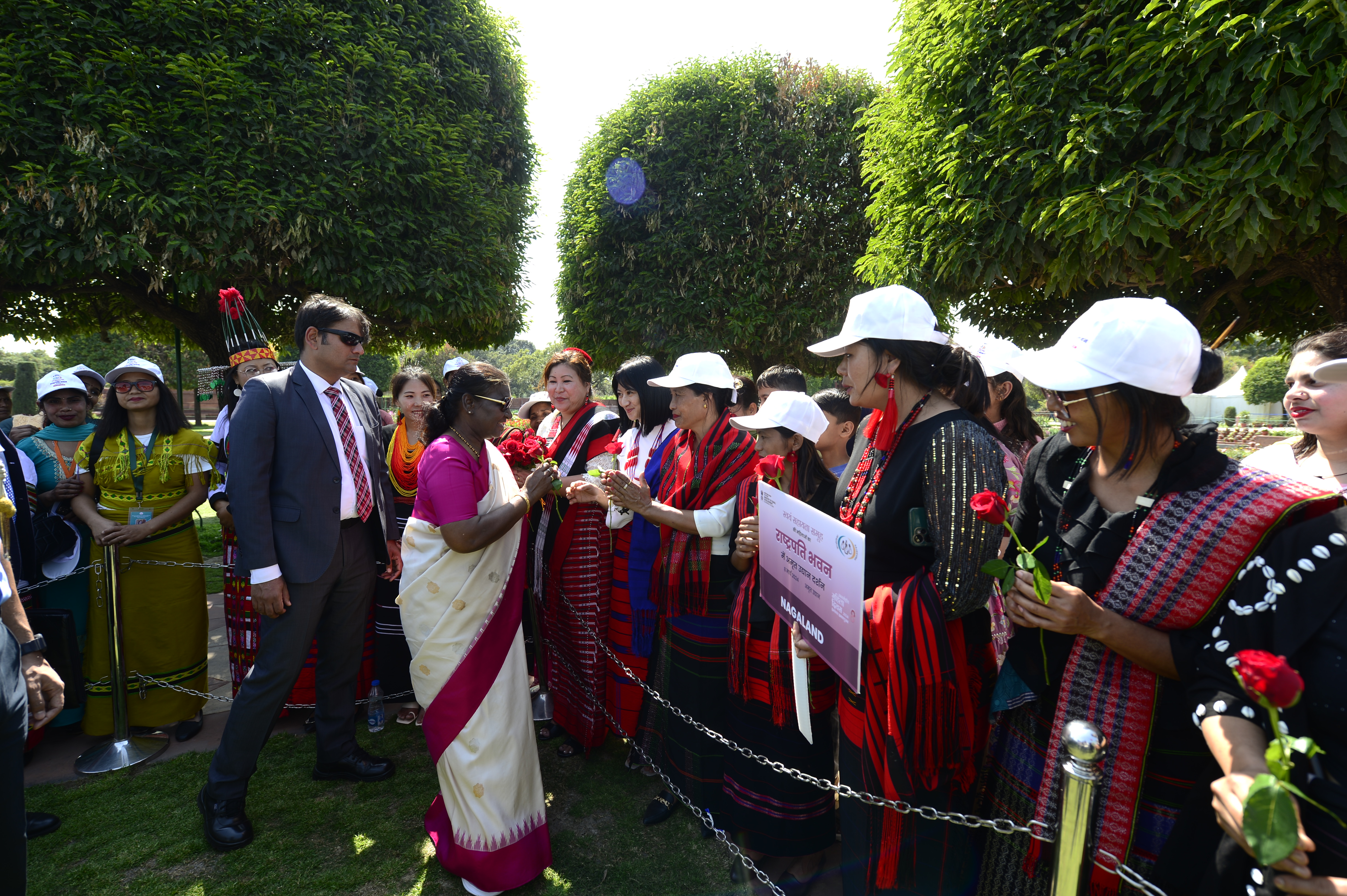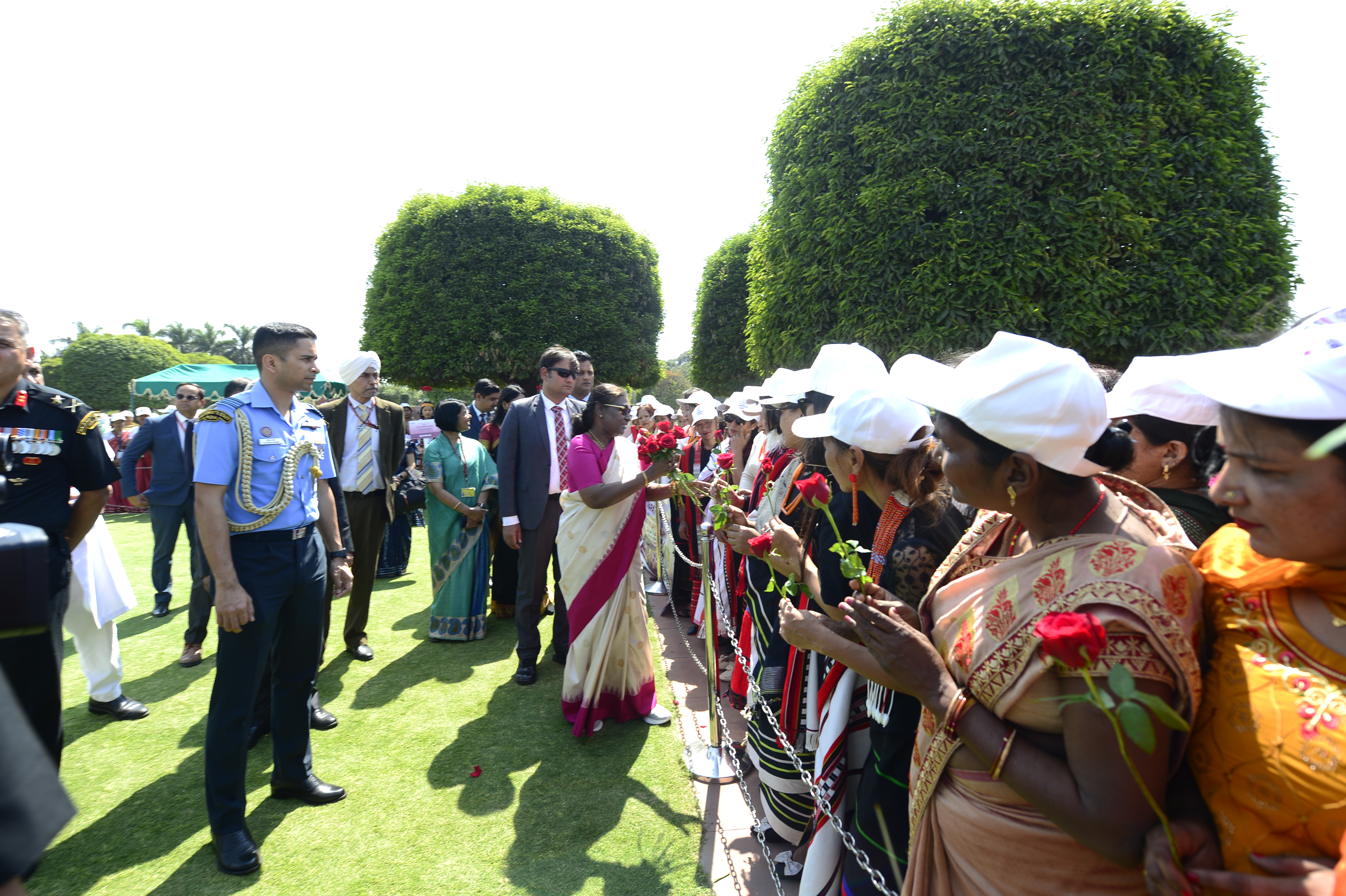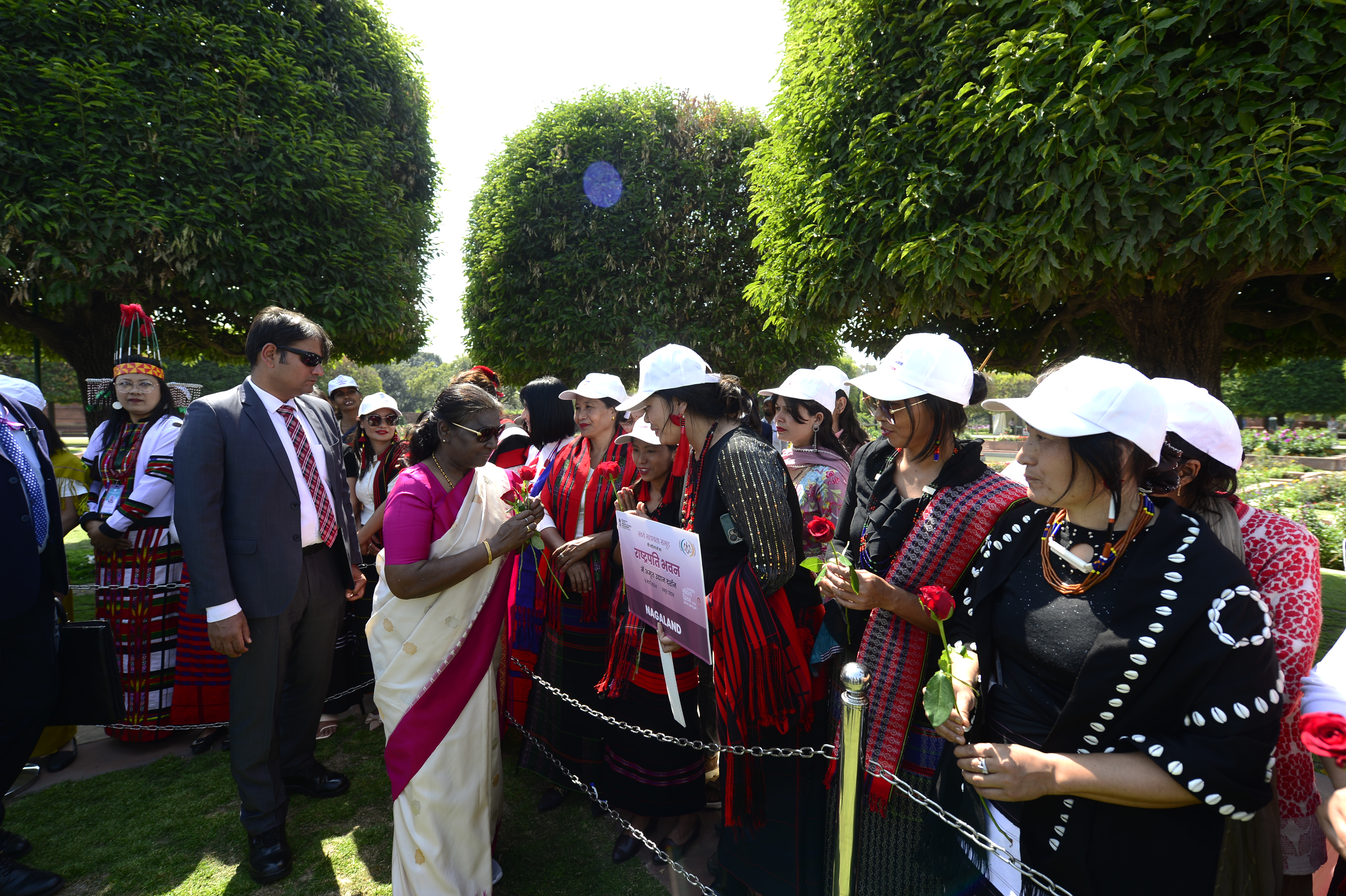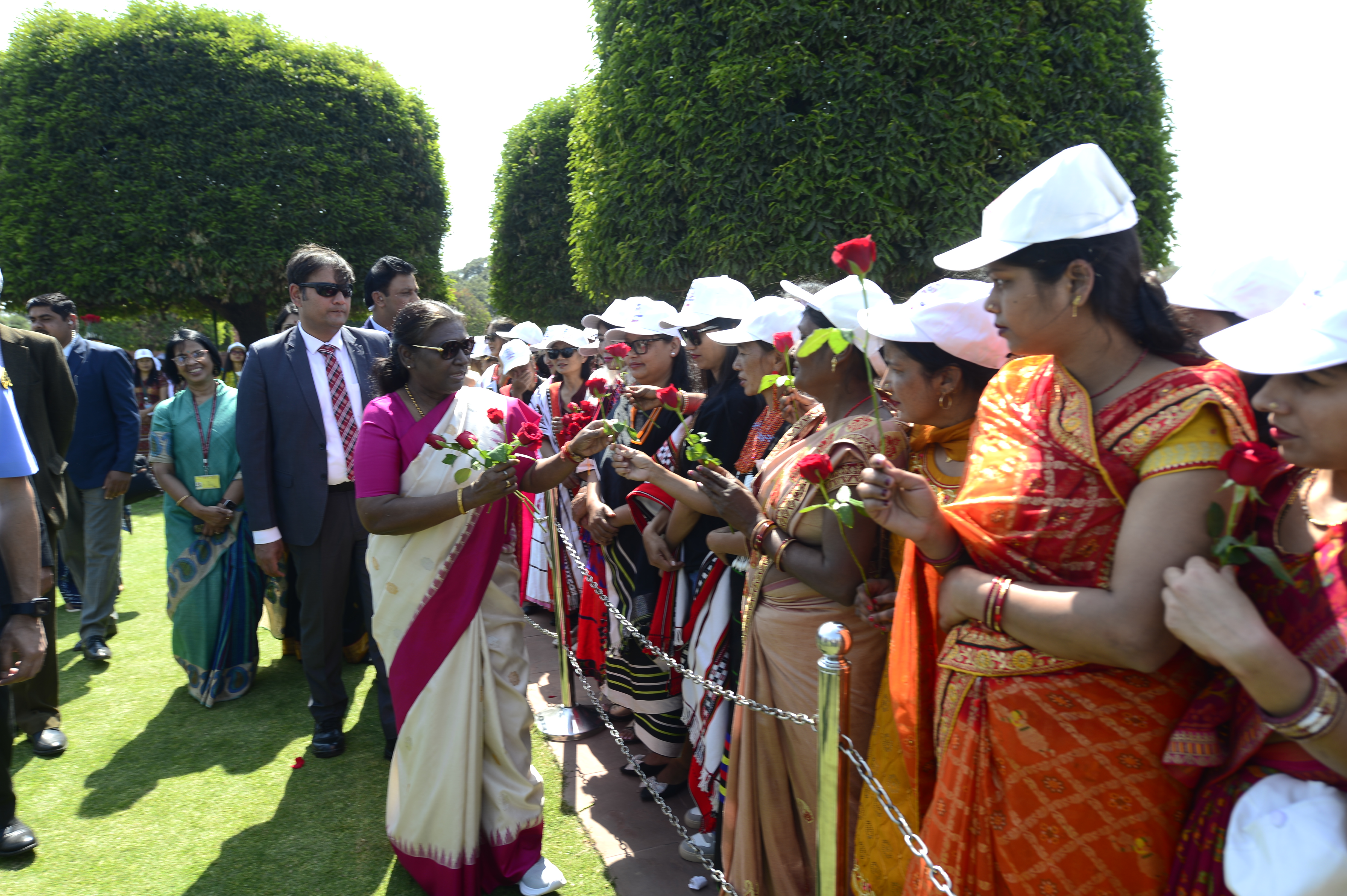 | Caption: | The President of India, Smt Droupadi Murmu met women visiting Amrit Udyan on the day reserved for the special category of Women Tribal Women SHGs-I 08-03-2024 |