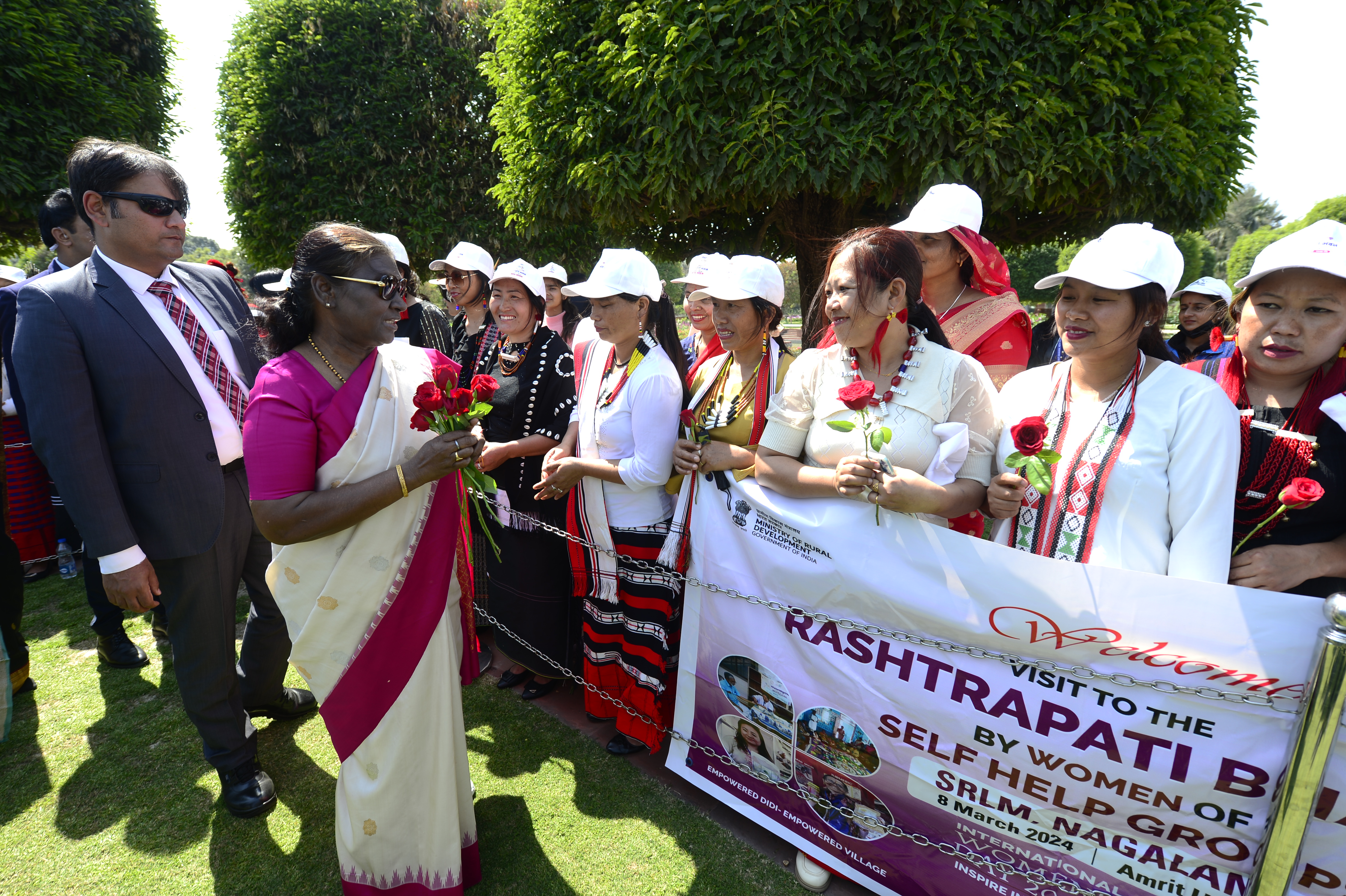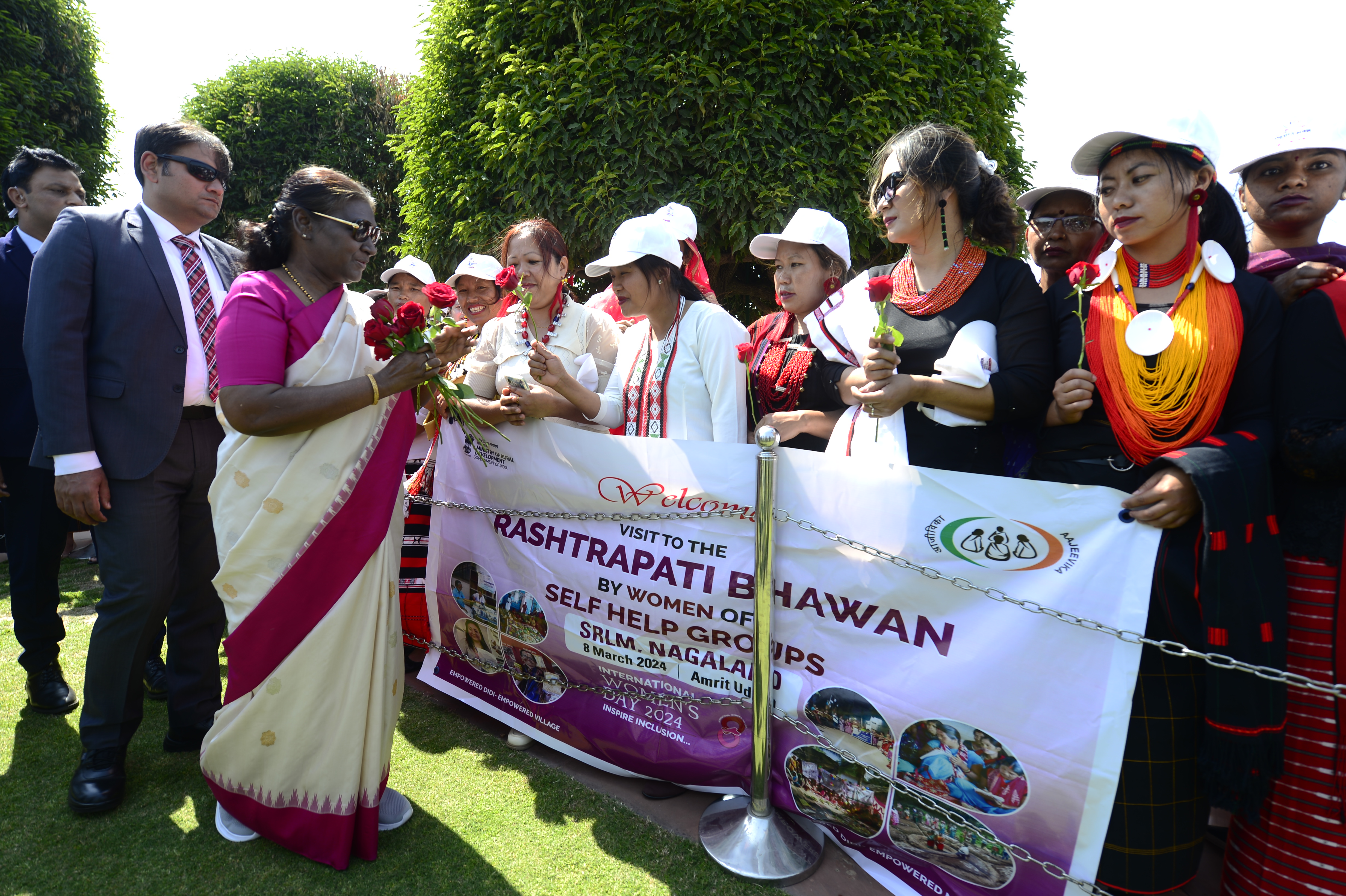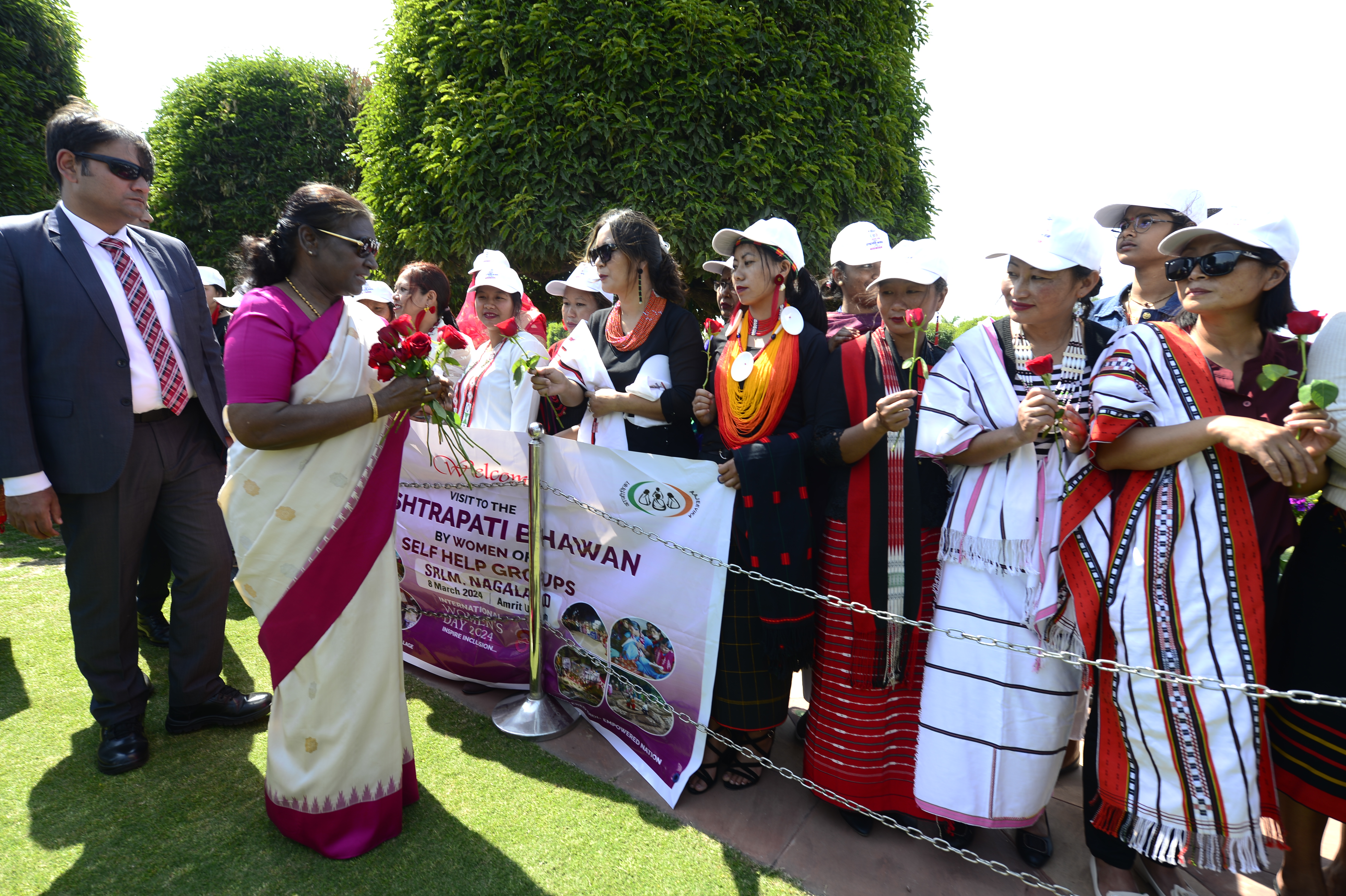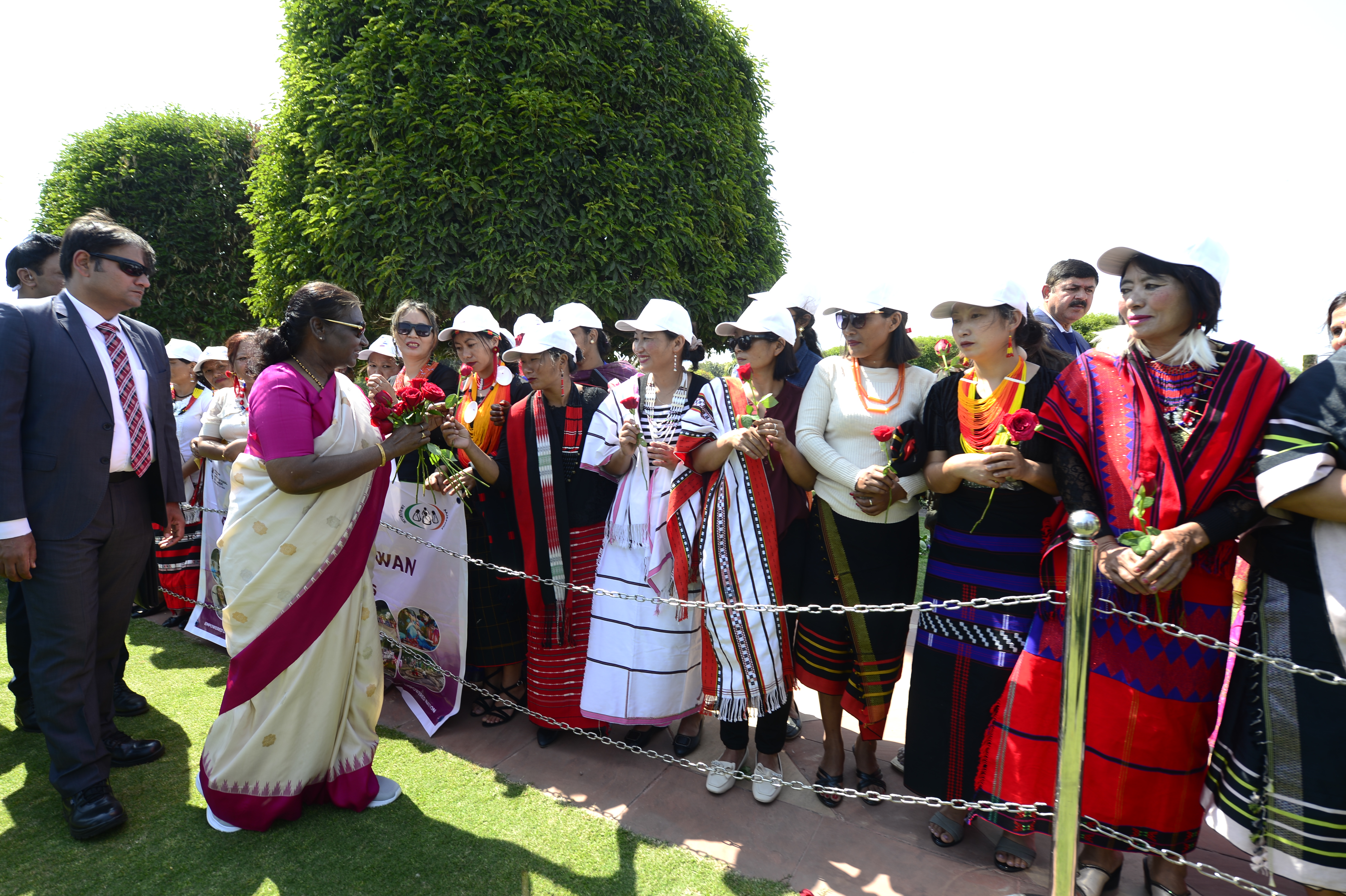 | Caption: | The President of India, Smt Droupadi Murmu met women visiting Amrit Udyan on the day reserved for the special category of Women Tribal Women SHGs-I 08-03-2024 |
