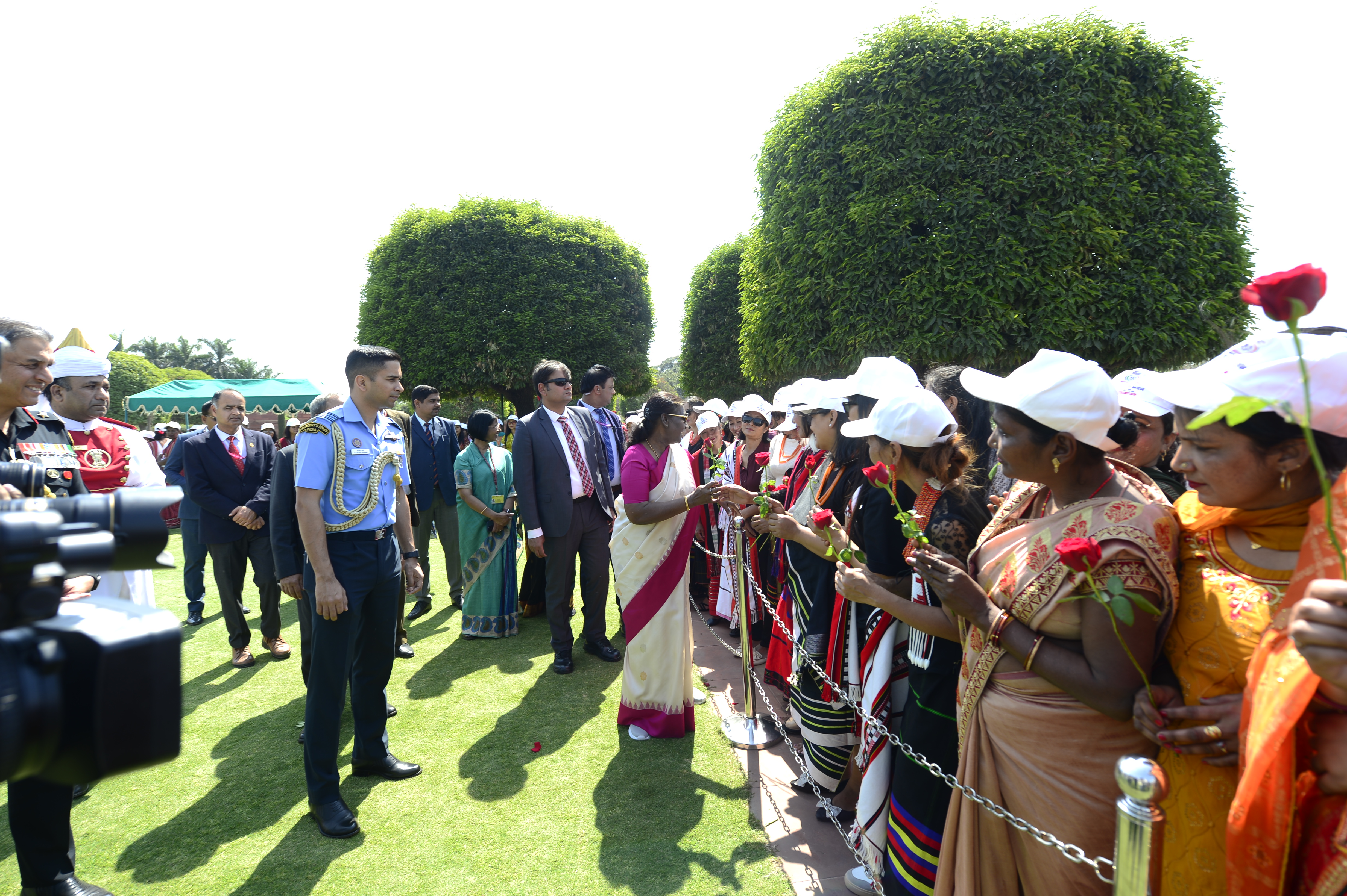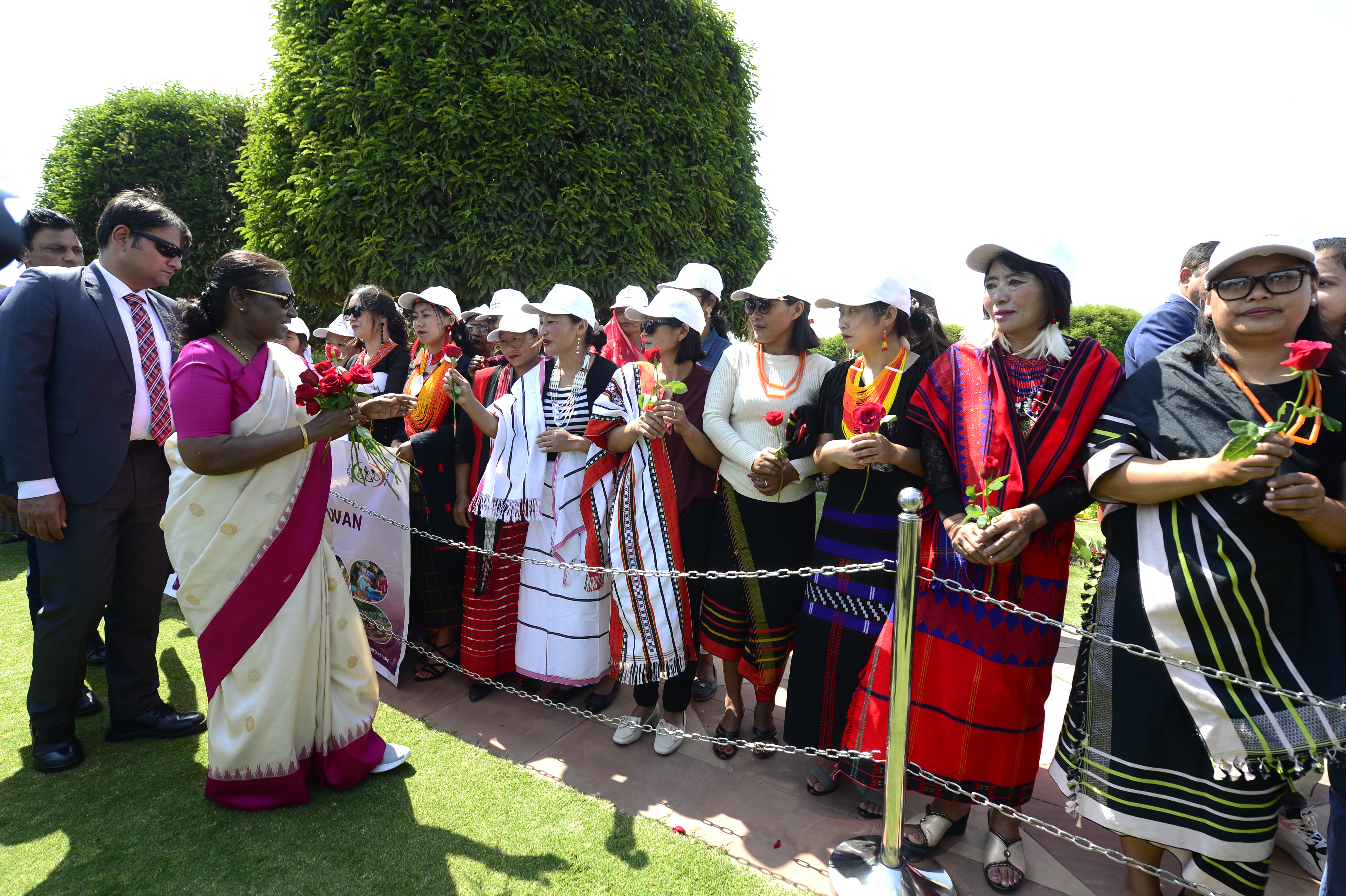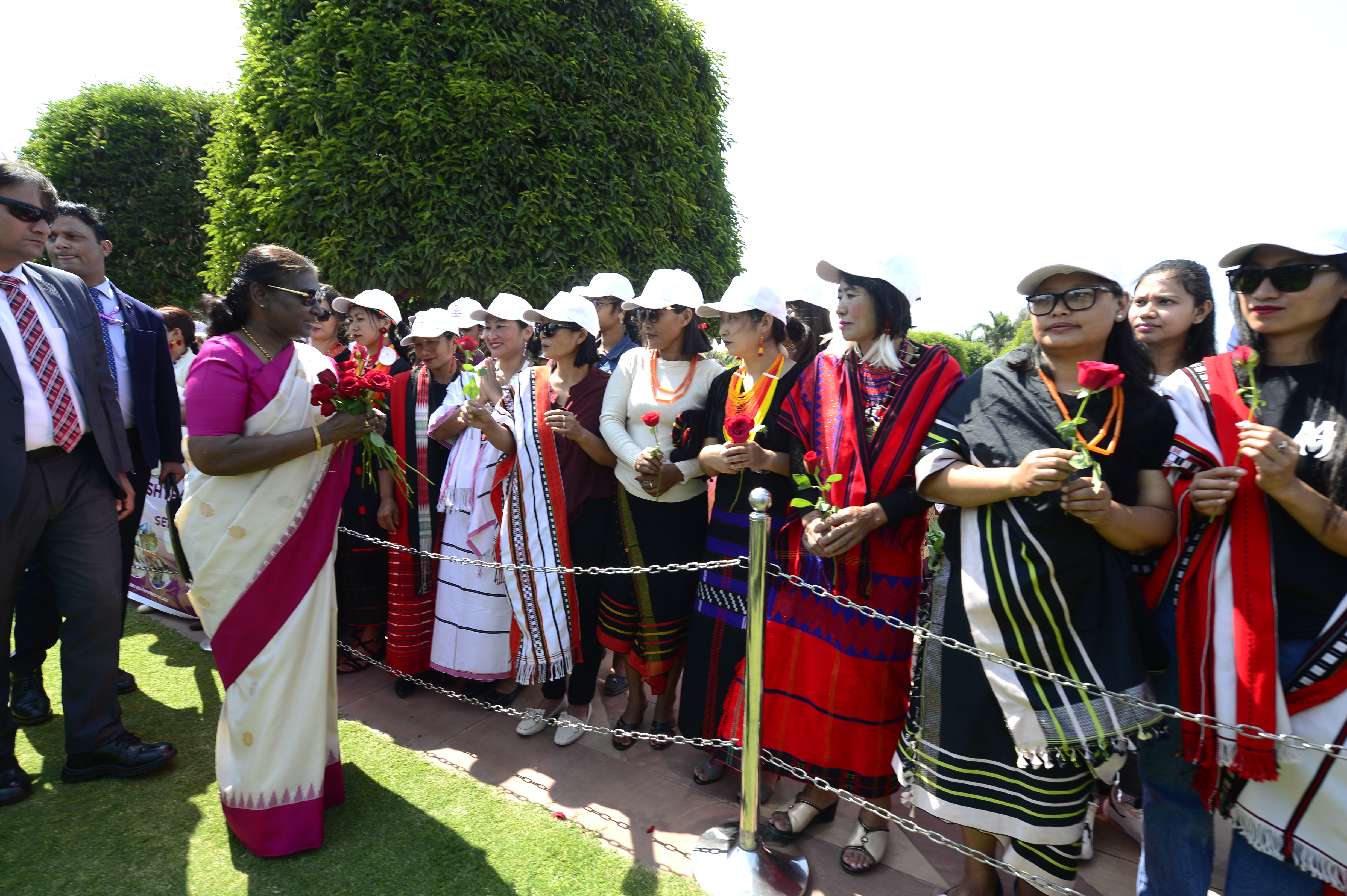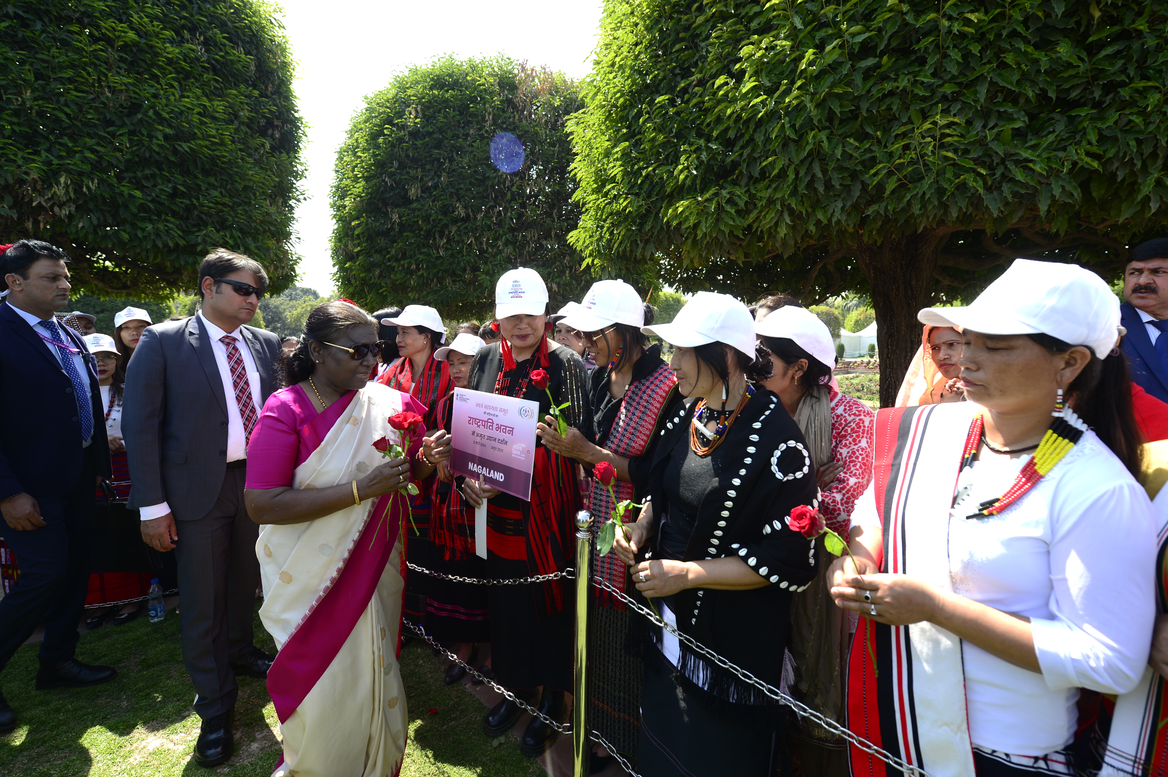 | Caption: | The President of India, Smt Droupadi Murmu met women visiting Amrit Udyan on the day reserved for the special category of Women Tribal Women SHGs-I 08-03-2024 |