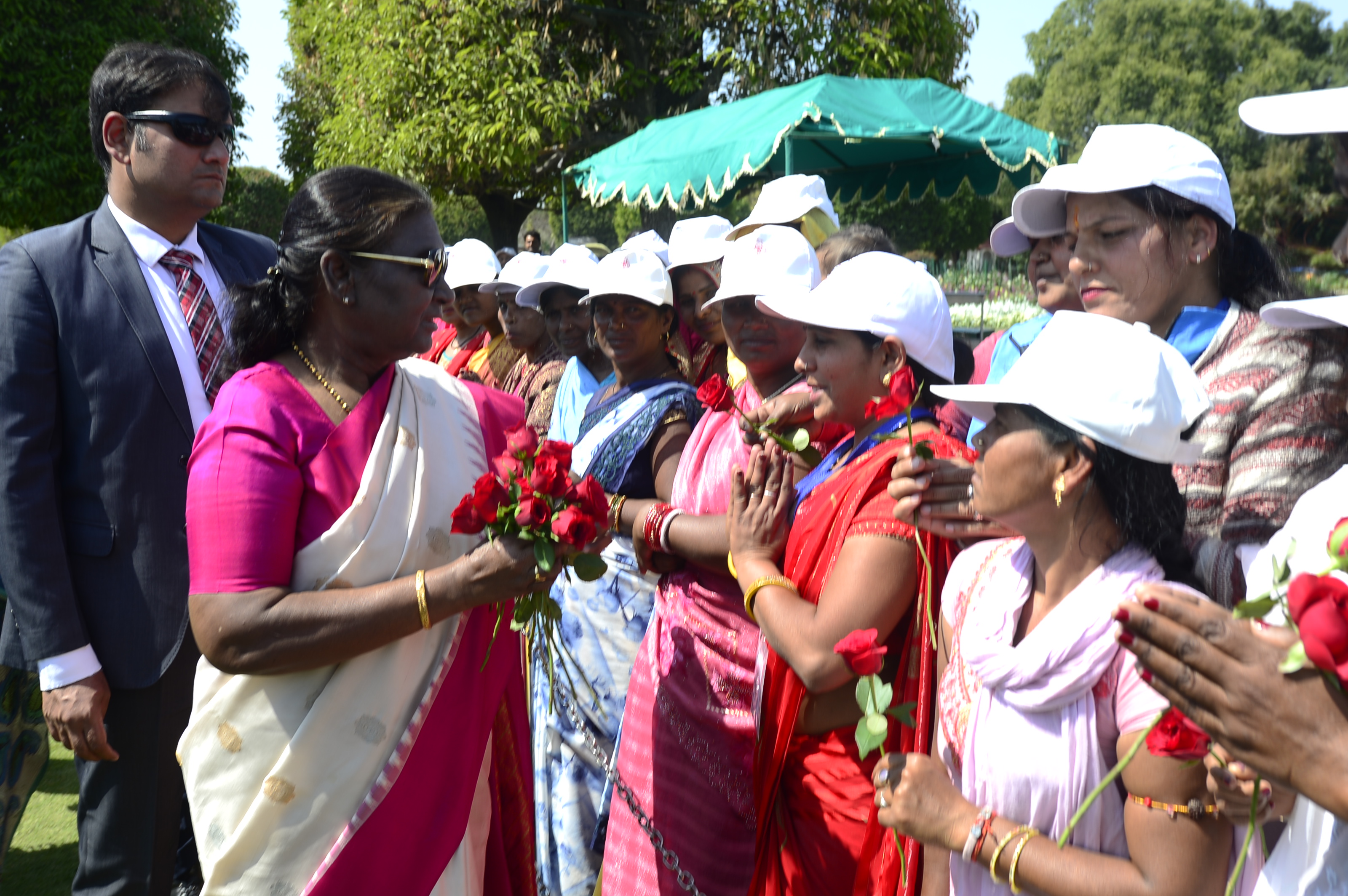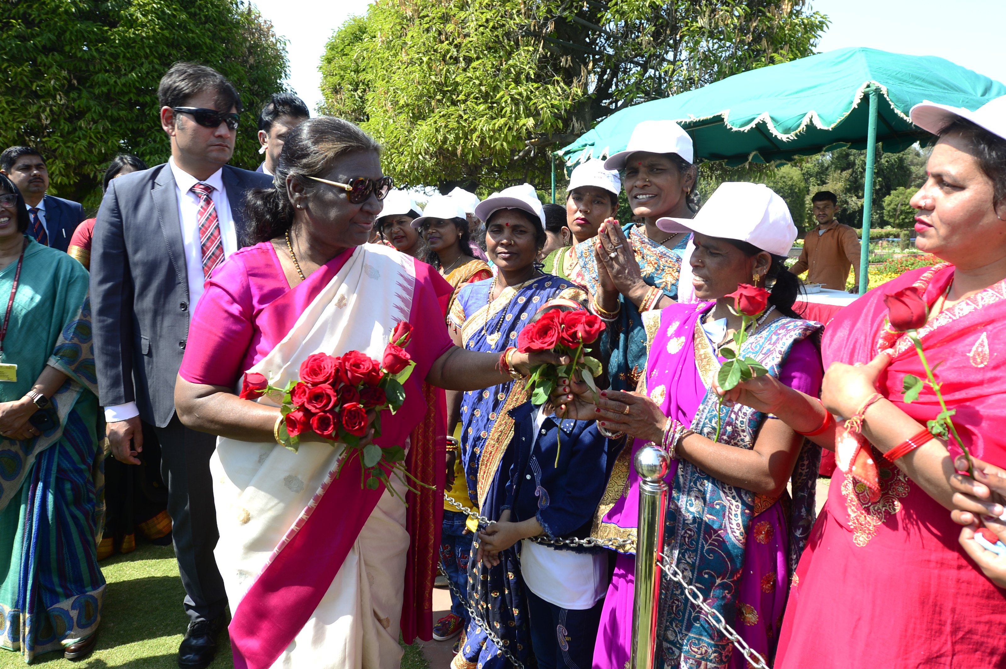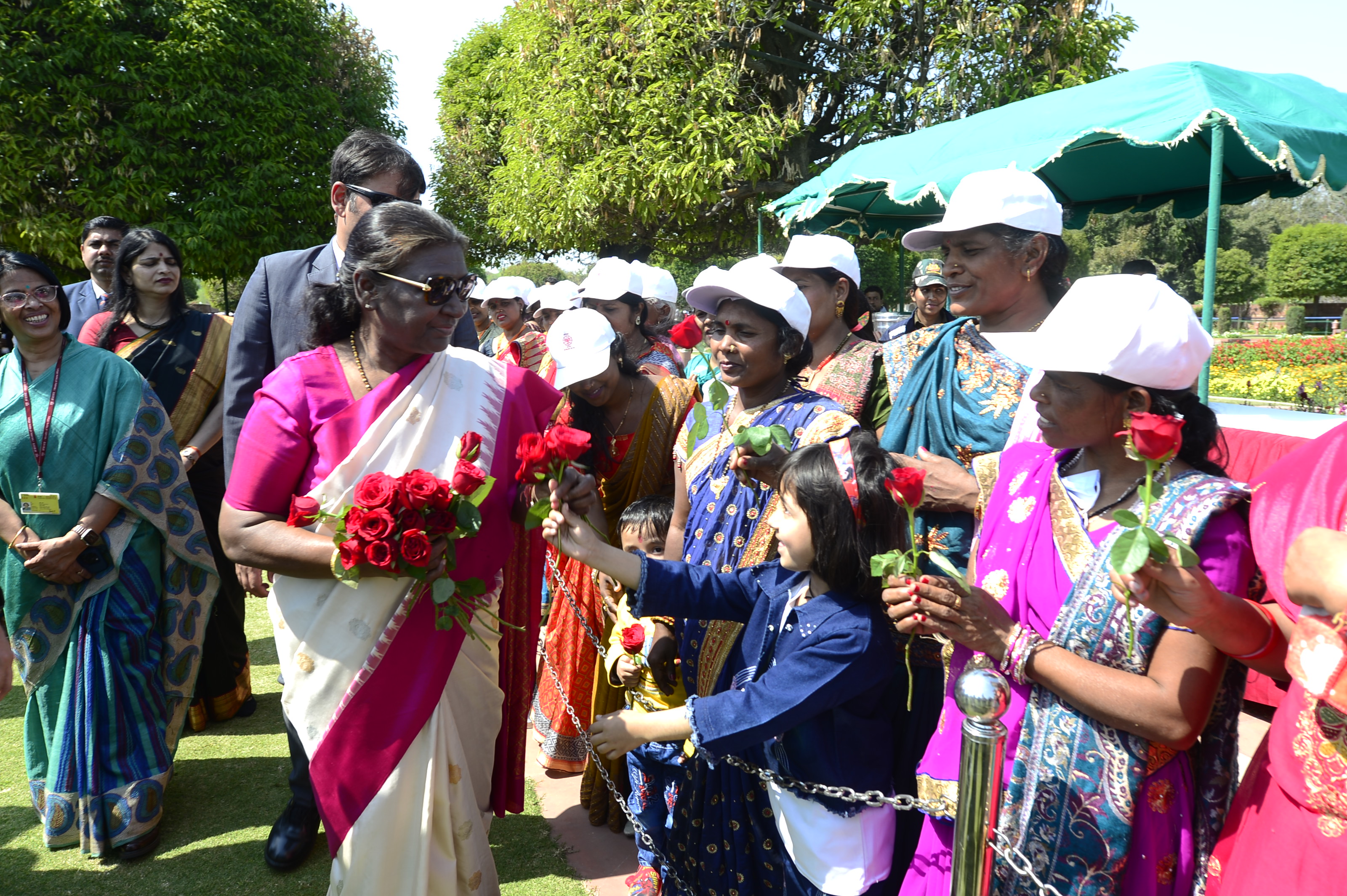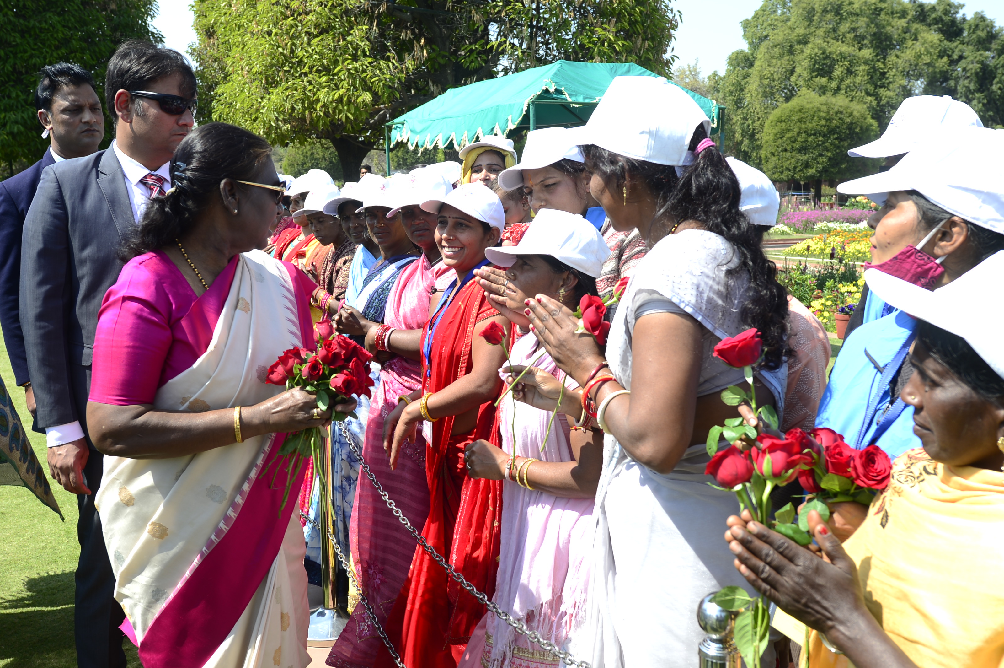 | Caption: | The President of India, Smt Droupadi Murmu met women visiting Amrit Udyan on the day reserved for the special category of Women Tribal Women SHGs-I 08-03-2024 |