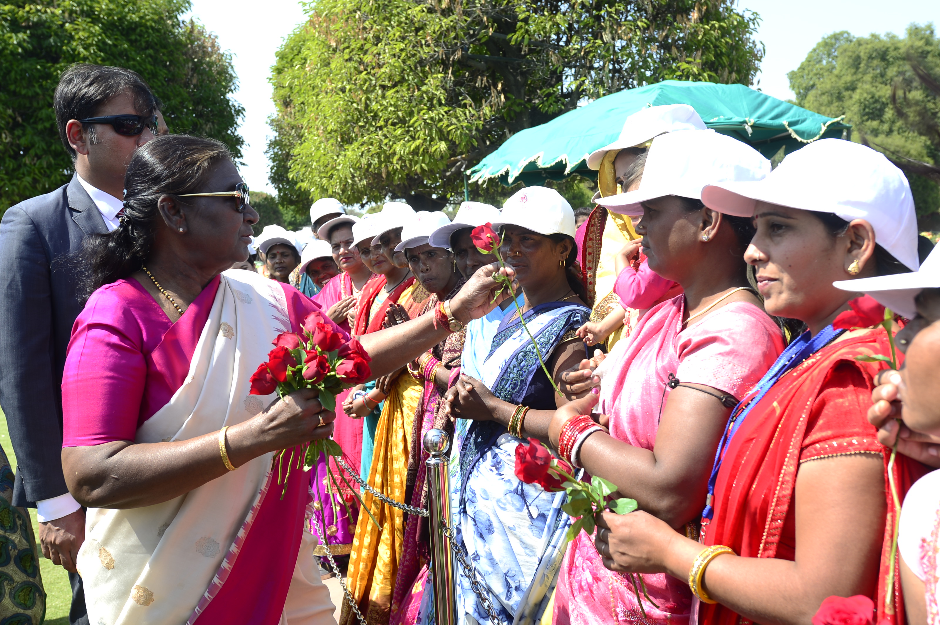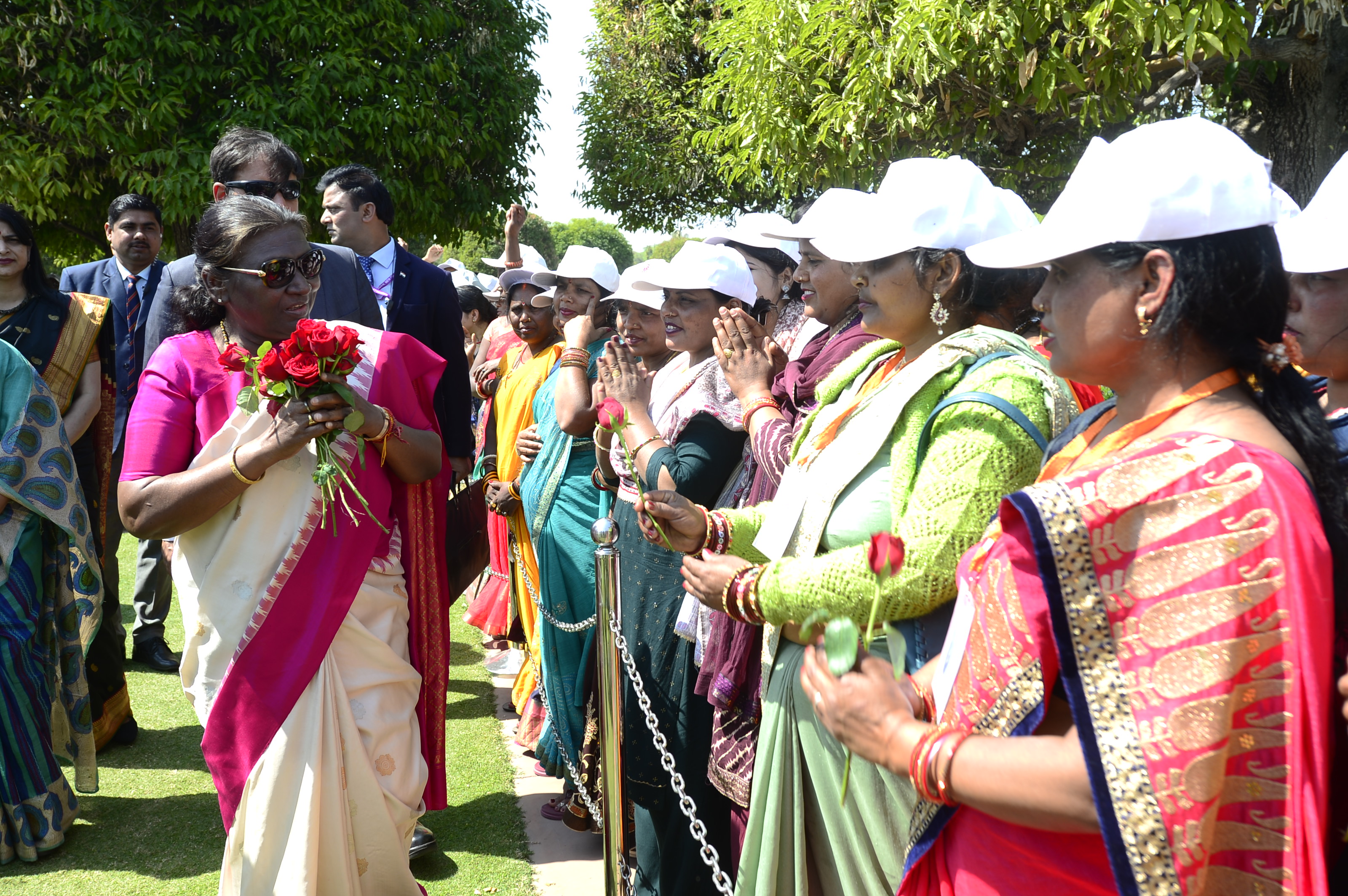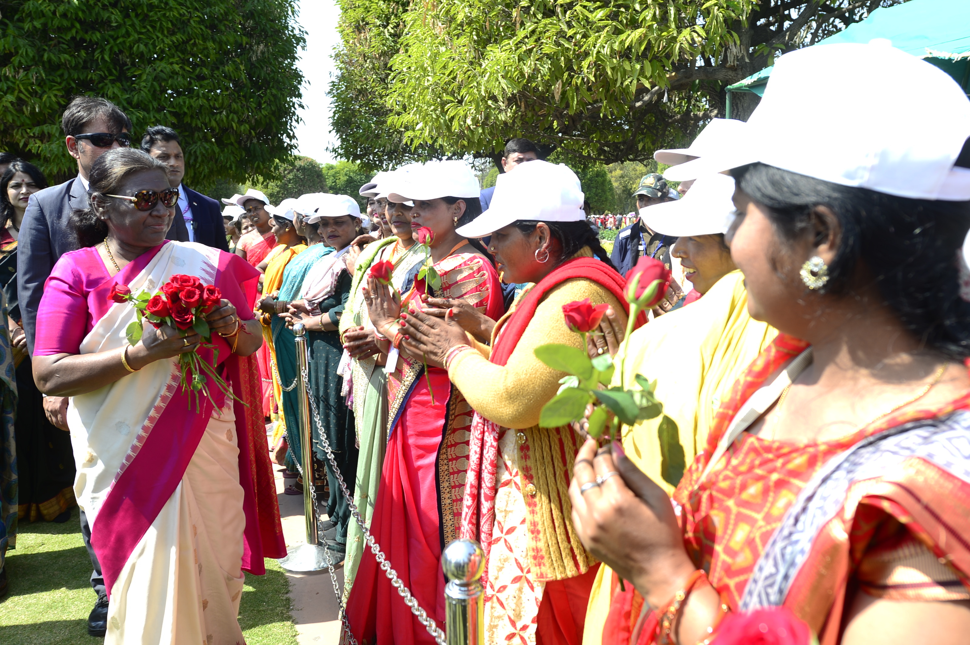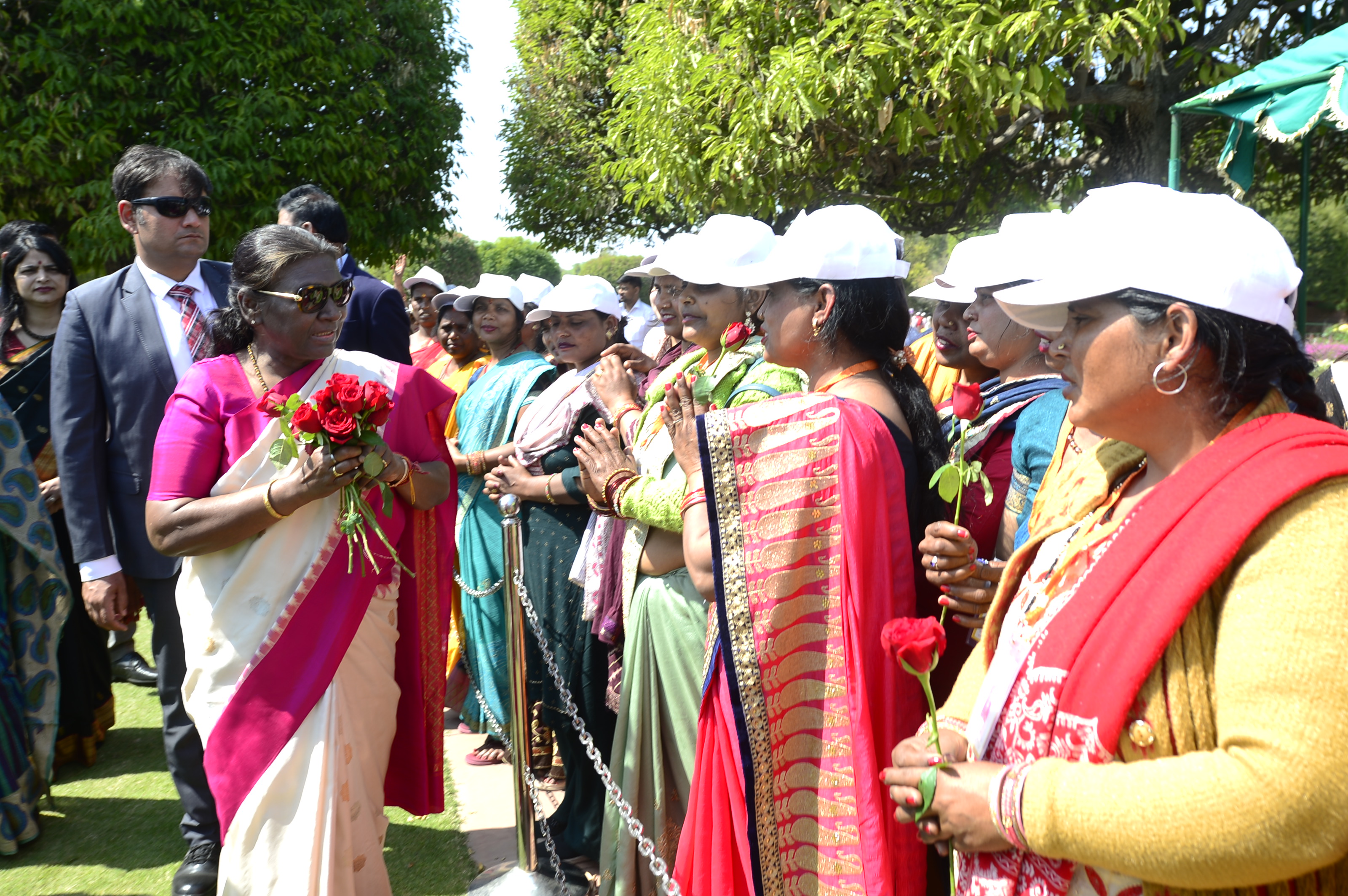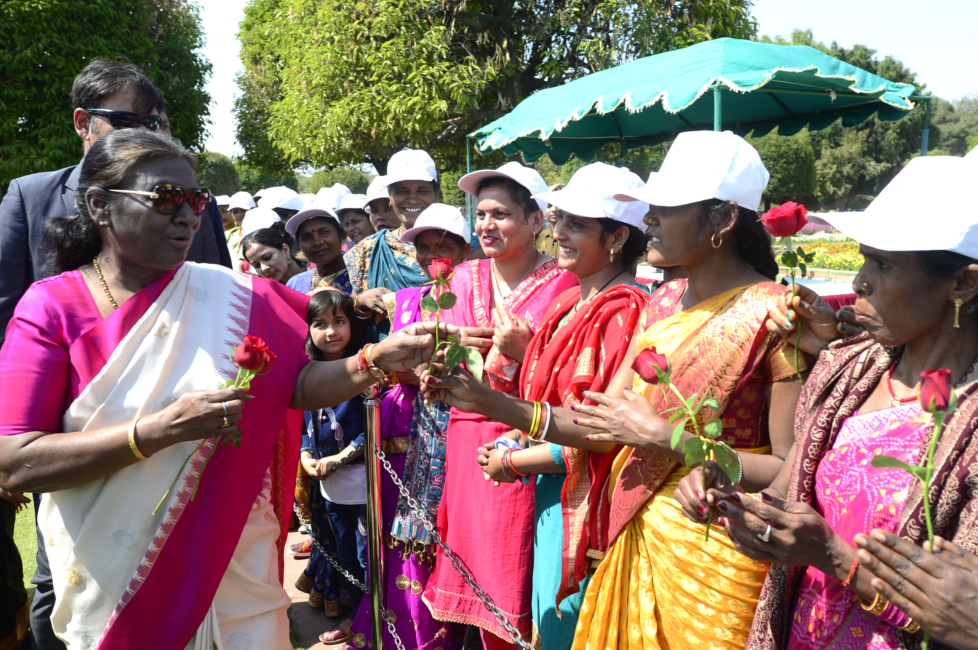 | Caption: | The President of India, Smt Droupadi Murmu met women visiting Amrit Udyan on the day reserved for the special category of Women Tribal Women SHGs-I 08-03-2024 |