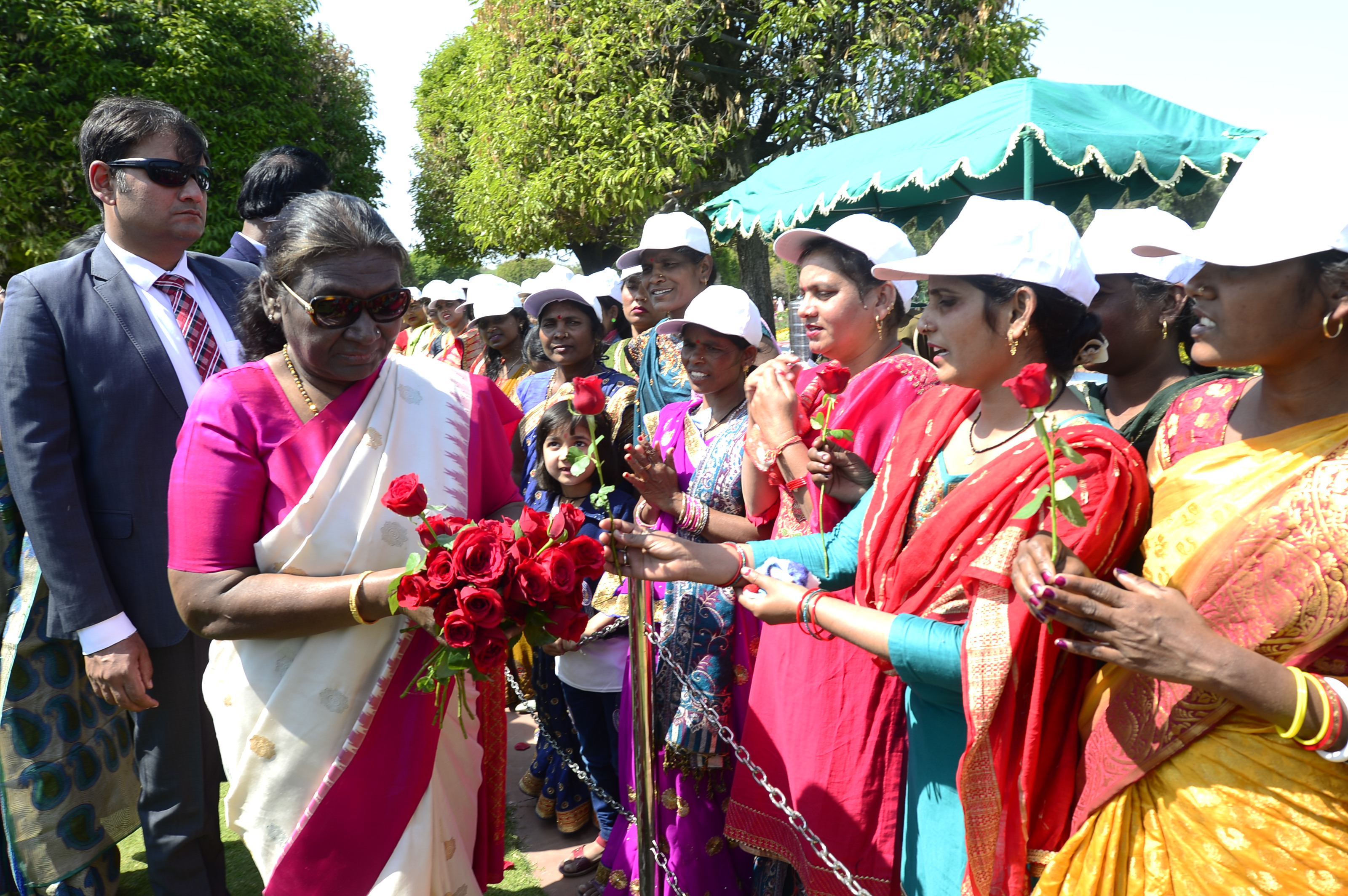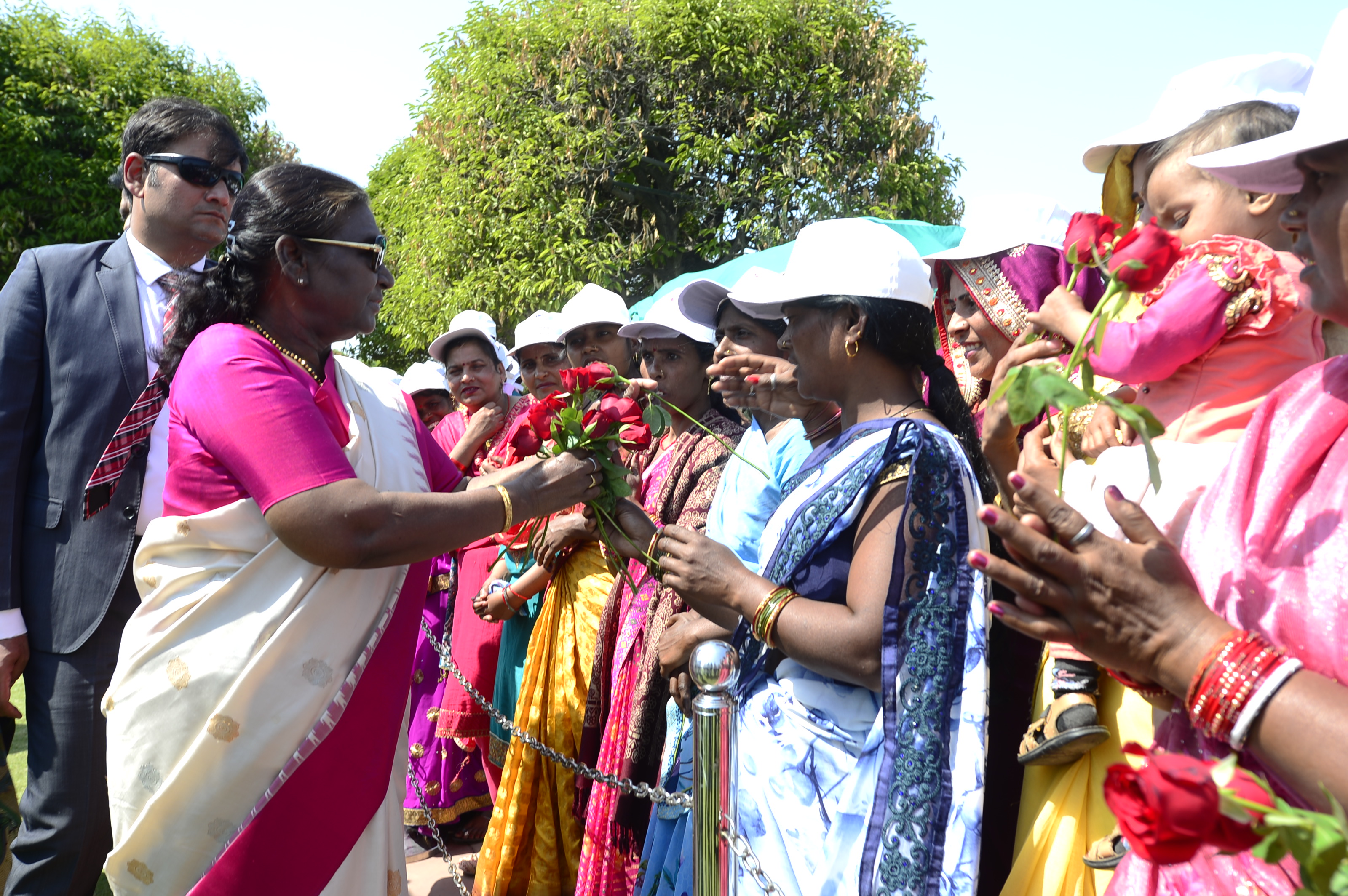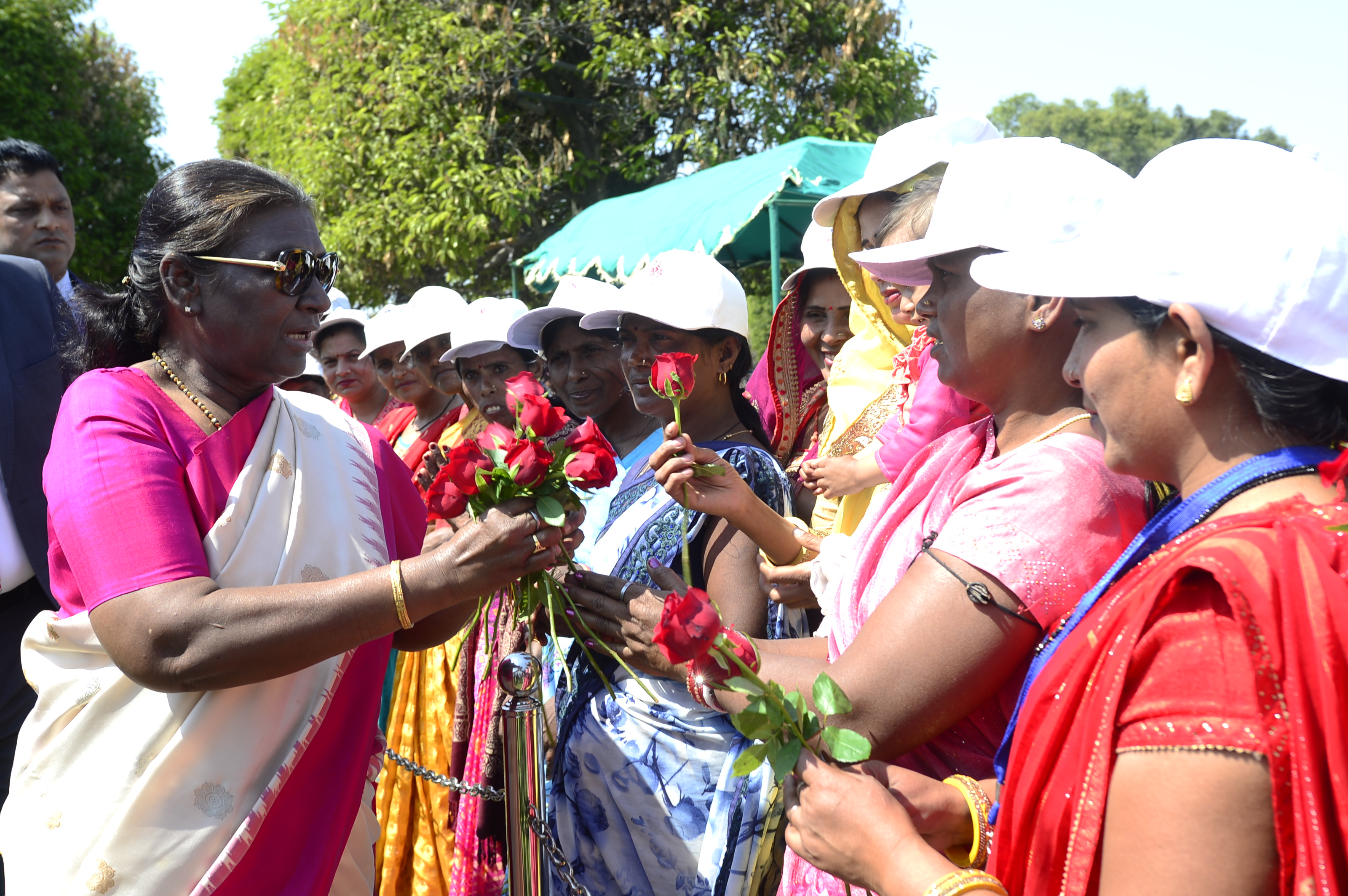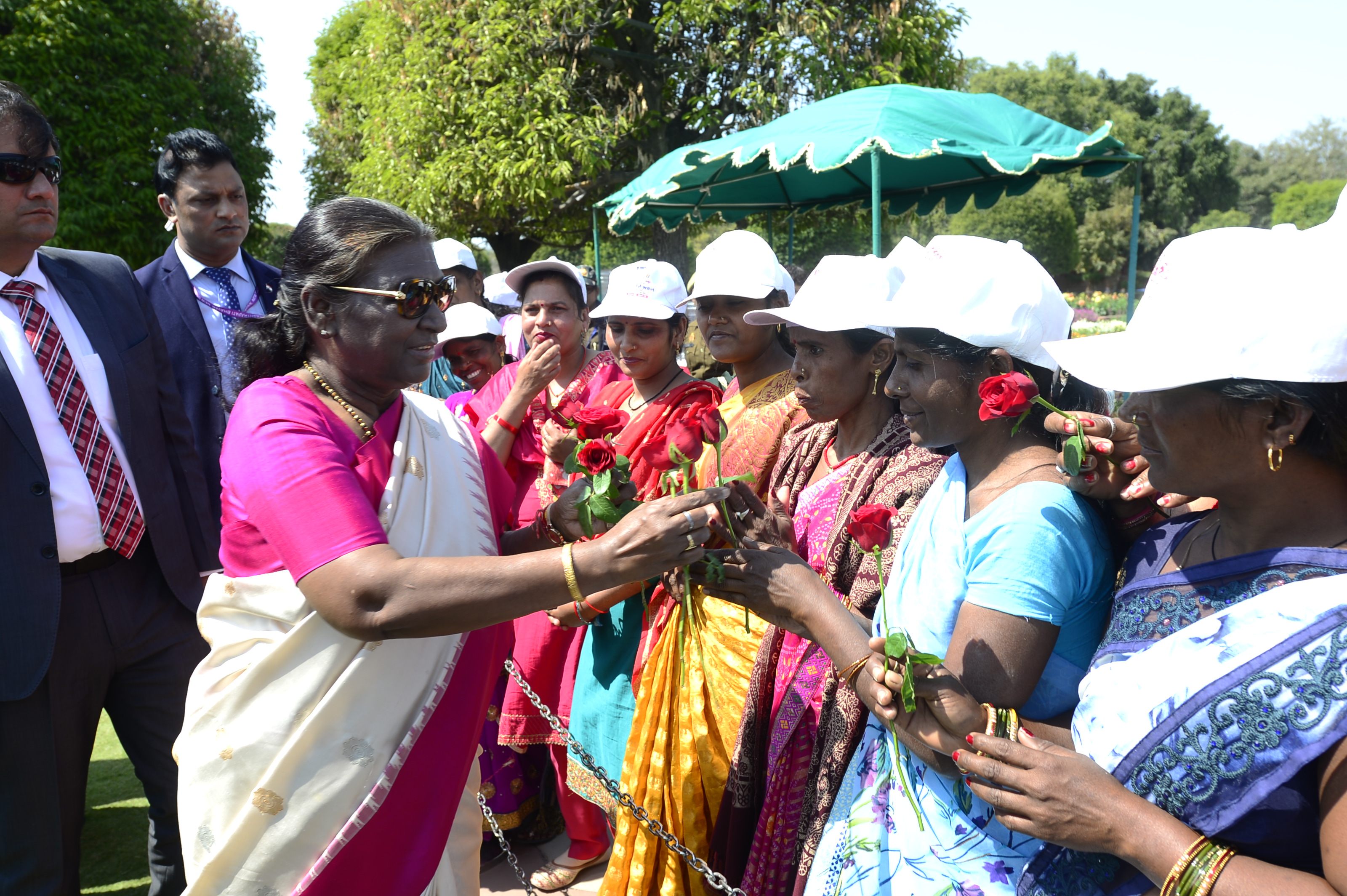 | Caption: | The President of India, Smt Droupadi Murmu met women visiting Amrit Udyan on the day reserved for the special category of Women Tribal Women SHGs-I 08-03-2024 |