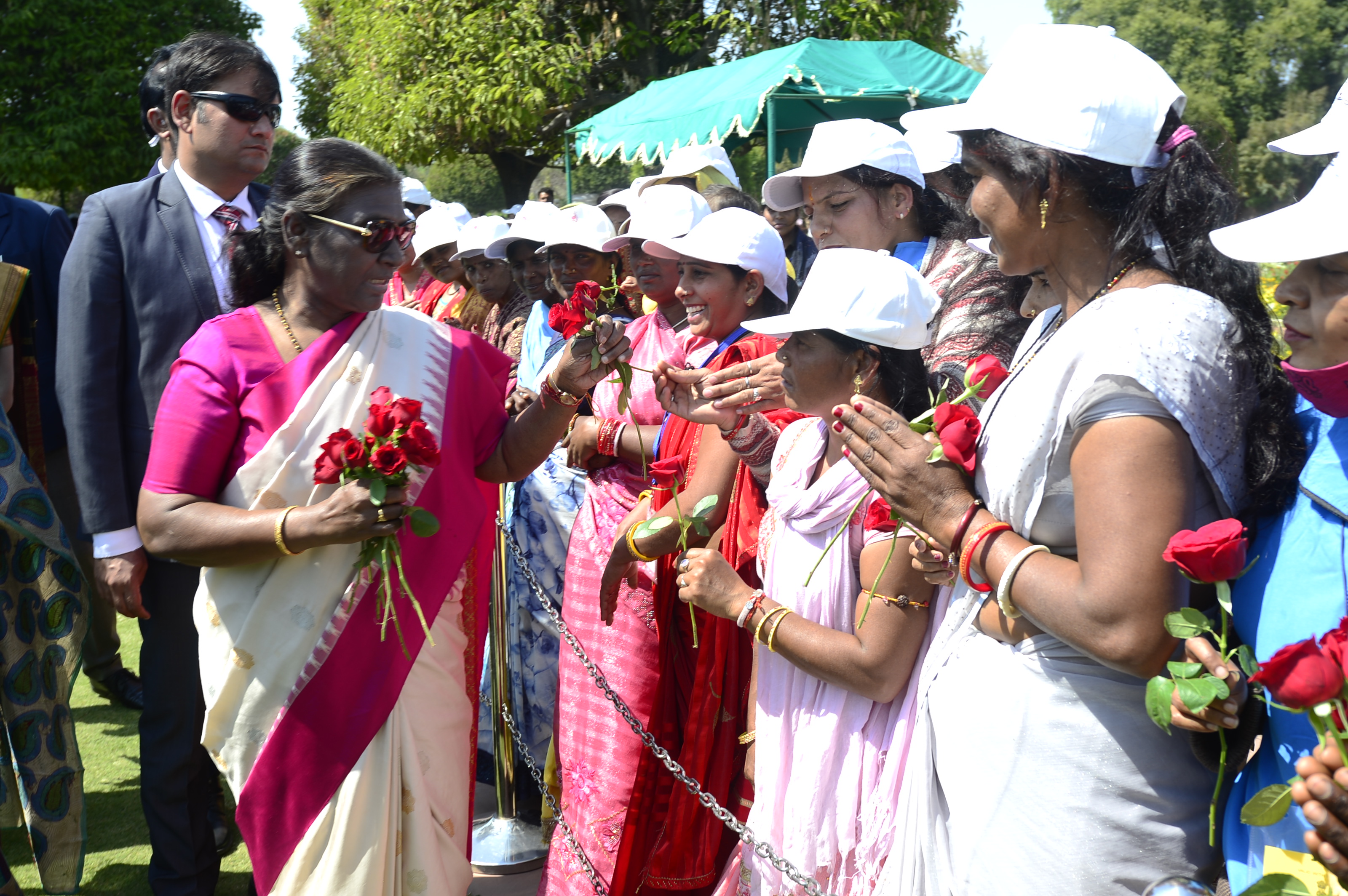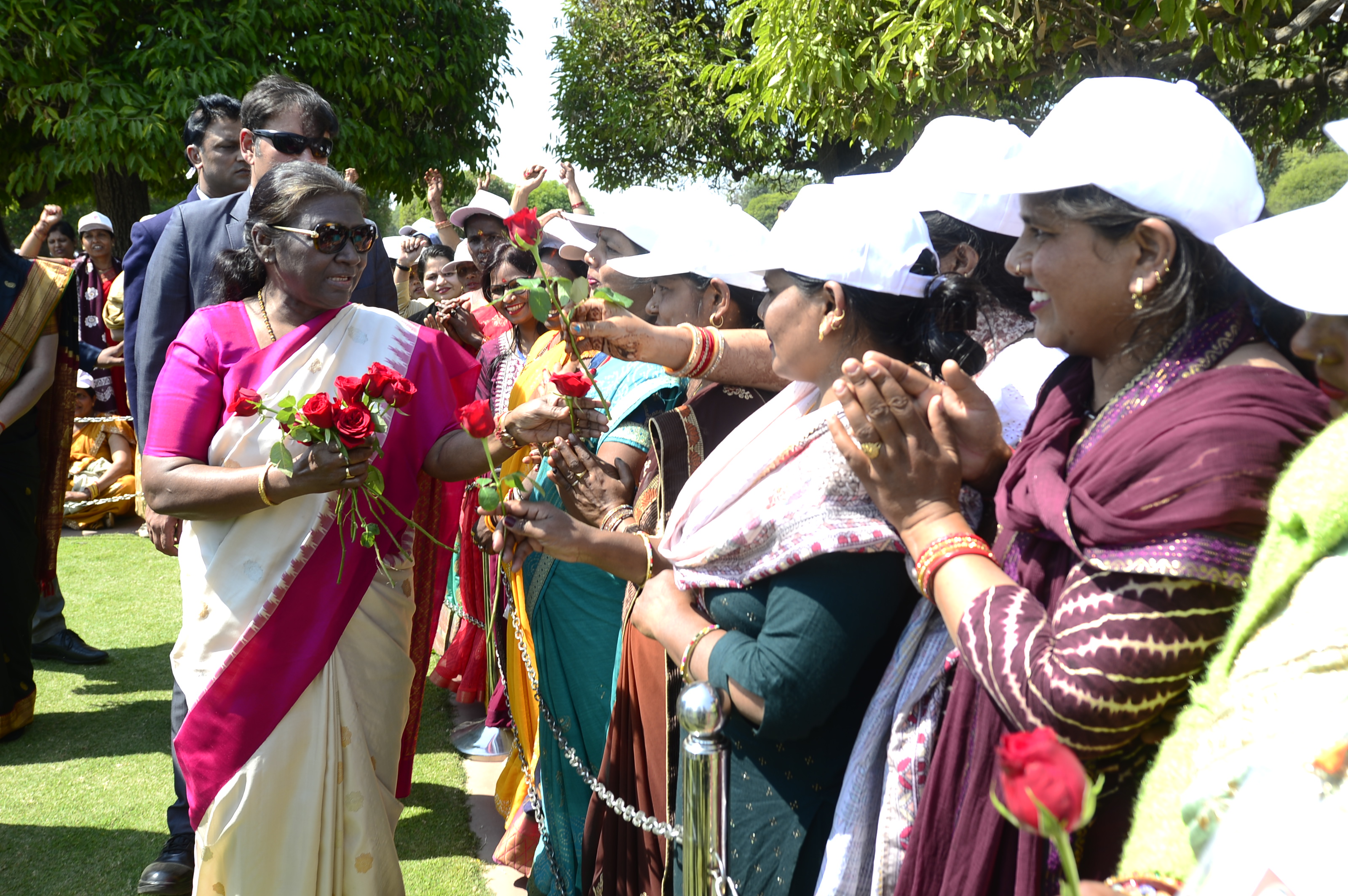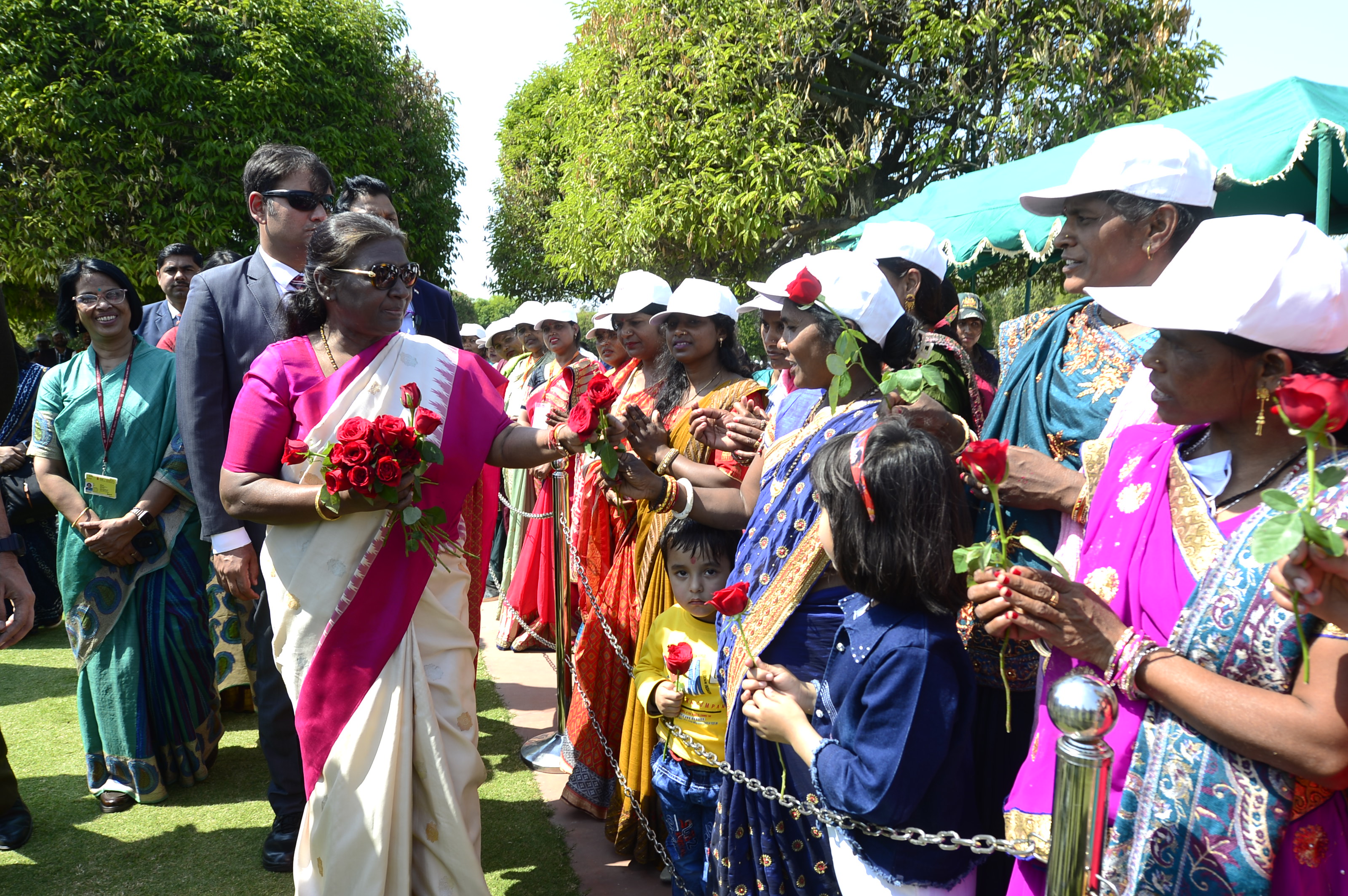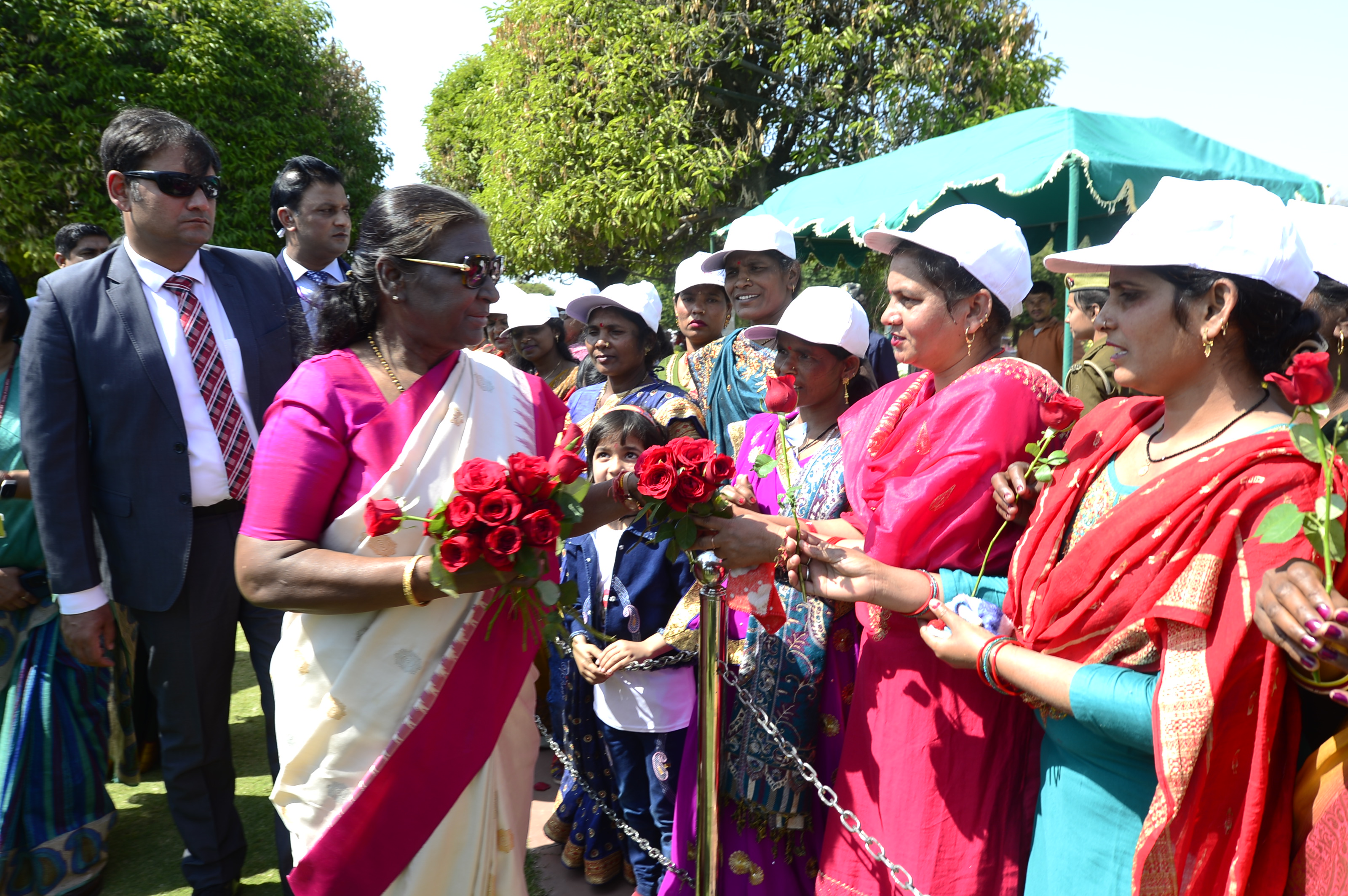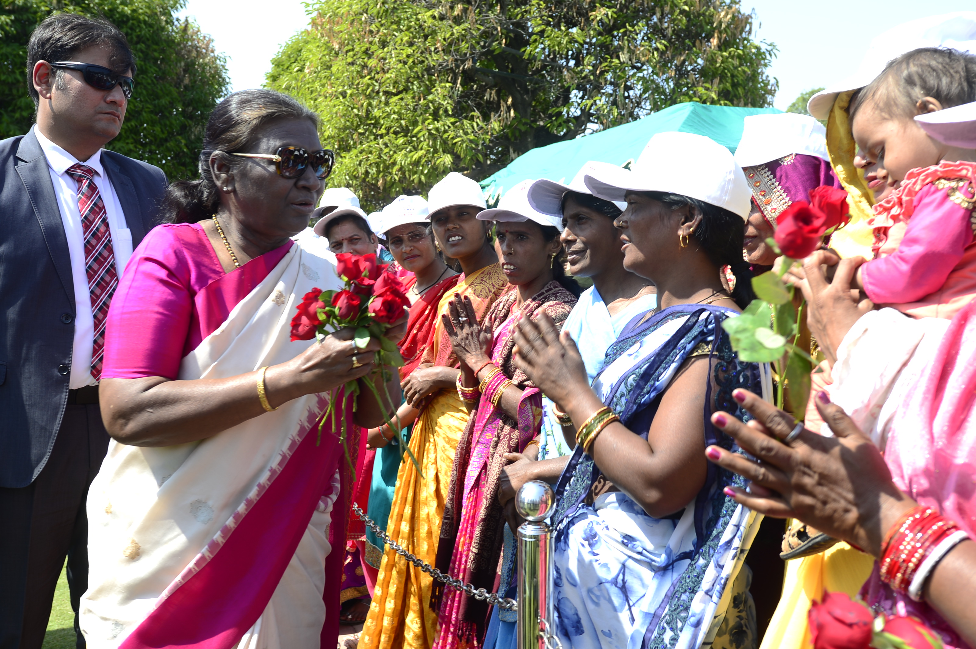 | Caption: | The President of India, Smt Droupadi Murmu met women visiting Amrit Udyan on the day reserved for the special category of Women Tribal Women SHGs-I 08-03-2024 |