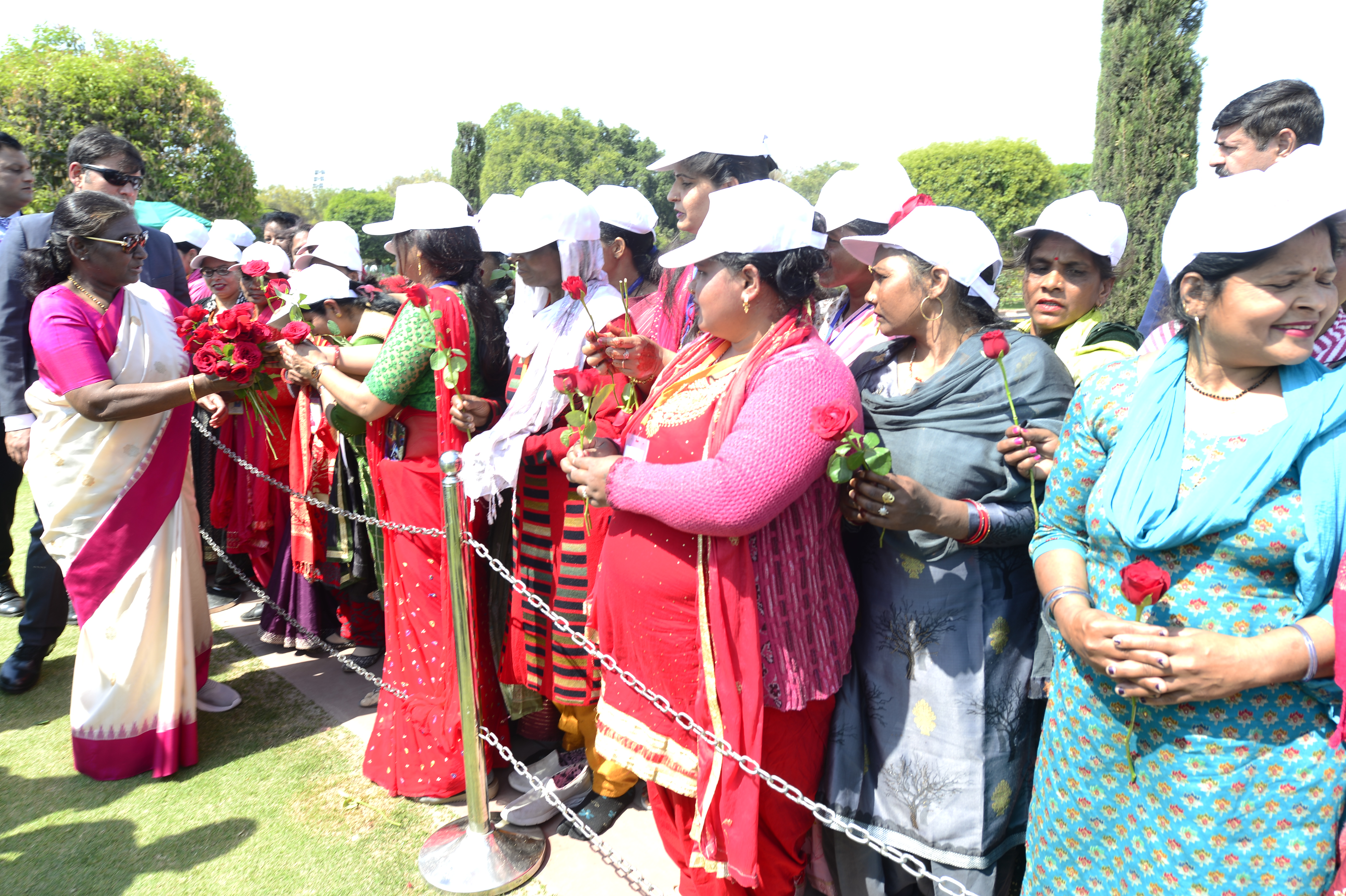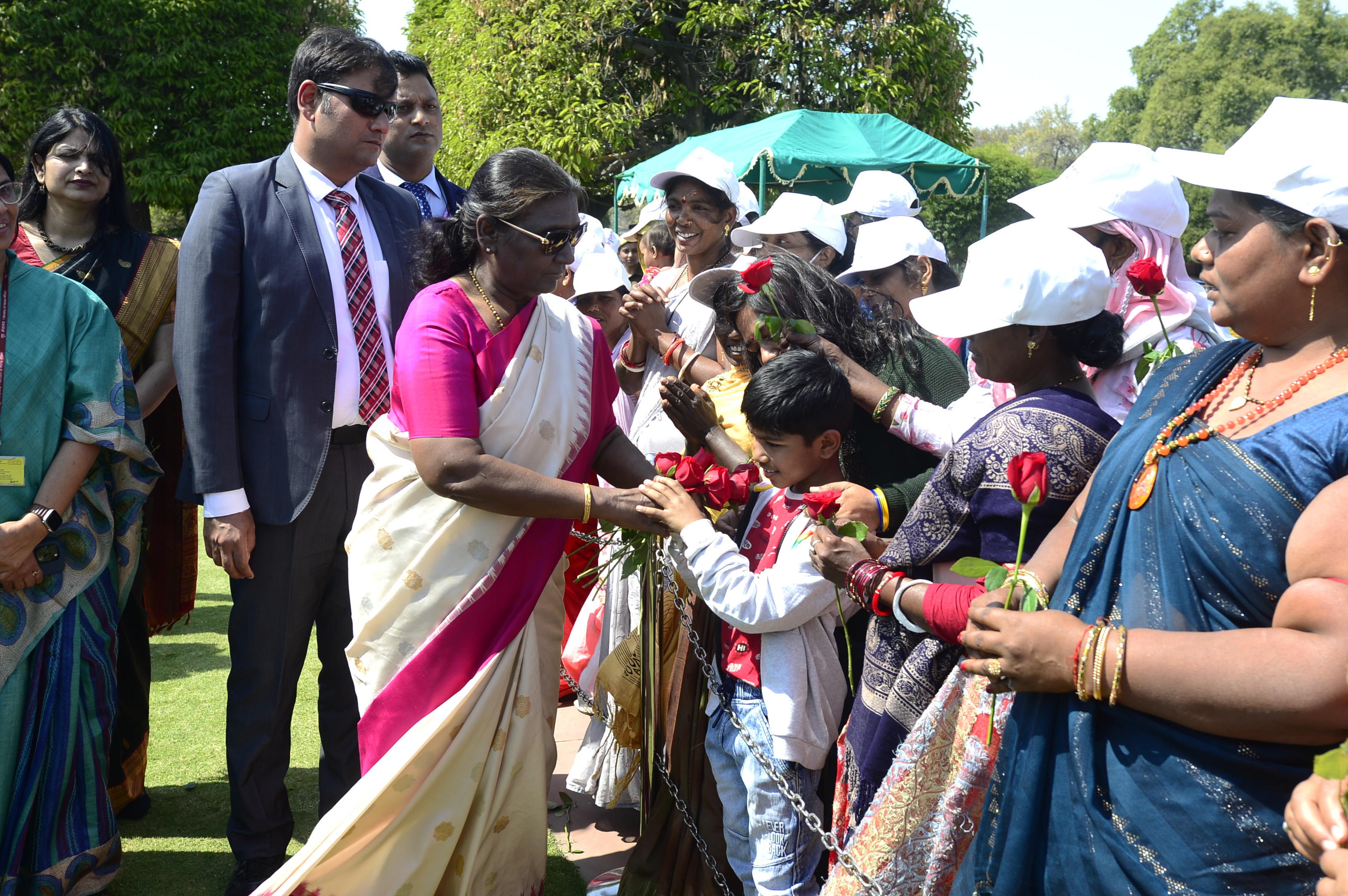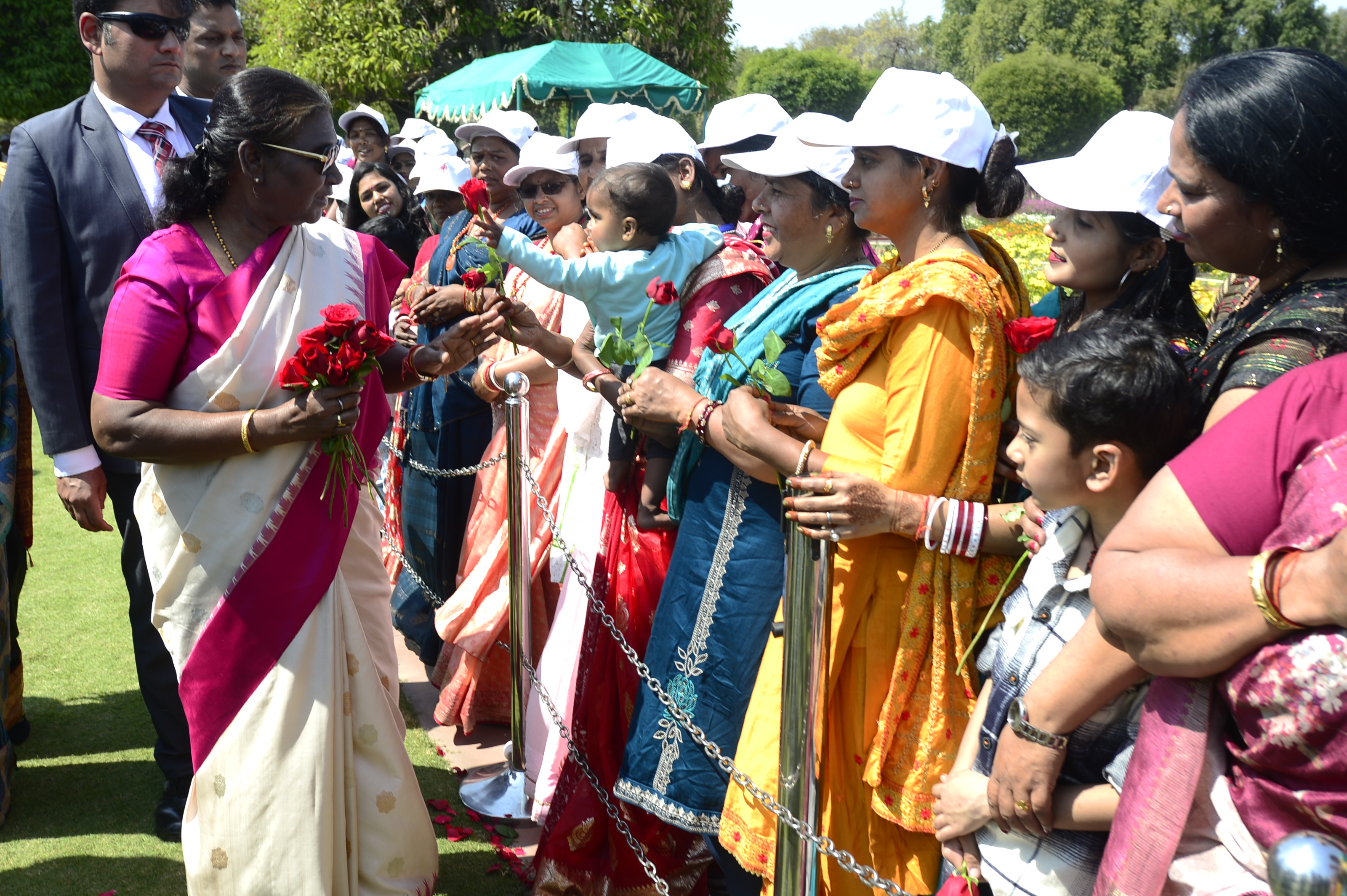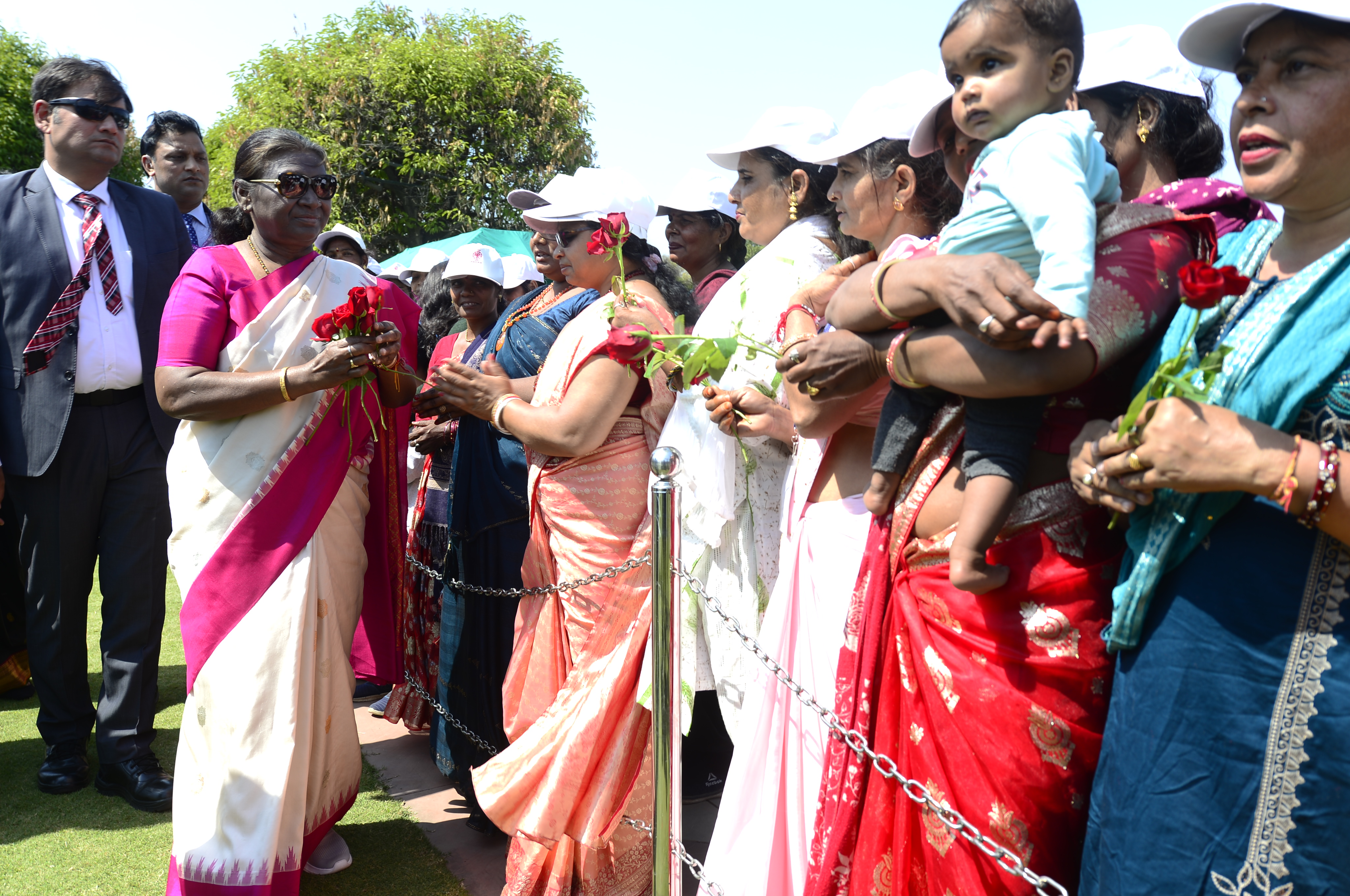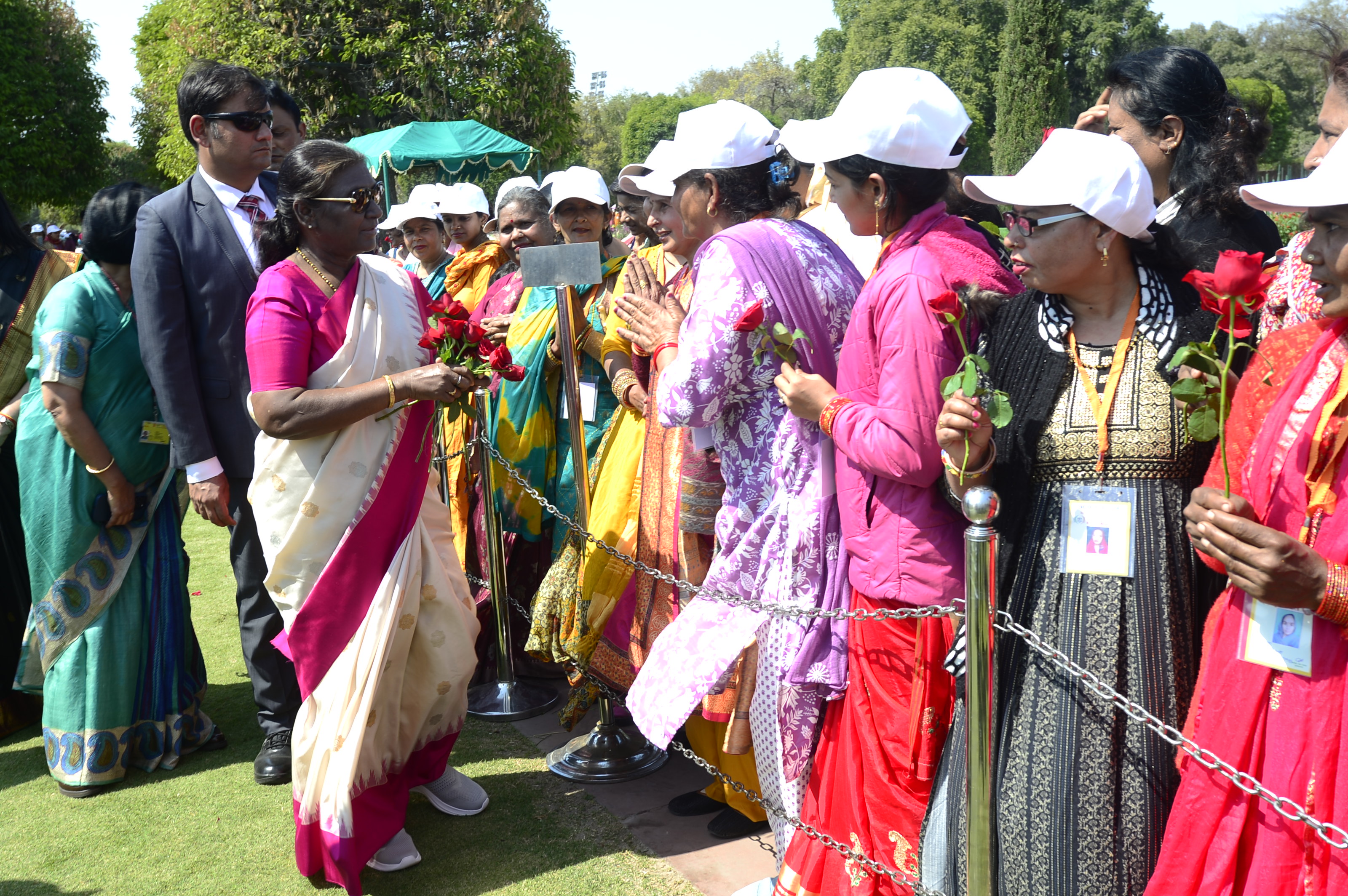 | Caption: | The President of India, Smt Droupadi Murmu met women visiting Amrit Udyan on the day reserved for the special category of Women Tribal Women SHGs-I 08-03-2024 |