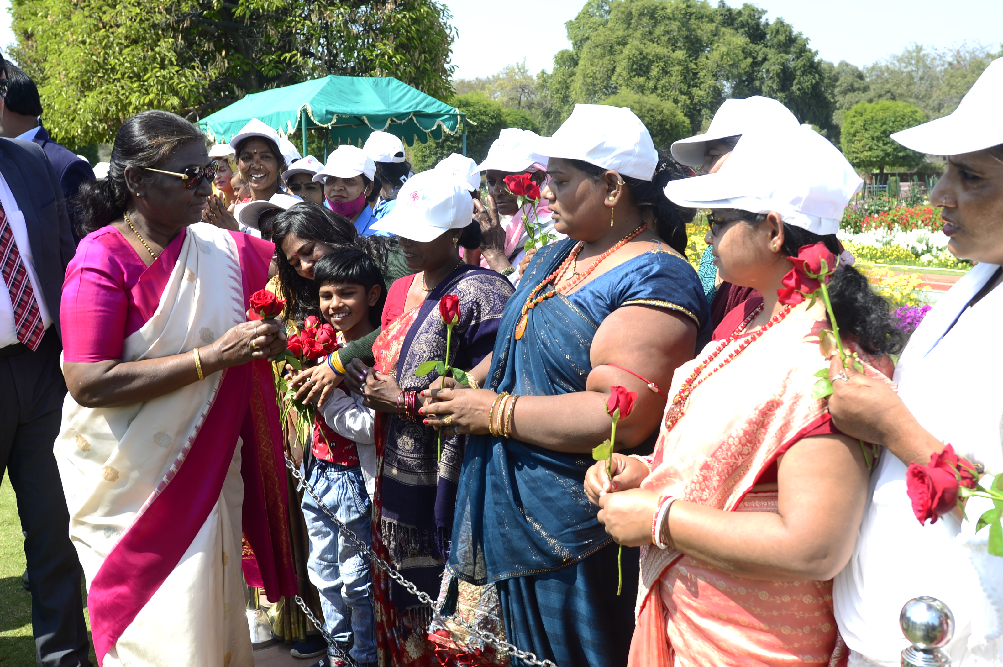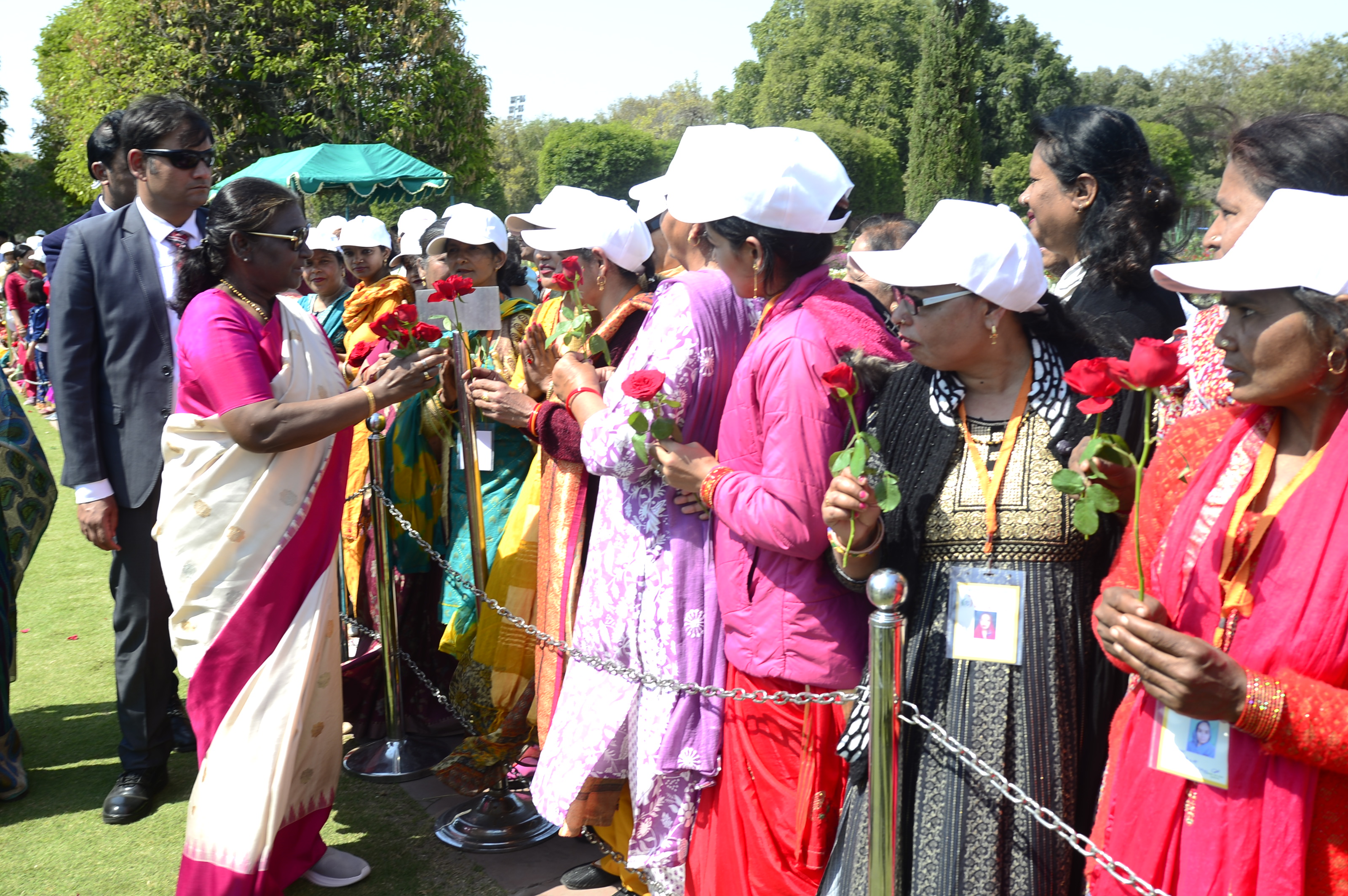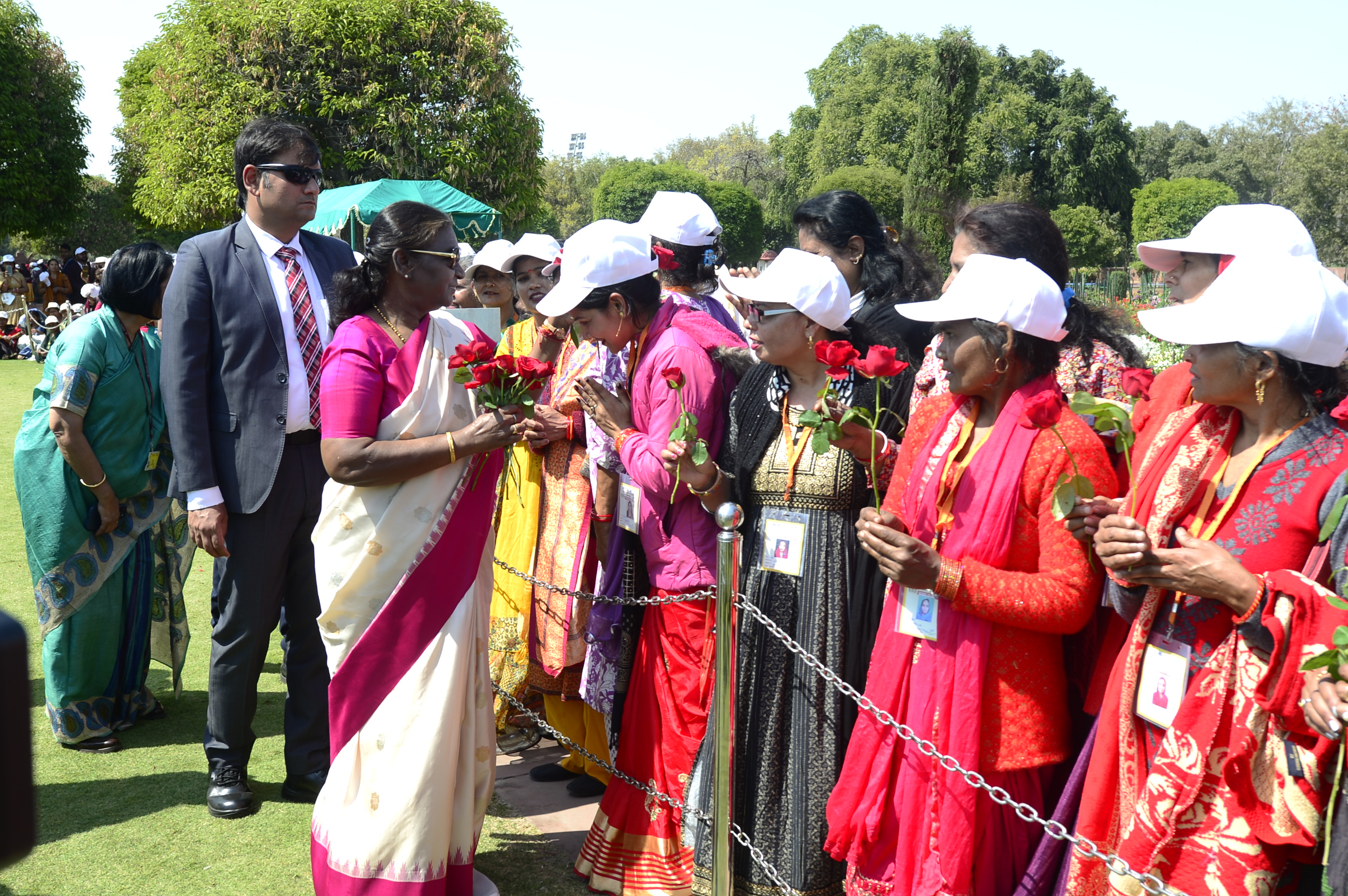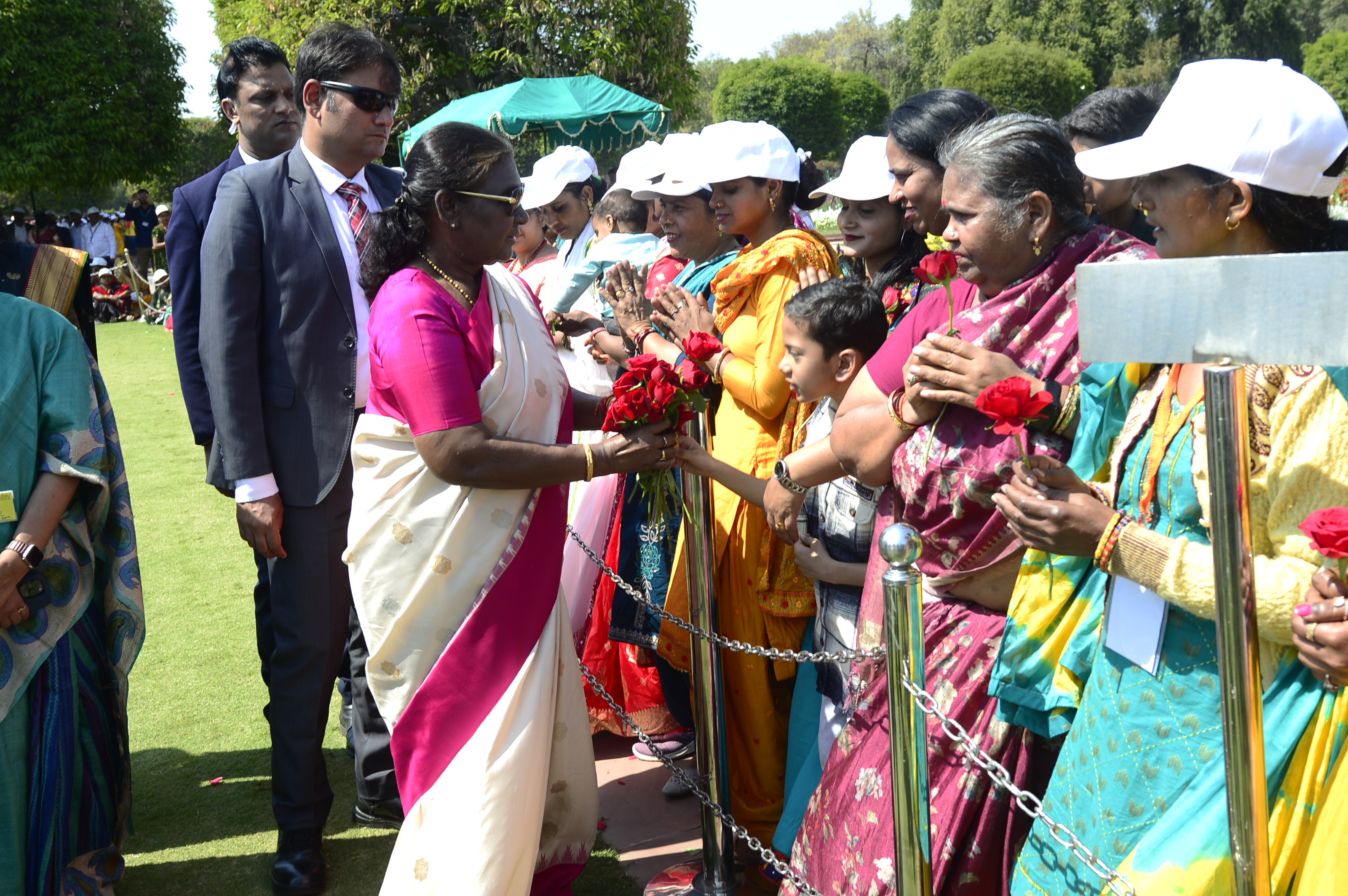 | Caption: | The President of India, Smt Droupadi Murmu met women visiting Amrit Udyan on the day reserved for the special category of Women Tribal Women SHGs-I 08-03-2024 |