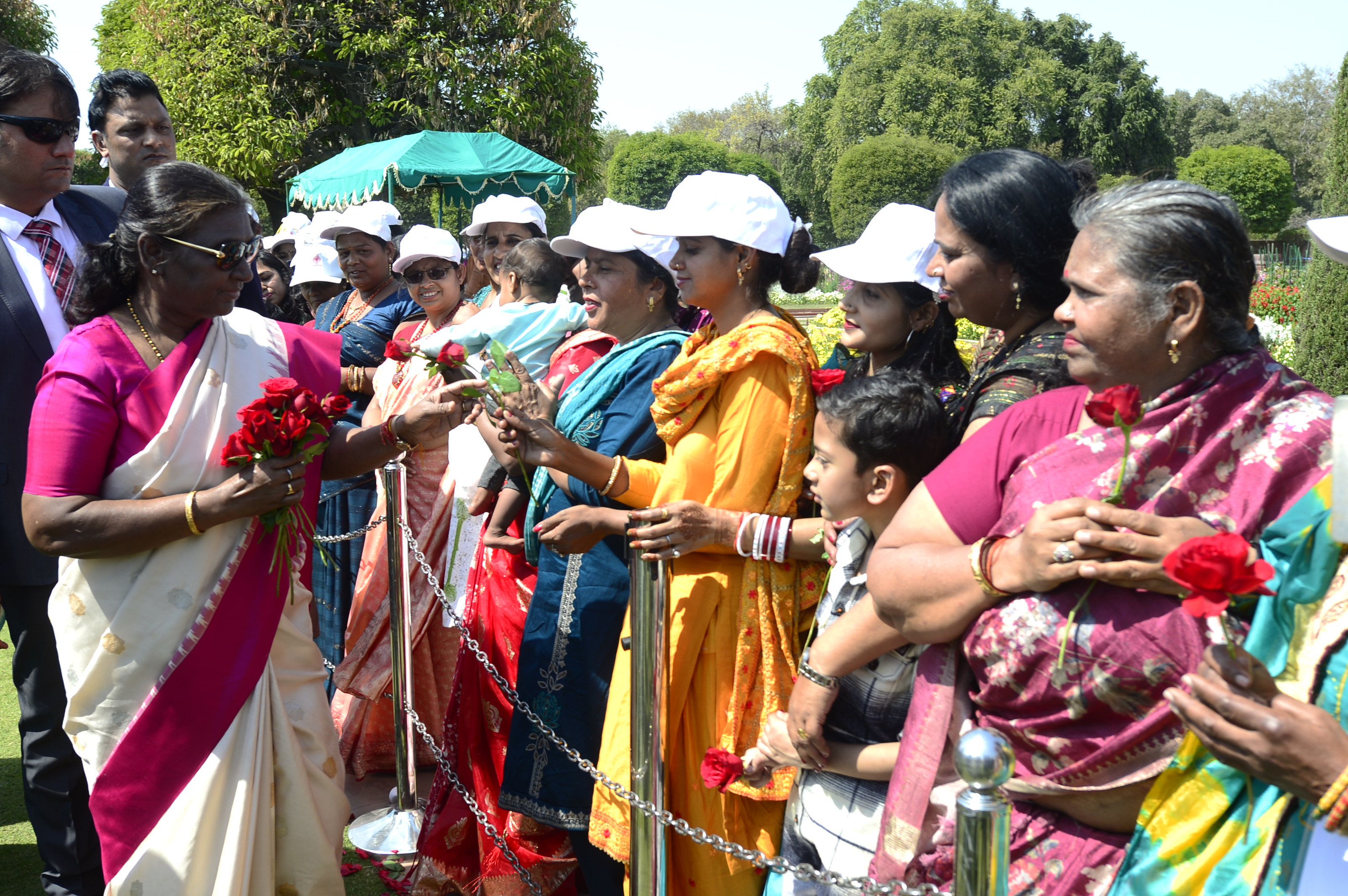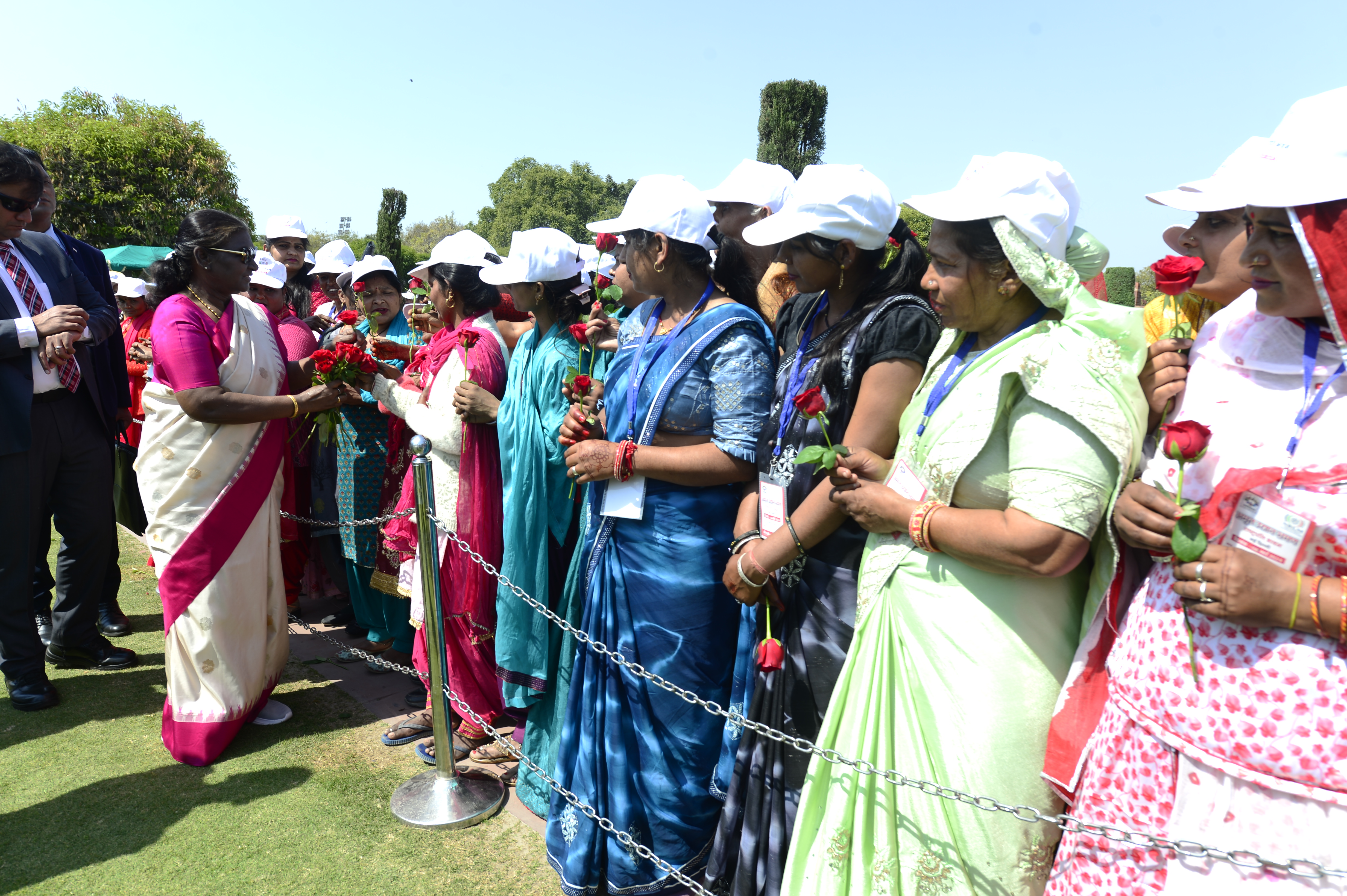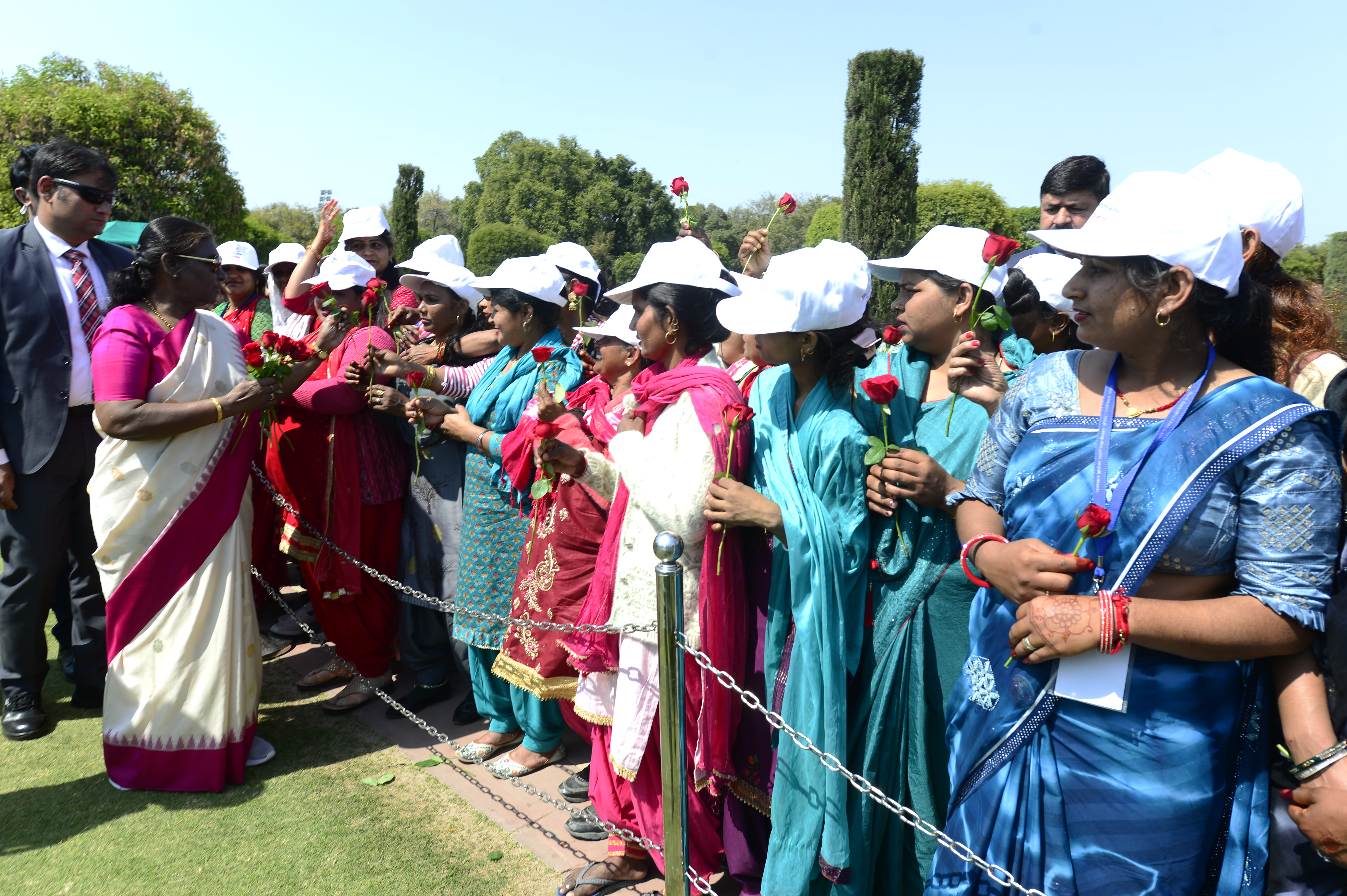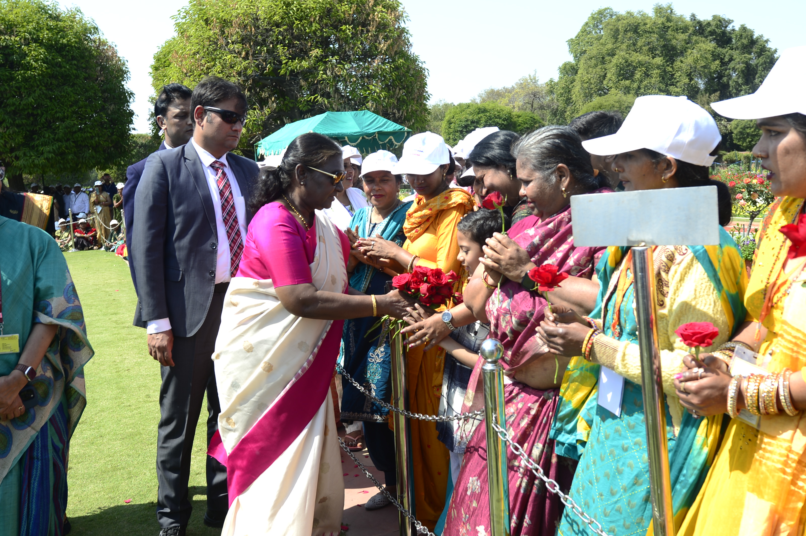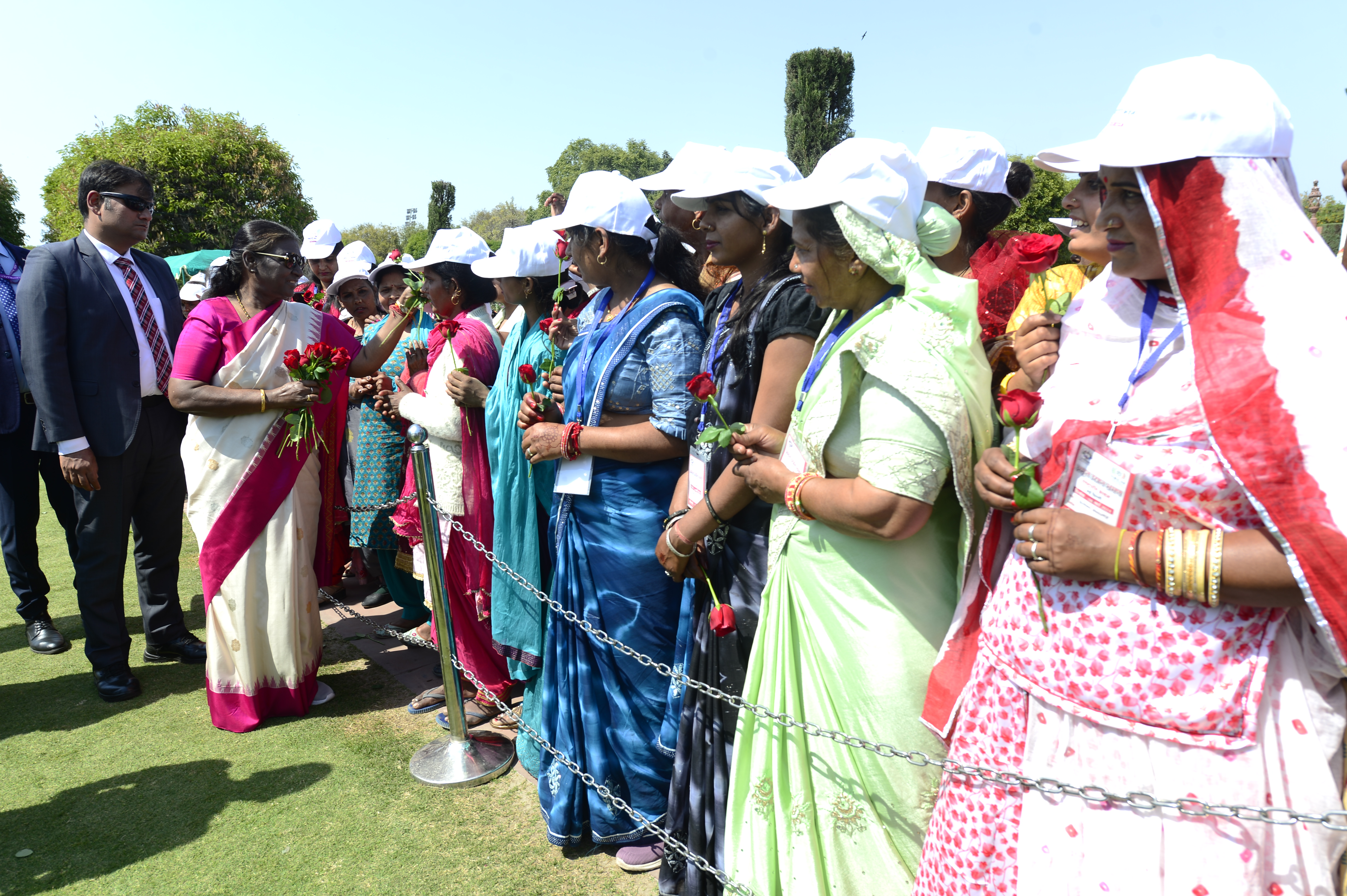 | Caption: | The President of India, Smt Droupadi Murmu met women visiting Amrit Udyan on the day reserved for the special category of Women Tribal Women SHGs-I 08-03-2024 |