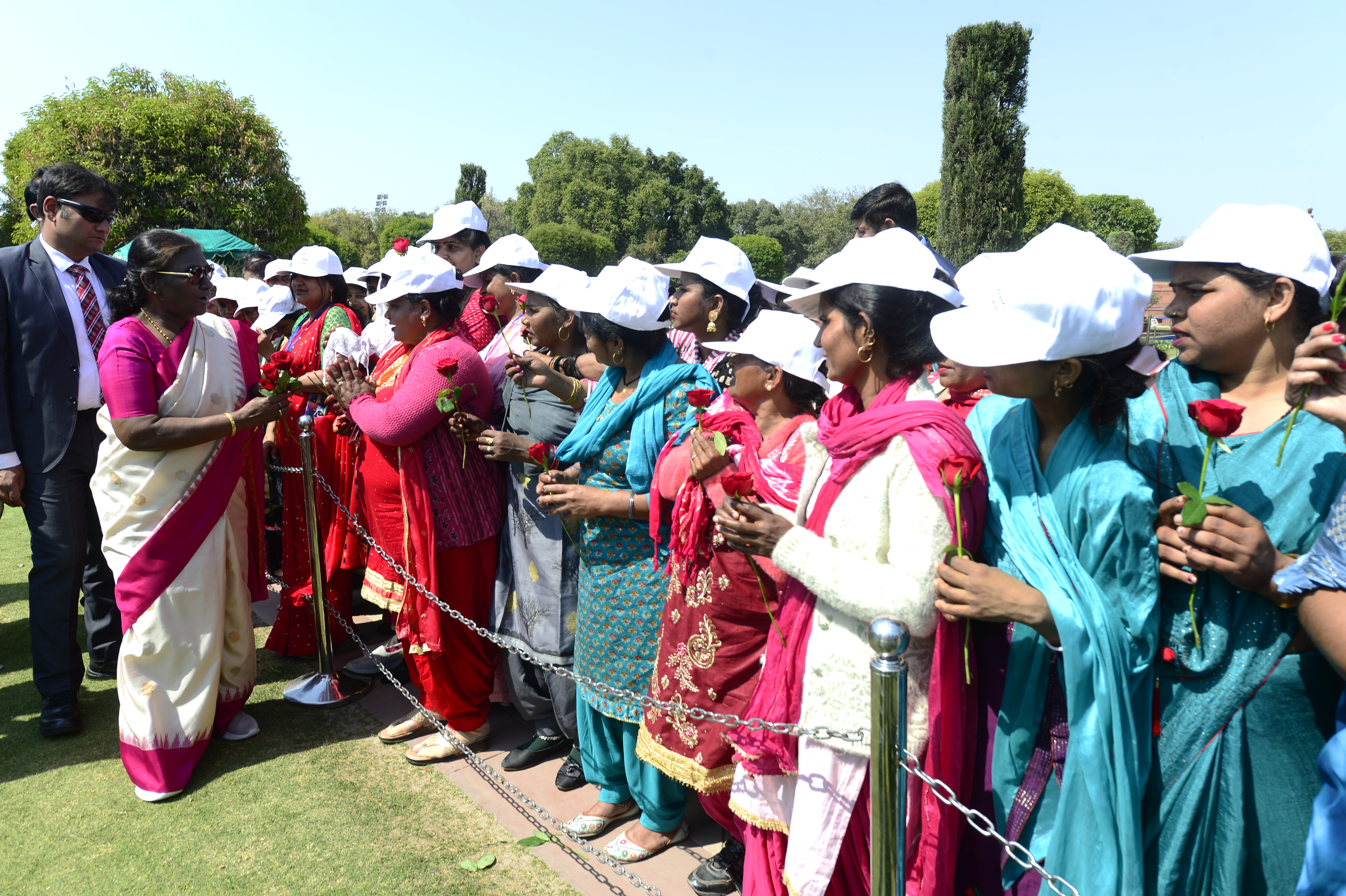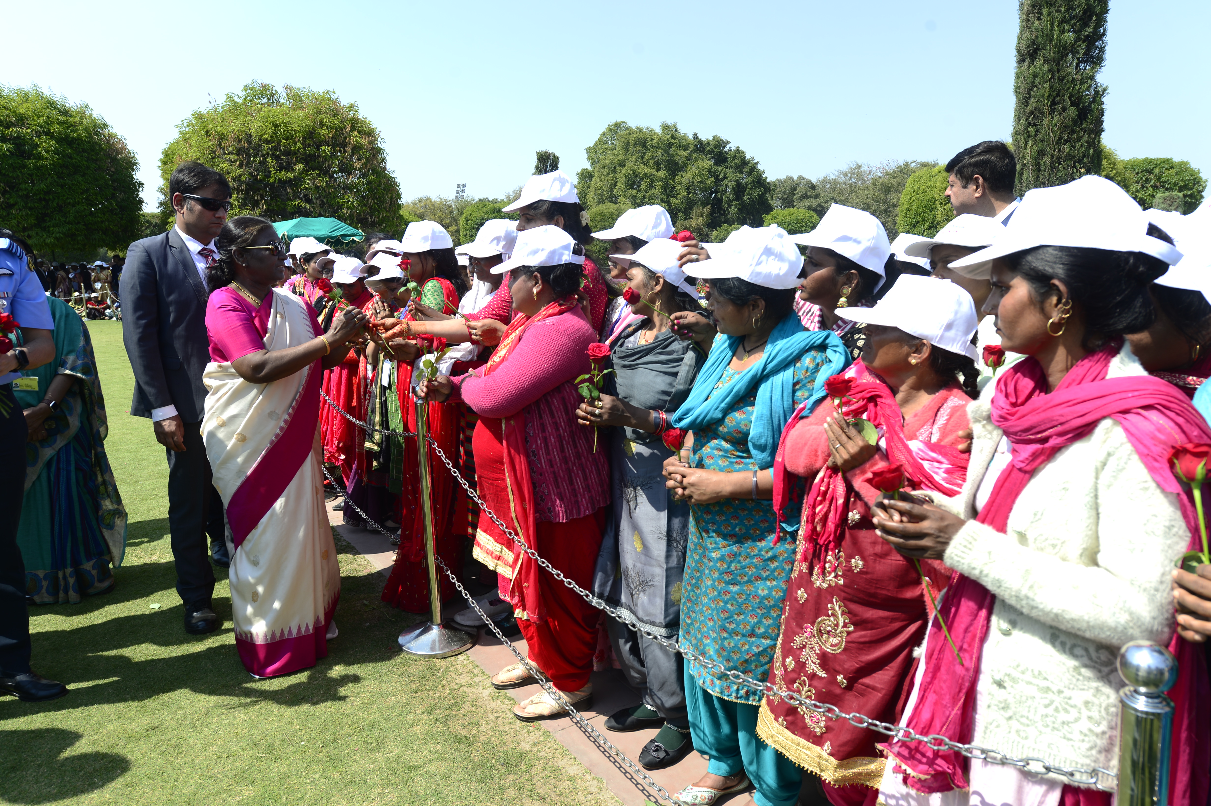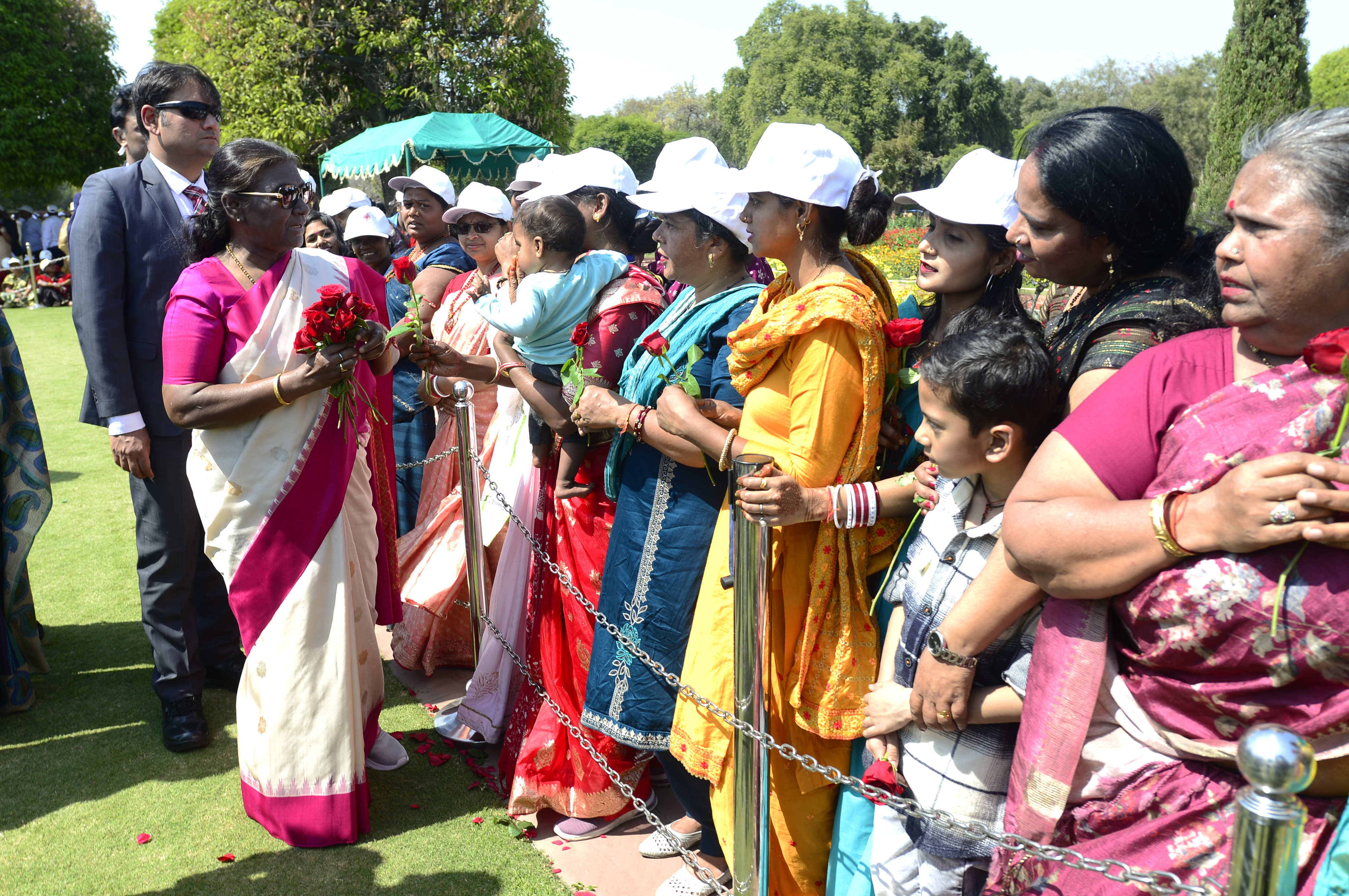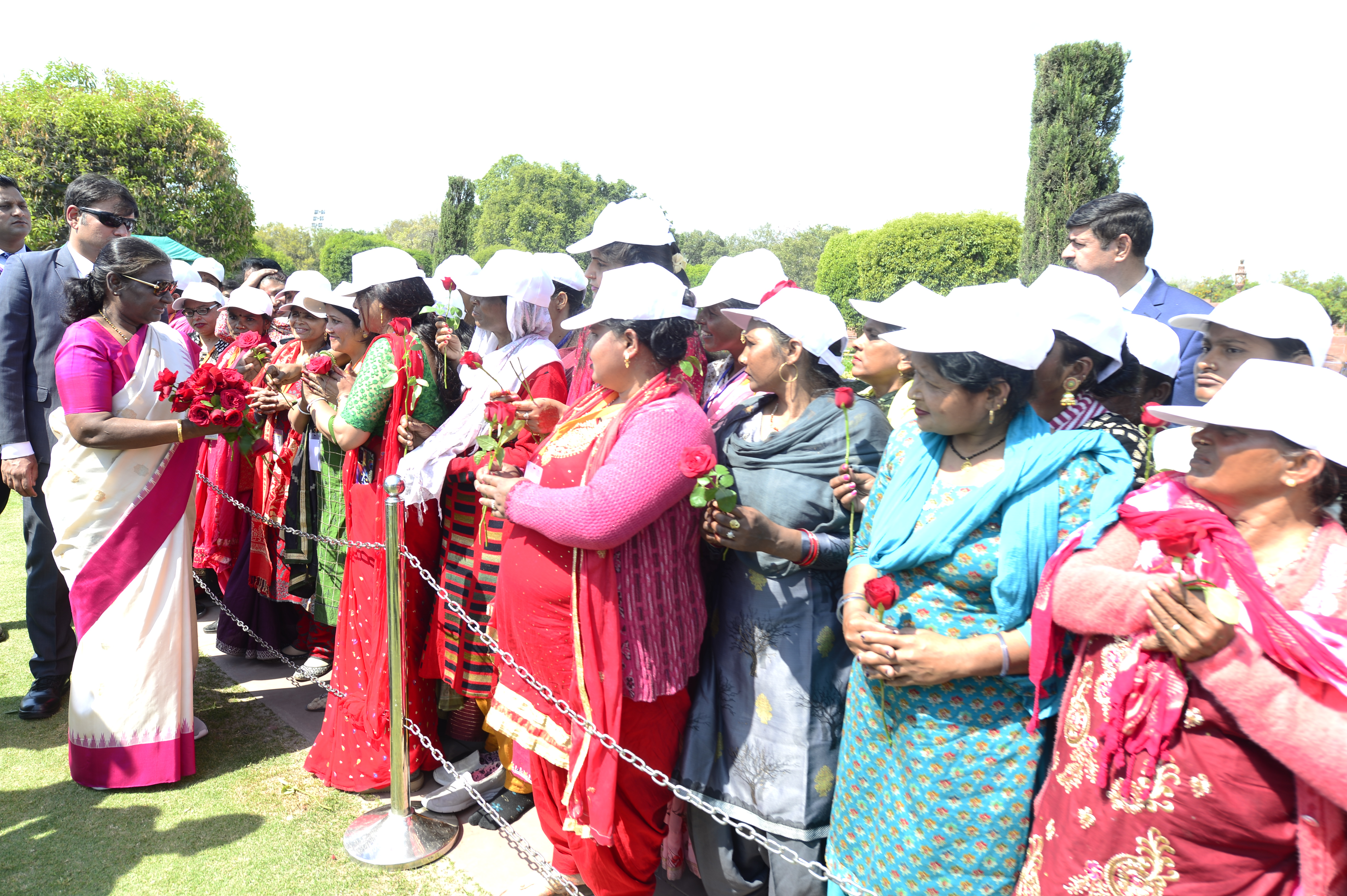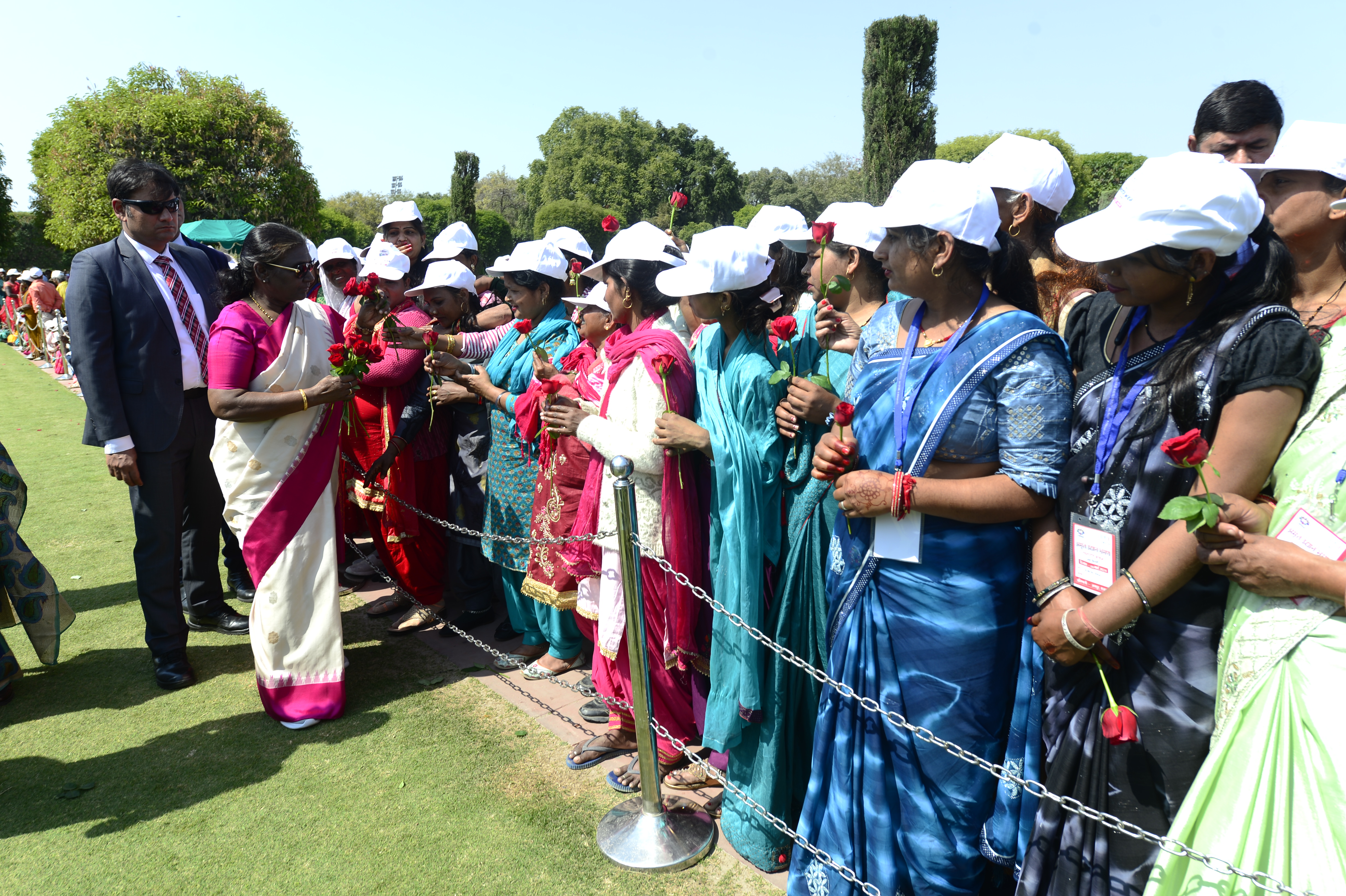 | Caption: | The President of India, Smt Droupadi Murmu met women visiting Amrit Udyan on the day reserved for the special category of Women Tribal Women SHGs-I 08-03-2024 |