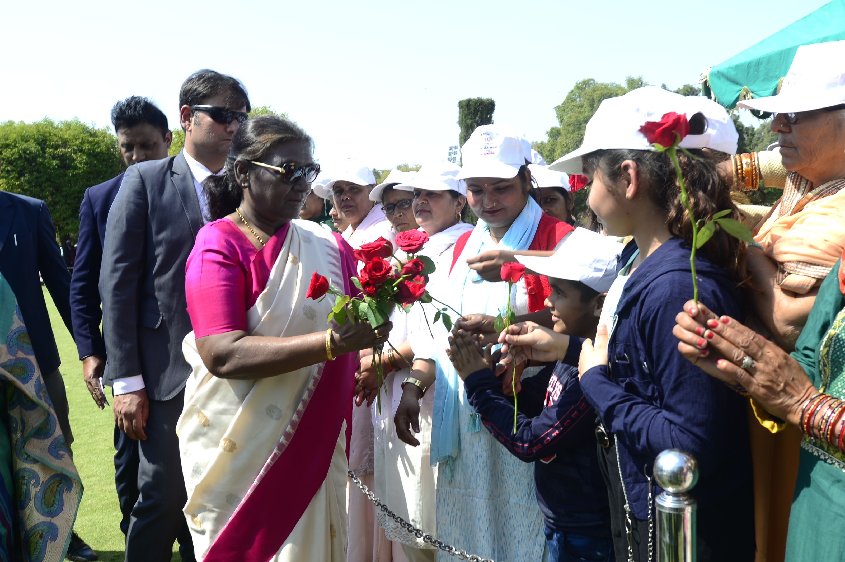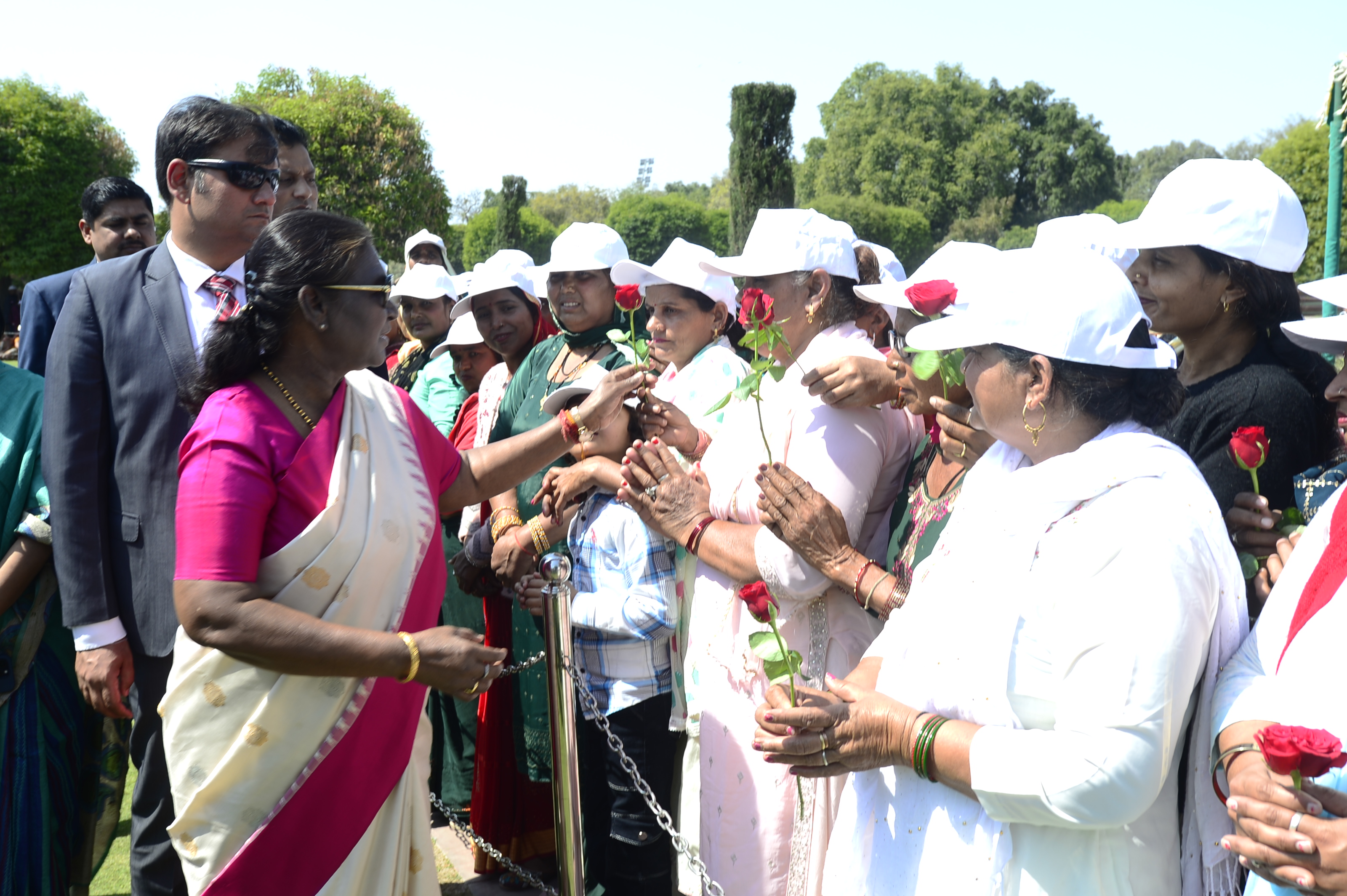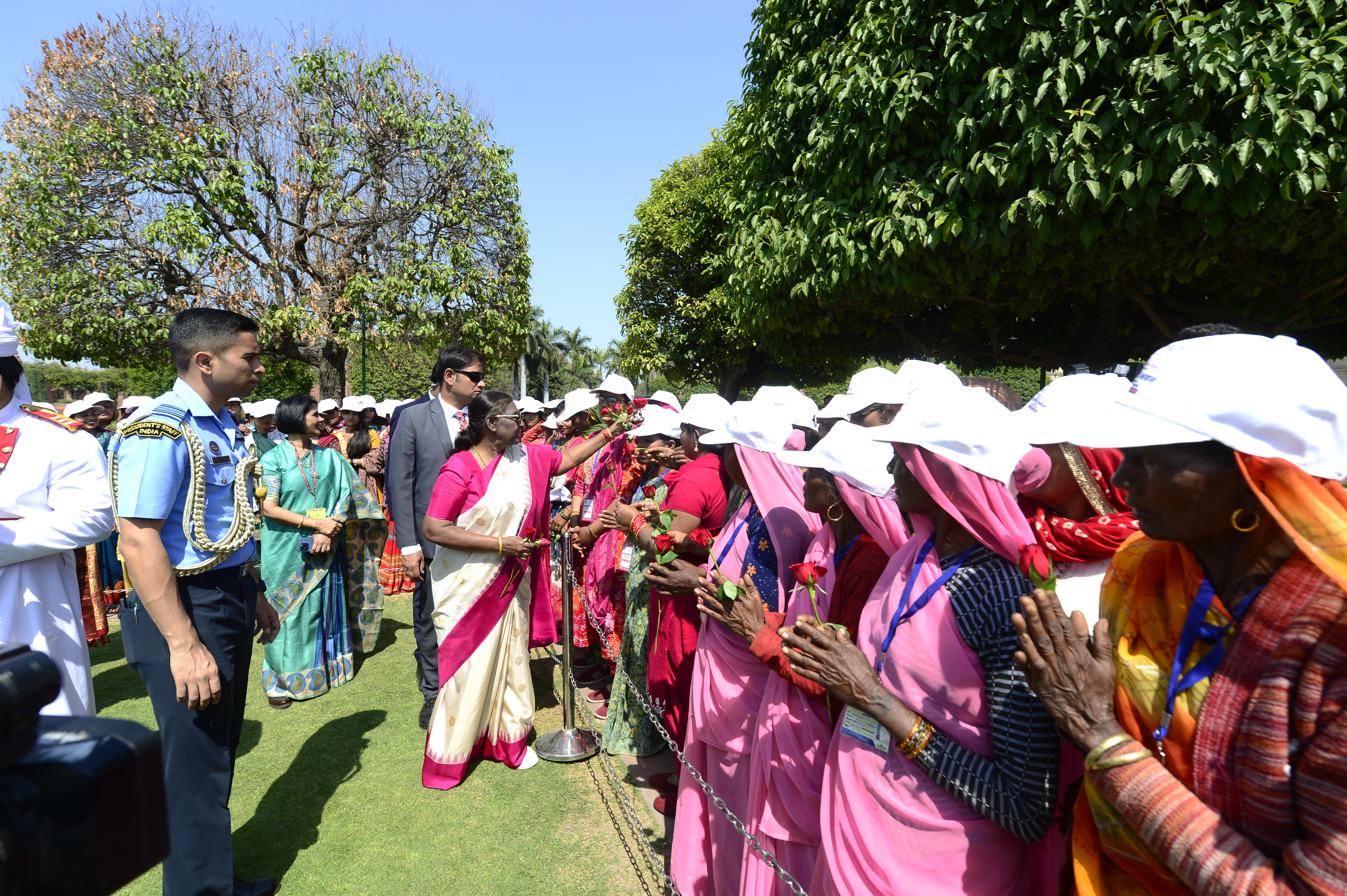 | Caption: | The President of India, Smt Droupadi Murmu met women visiting Amrit Udyan on the day reserved for the special category of Women Tribal Women SHGs-I 08-03-2024 |