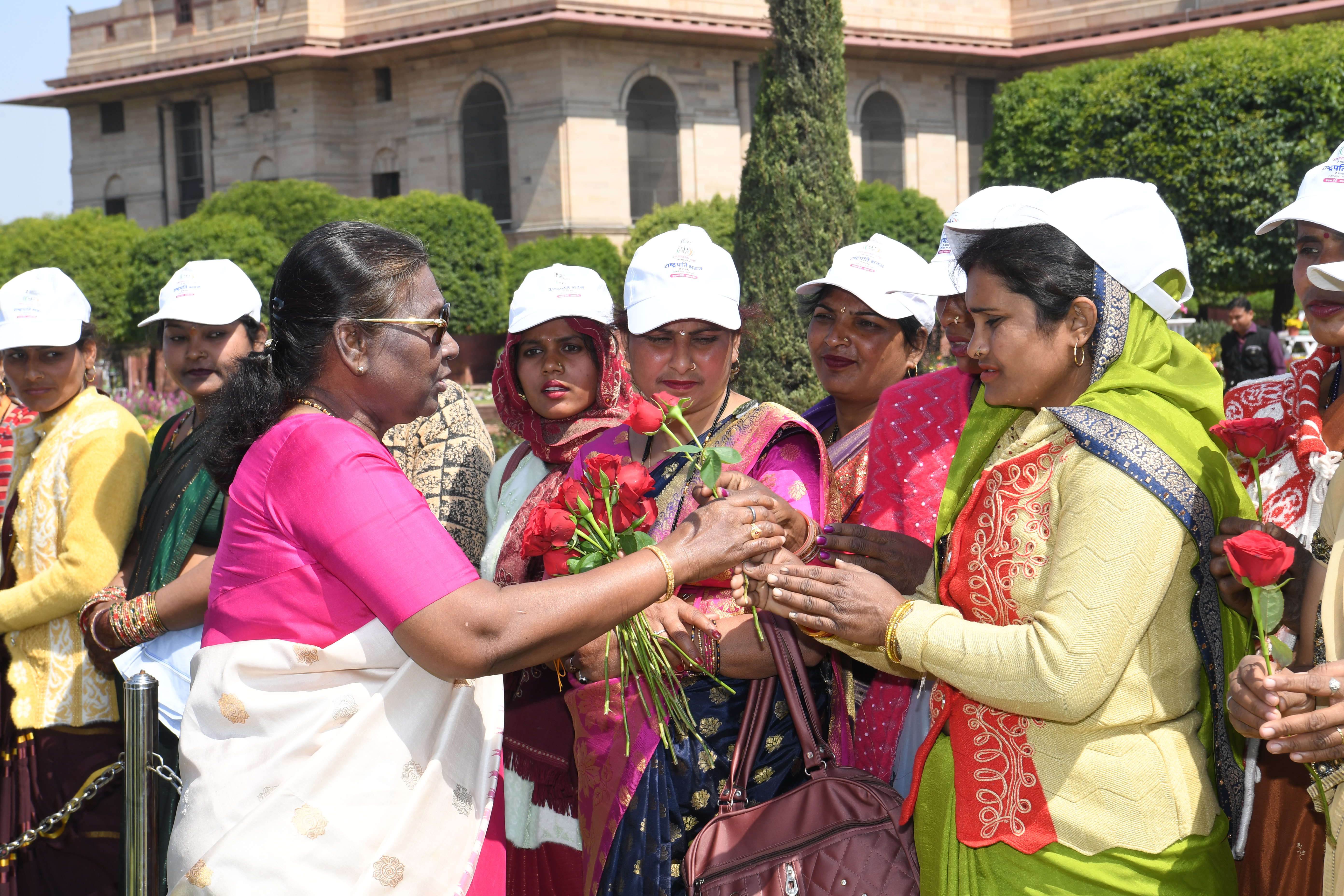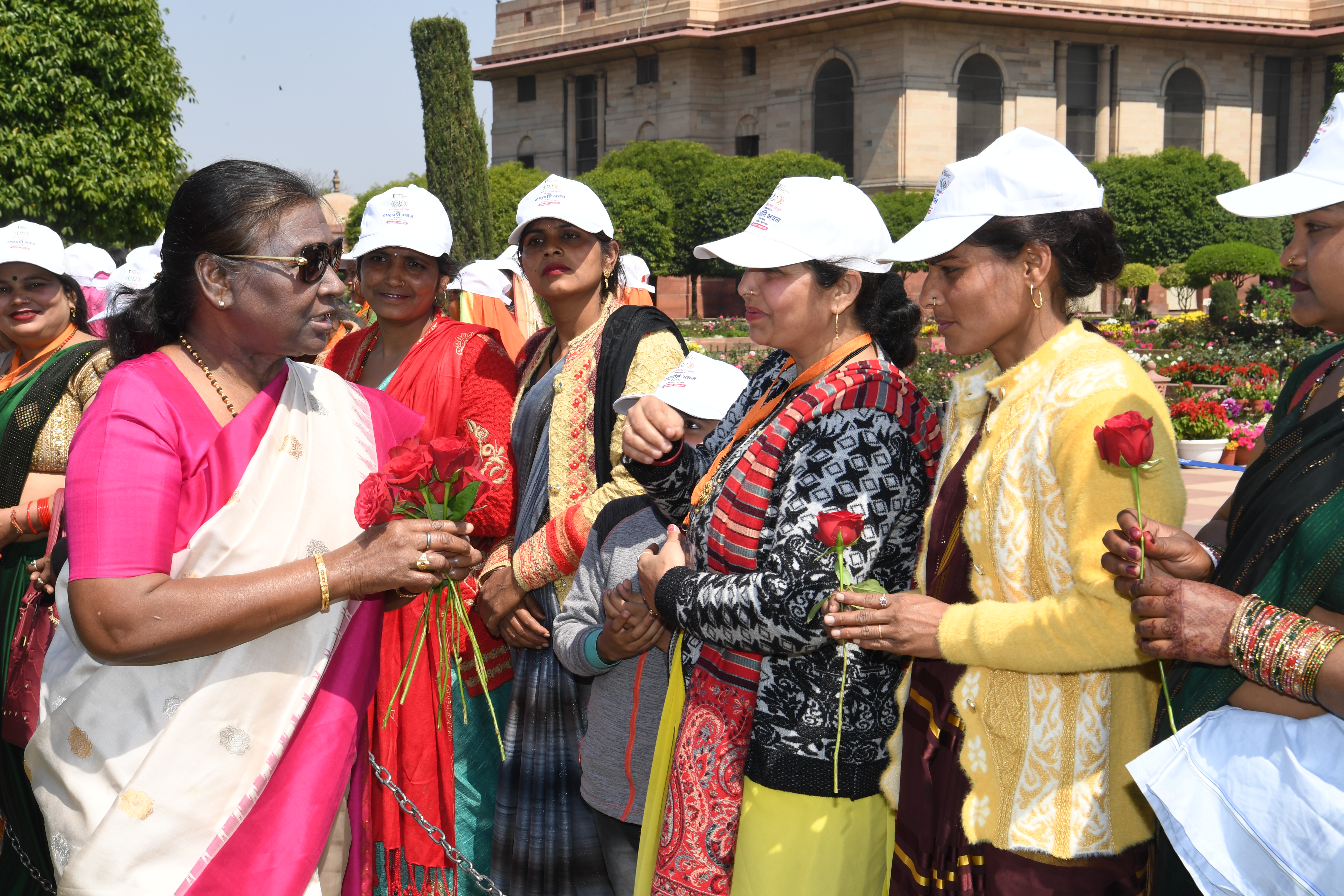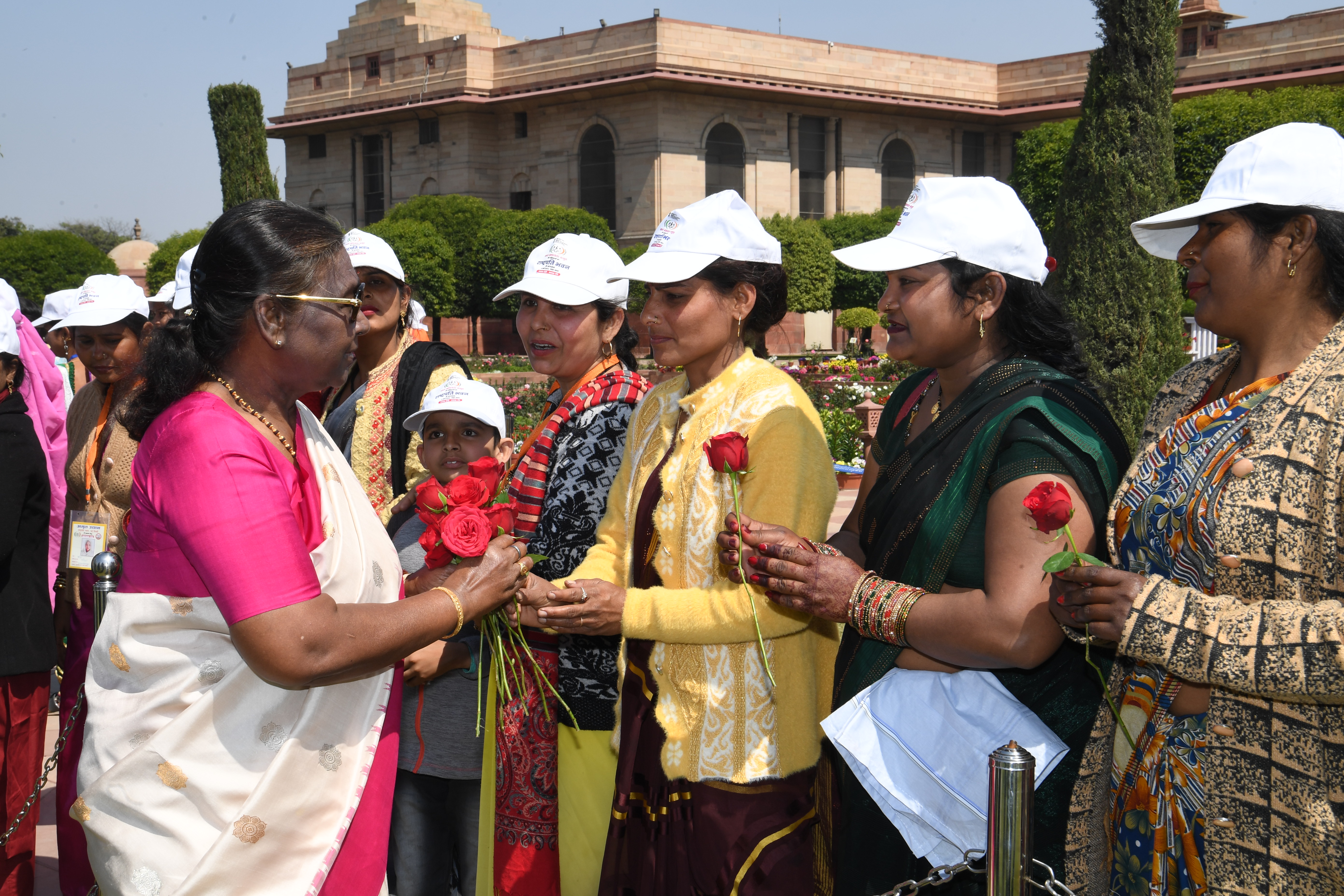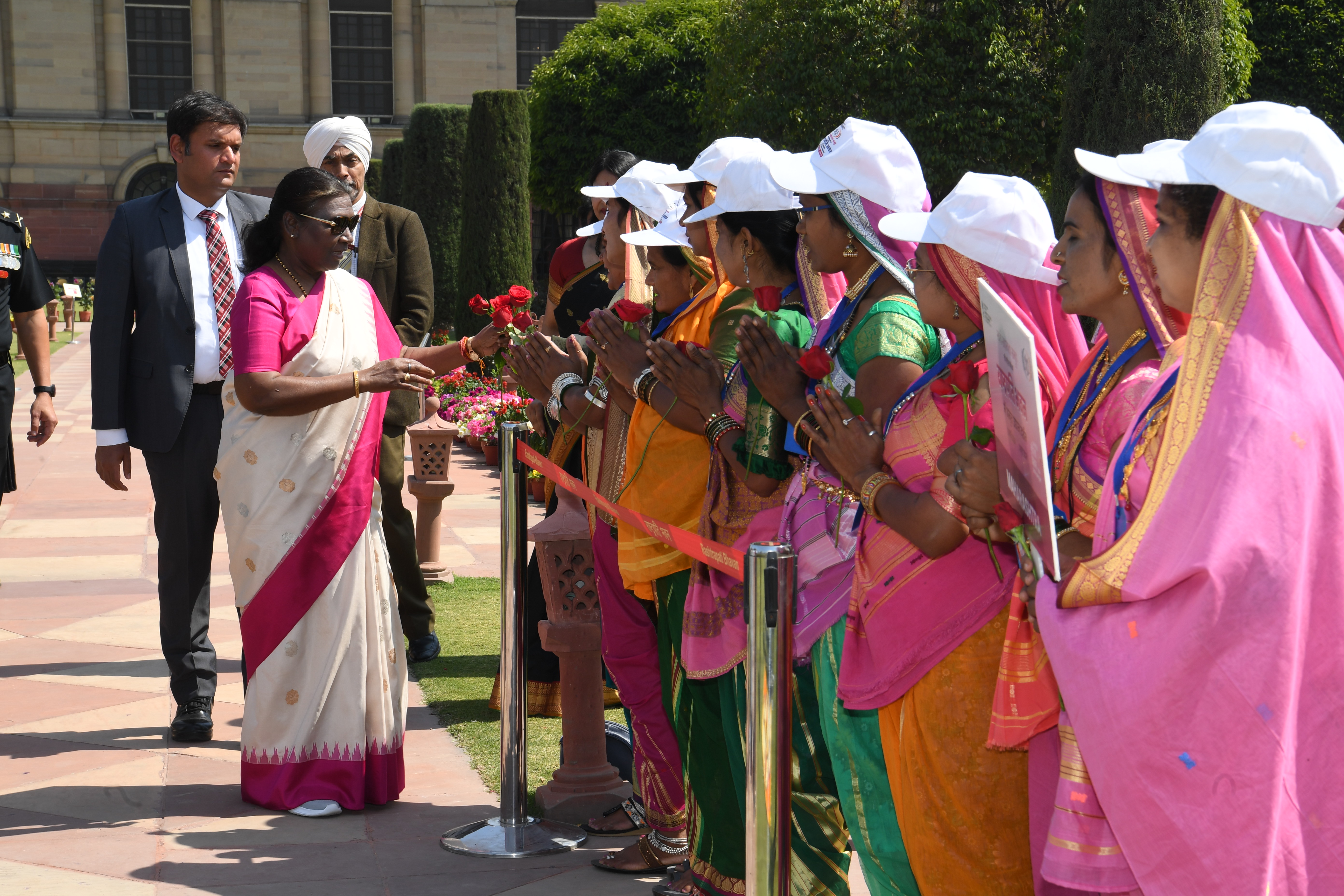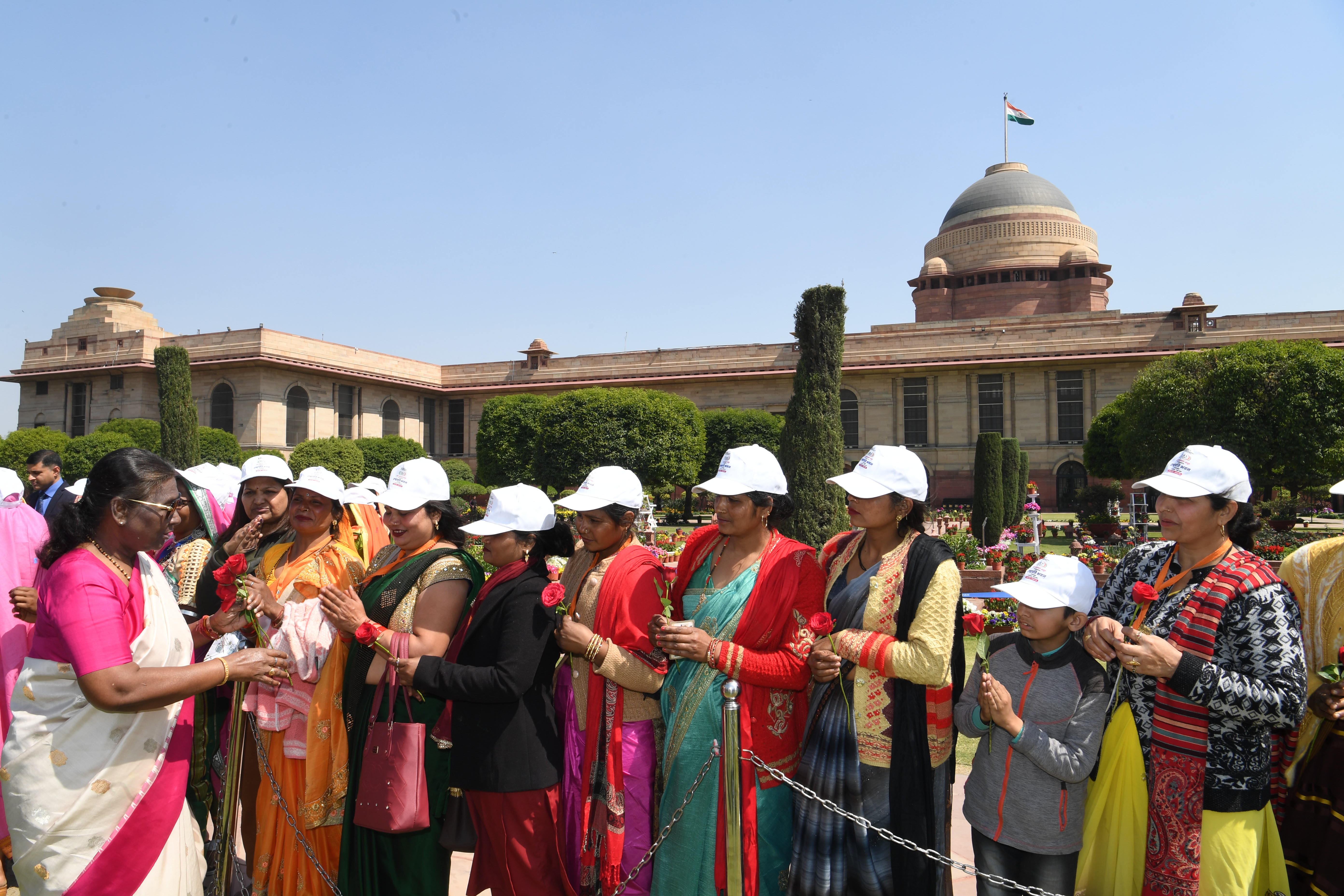 | Caption: | The President of India, Smt Droupadi Murmu met women visiting Amrit Udyan on the day reserved for the special category of Women Tribal Women SHGs-I 08-03-2024 |