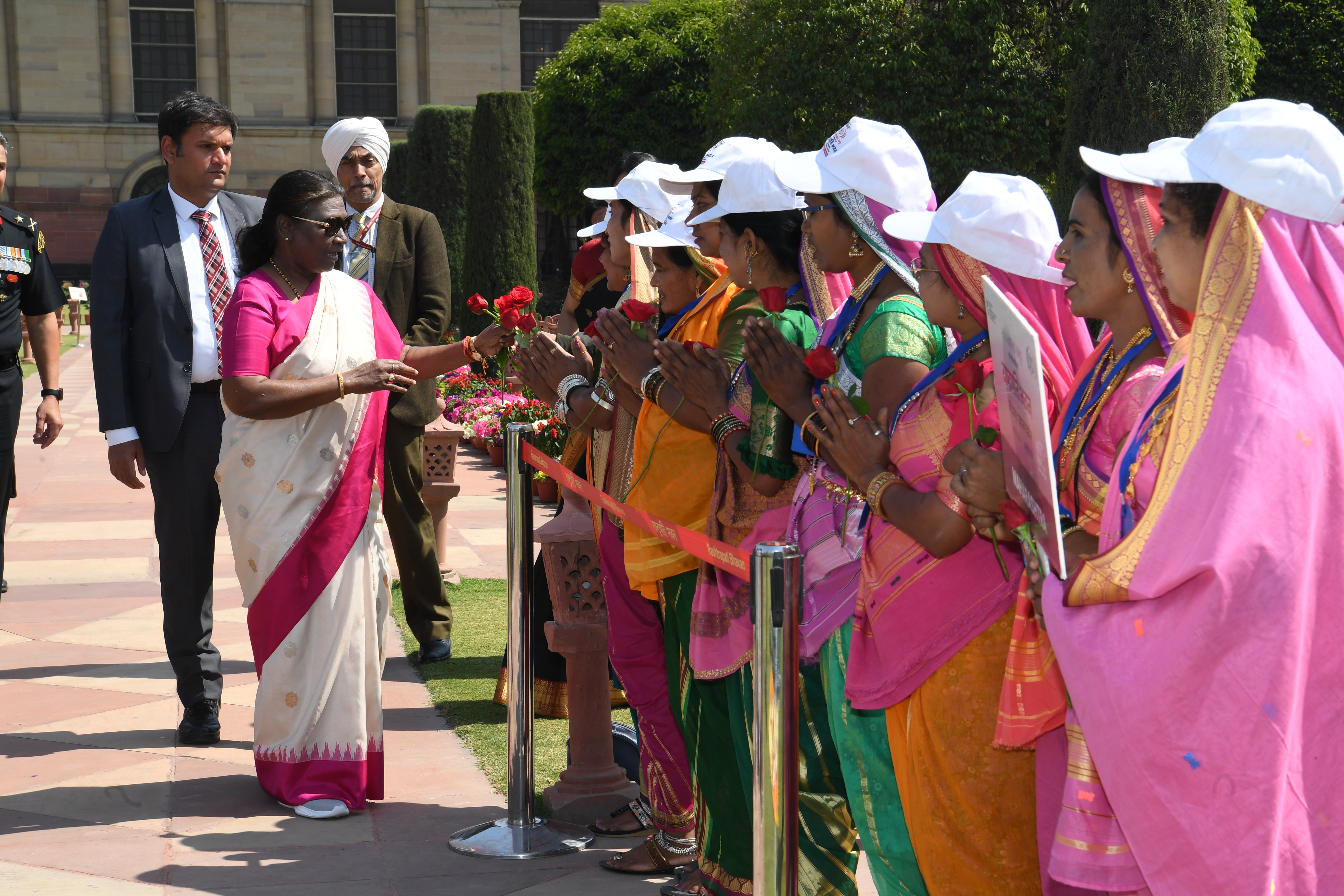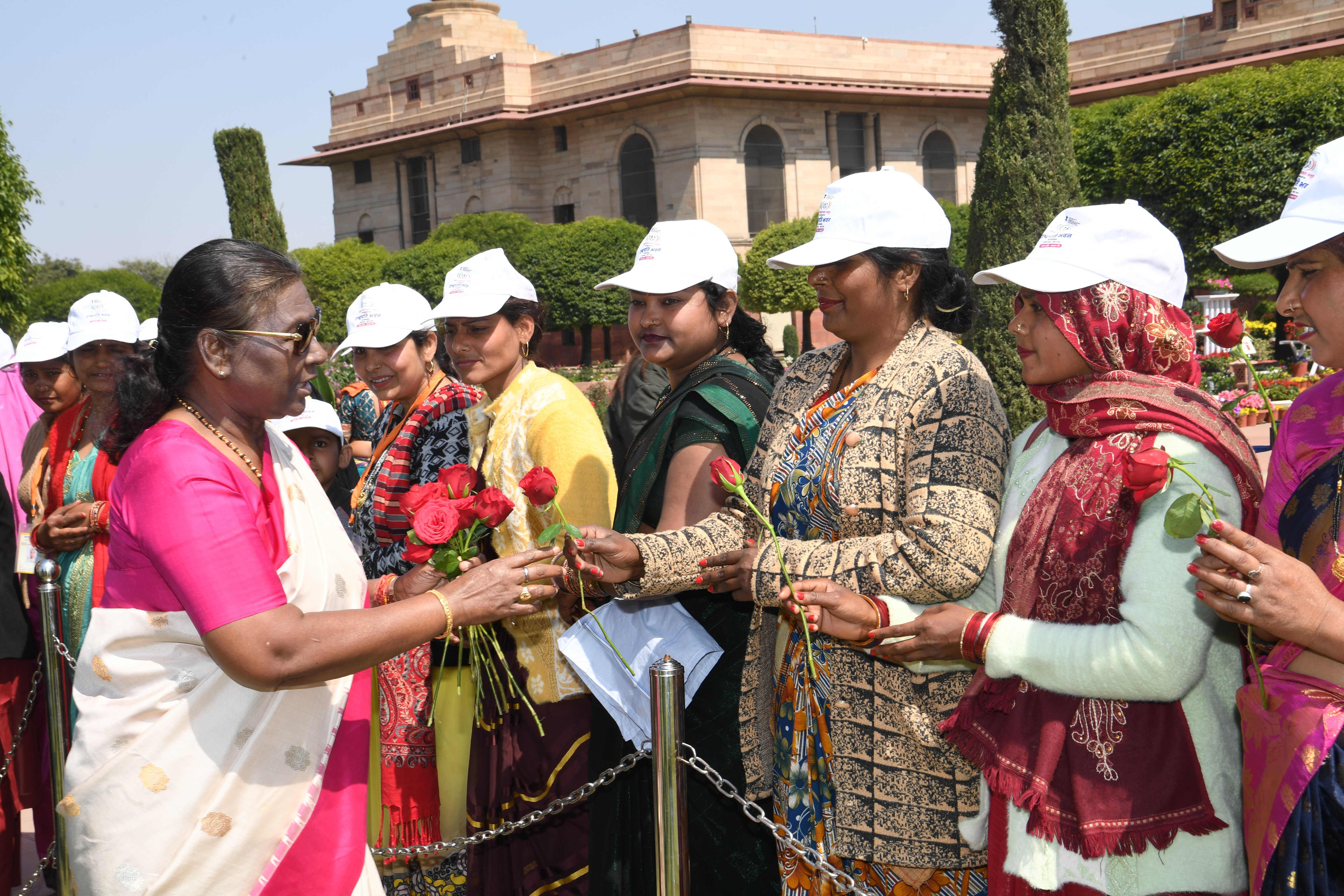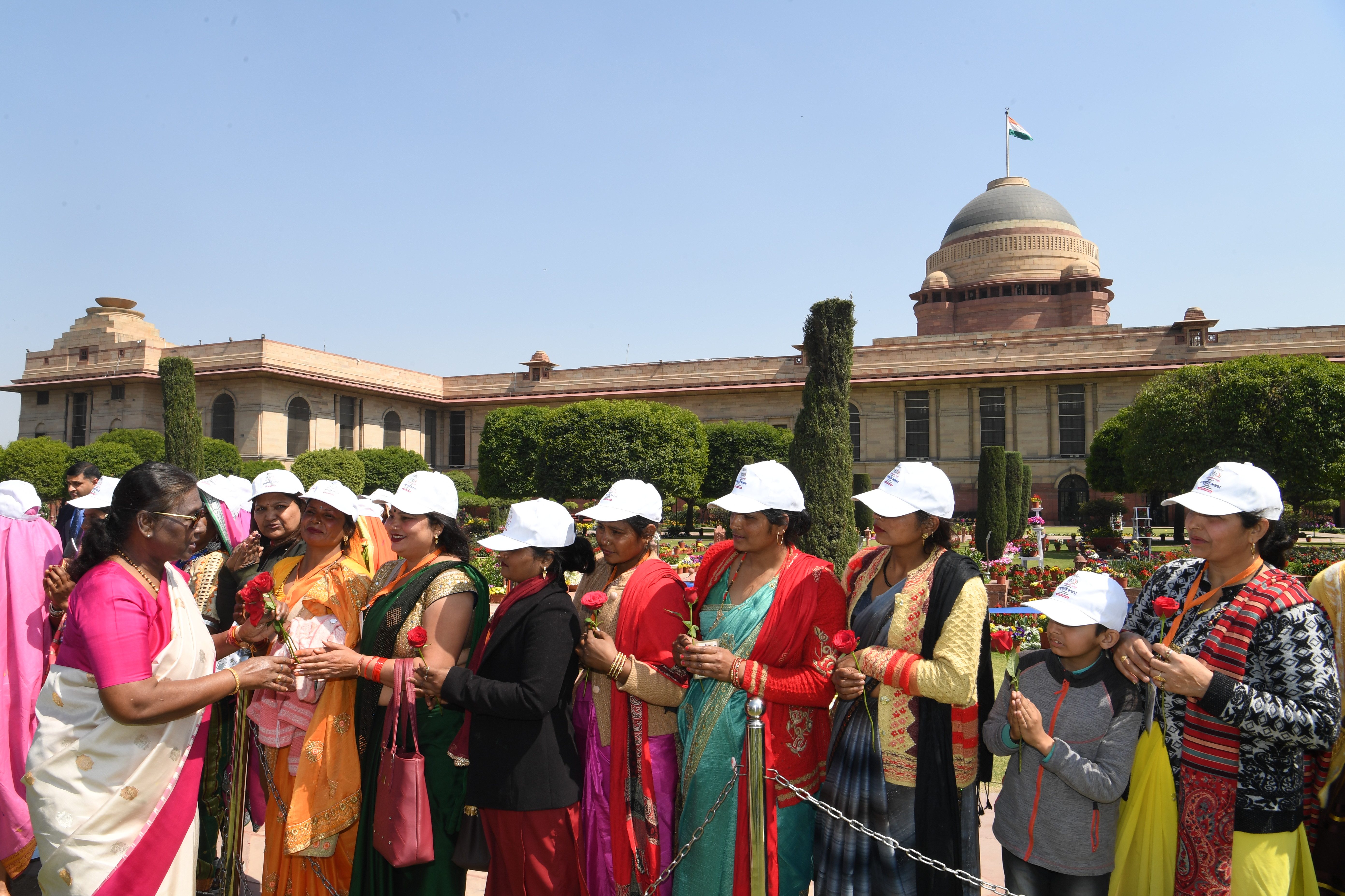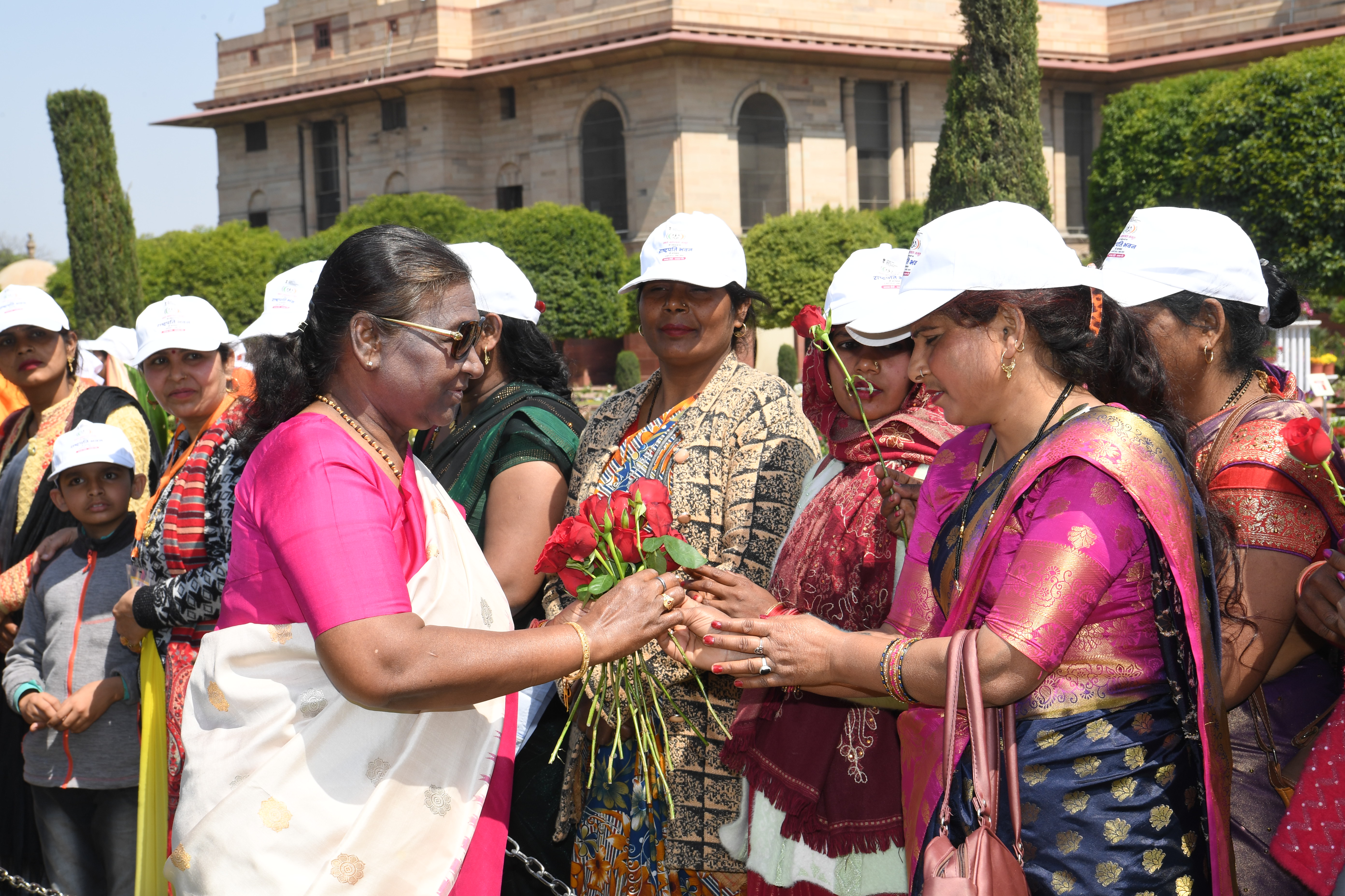 | Caption: | The President of India, Smt Droupadi Murmu met women visiting Amrit Udyan on the day reserved for the special category of Women Tribal Women SHGs-I 08-03-2024 |